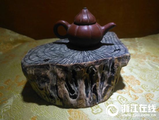 树头砚,砚如其名,形似树头。与普通端砚所不同的是,阿牛创作的树头砚既可以做端砚,以供砚墨之用;还可以做工艺摆件,仅作观赏之用;对于茶艺爱好者而言,树头砚又不失为一件好看的茶台茶器。