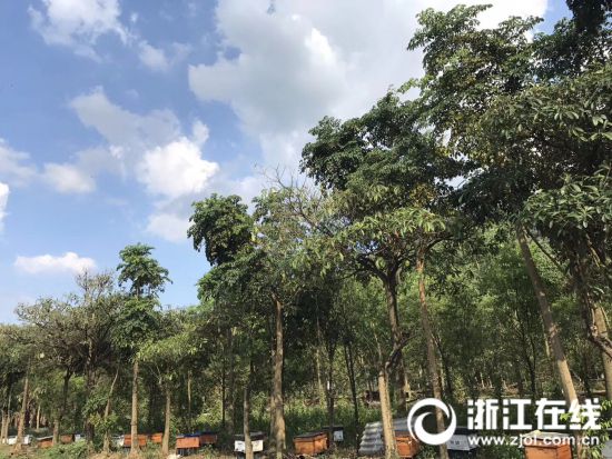2014年,程柱权在经常采石的山脚下做了自己的养蜂场之后,除了山上采石、工作室里雕刻之余的时间,他大部分的时间都在这里与一百群蜂度过。
