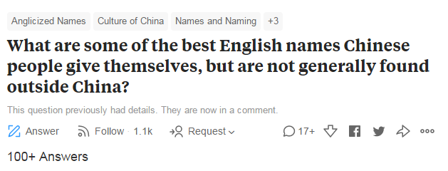 “你们见过哪些中国人自己取的销魂英文名?不在中国基本看不到的那种!”