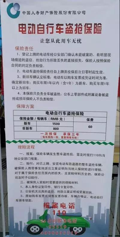 此次电动车上牌是由登封市政府出资免费上牌,但电动车保险是根据个人意愿购买,保险费60元(一次投保,承保三年)自愿缴纳,如果车被盗报案后60天未破案找回,根据保额协定,新车丢失可以赔偿1500元,旧车丢失可以赔偿800元。