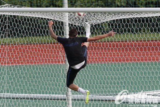 克罗地亚队备战世界杯决赛,曼朱基奇秀飞踢高度惊人。