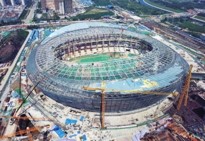 目前奥体中心三个场馆主体结构均已完成,正进行外立面施工,2018年底便将投入使用。