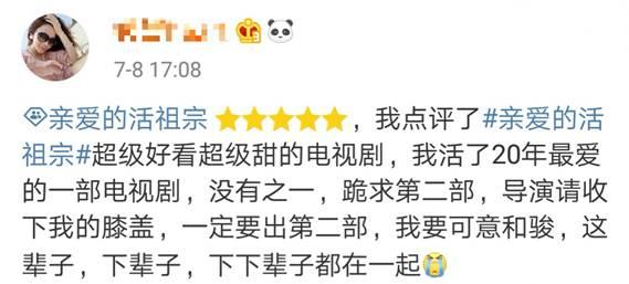 不过就算结局再虐人,《亲爱的活祖宗》这部剧从本质上还是一部轻喜爱情剧,甜蜜、搞笑的元素贯穿整个剧情,再加上逻辑缜密的古、今戏份的转换,绝对可以算是对得起豆瓣7.9高分评价的一部神剧了。