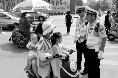 一车载三四人 当场罚款 20元 郑州警方近期严查电动自行车违法载人载物行为
