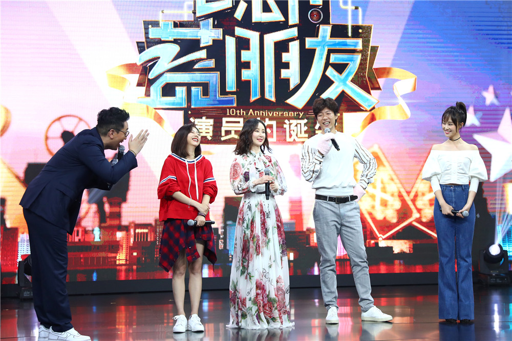 这热闹的现场其实是浙江卫视“中国蓝”十周年《嗨!蓝朋友》特别企划节目。为了回馈一直支持“中国蓝”的蓝莓们,十周年特别企划节目网罗了《奔跑吧》《演员的诞生》《王牌对王牌》和《中国好声音》四个经典节目,还特别用《我爱记歌词》作为节目线索进行贯穿。前天录制的这一期,恰好是《嗨!蓝朋友》中《演员的诞生》特辑。