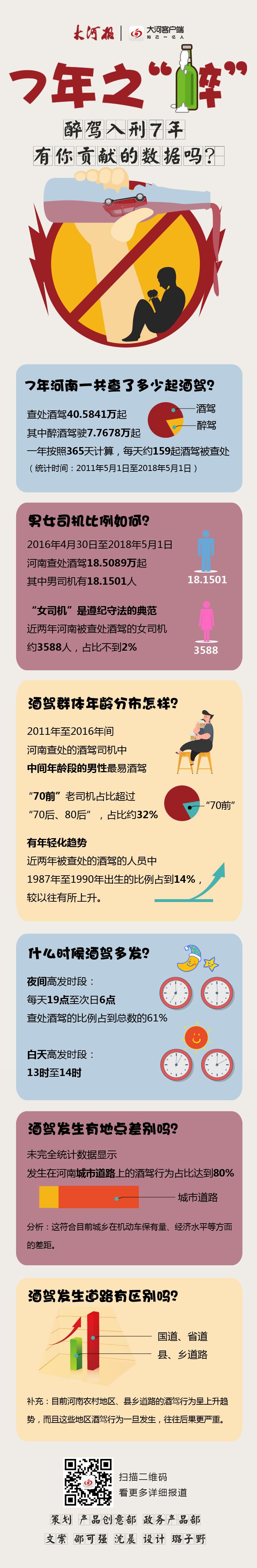近年来,河南交警部门对酒驾查处力度可谓“强硬”,采取异地查处、分时段查处、节假日查处等措施。近日,大河报·大河客户端记者从省公安厅交警总队独家获悉一份大数据,看看醉驾入刑的7年之“样”。