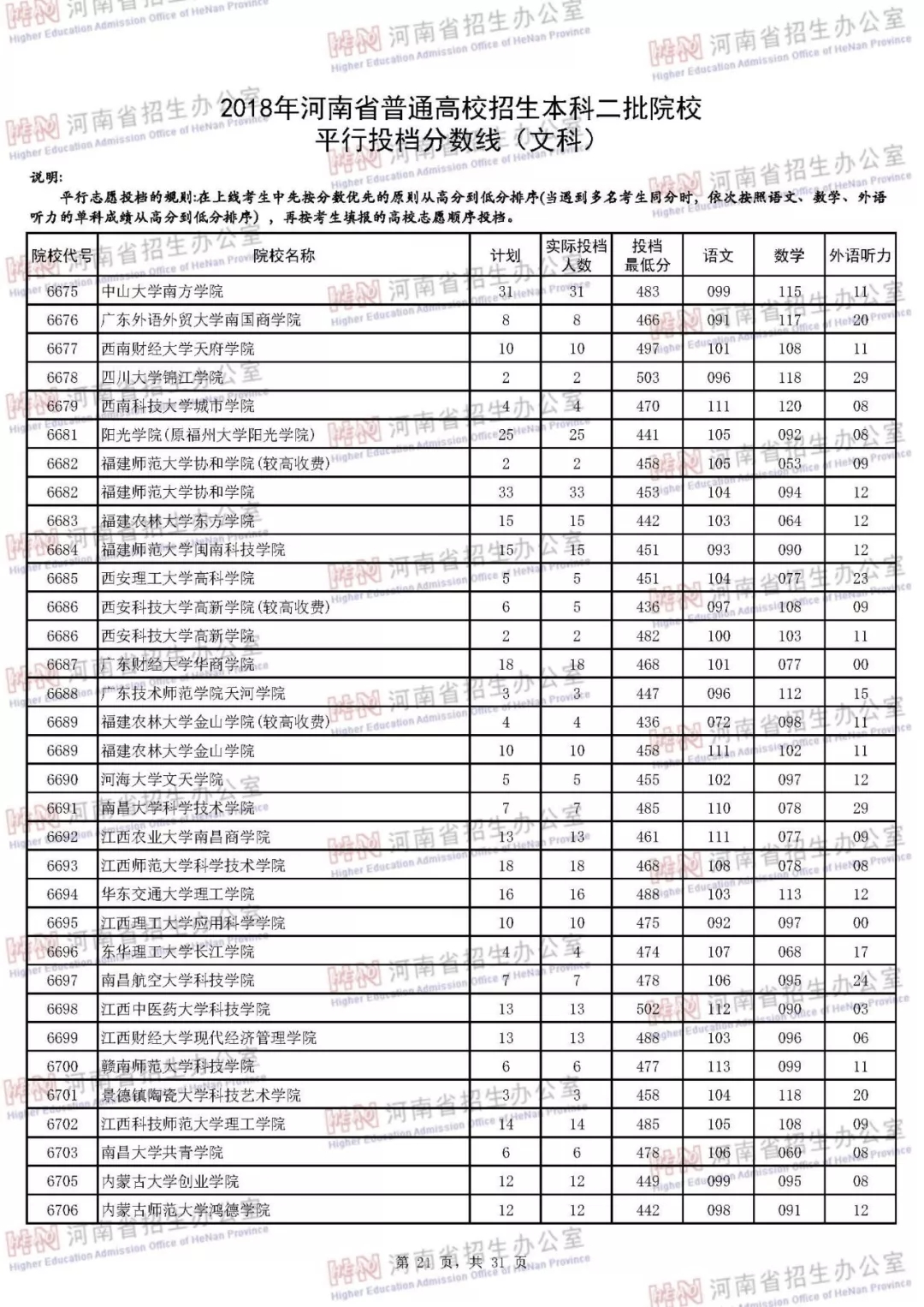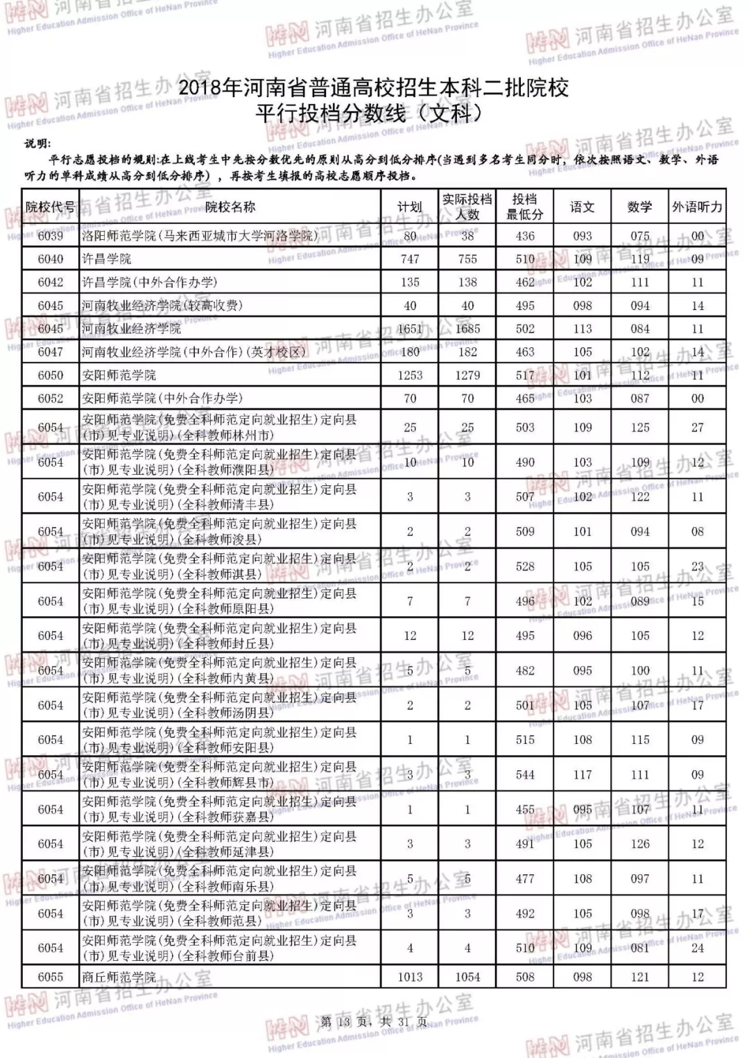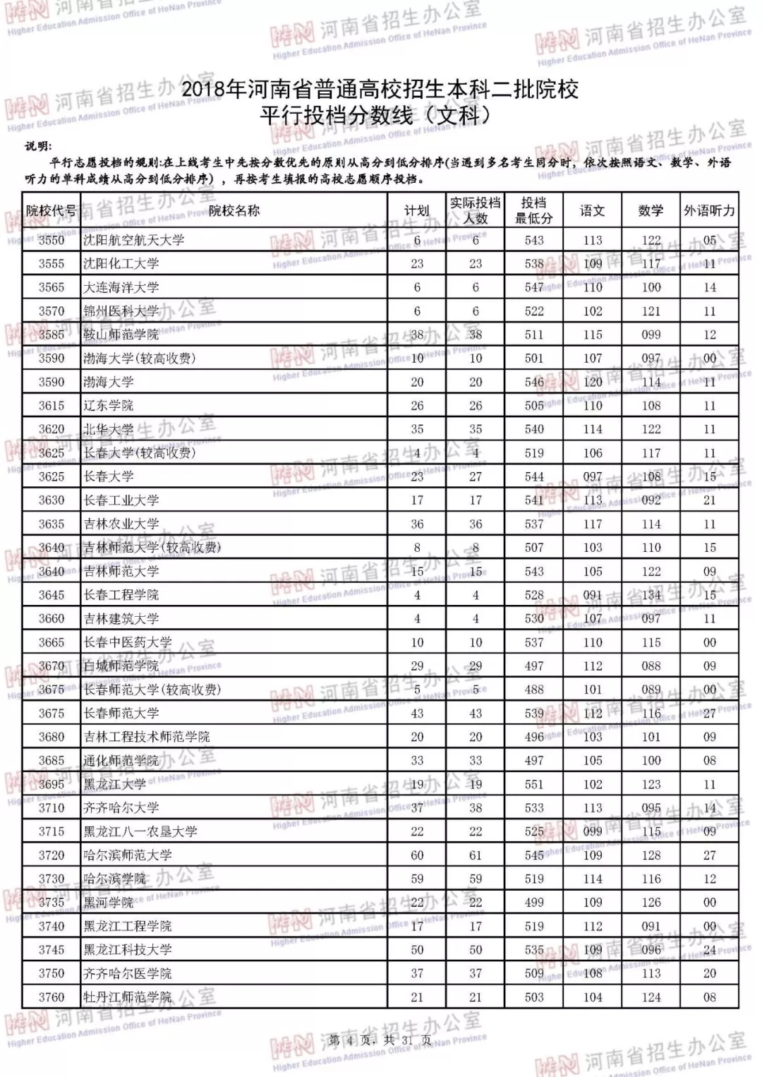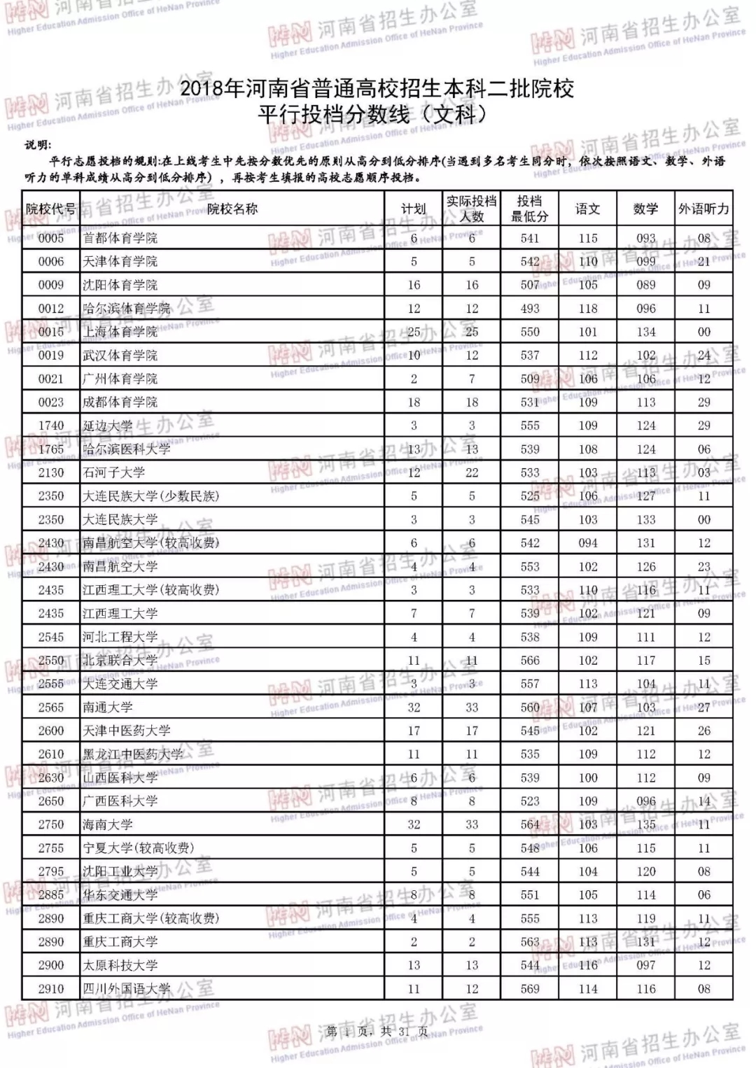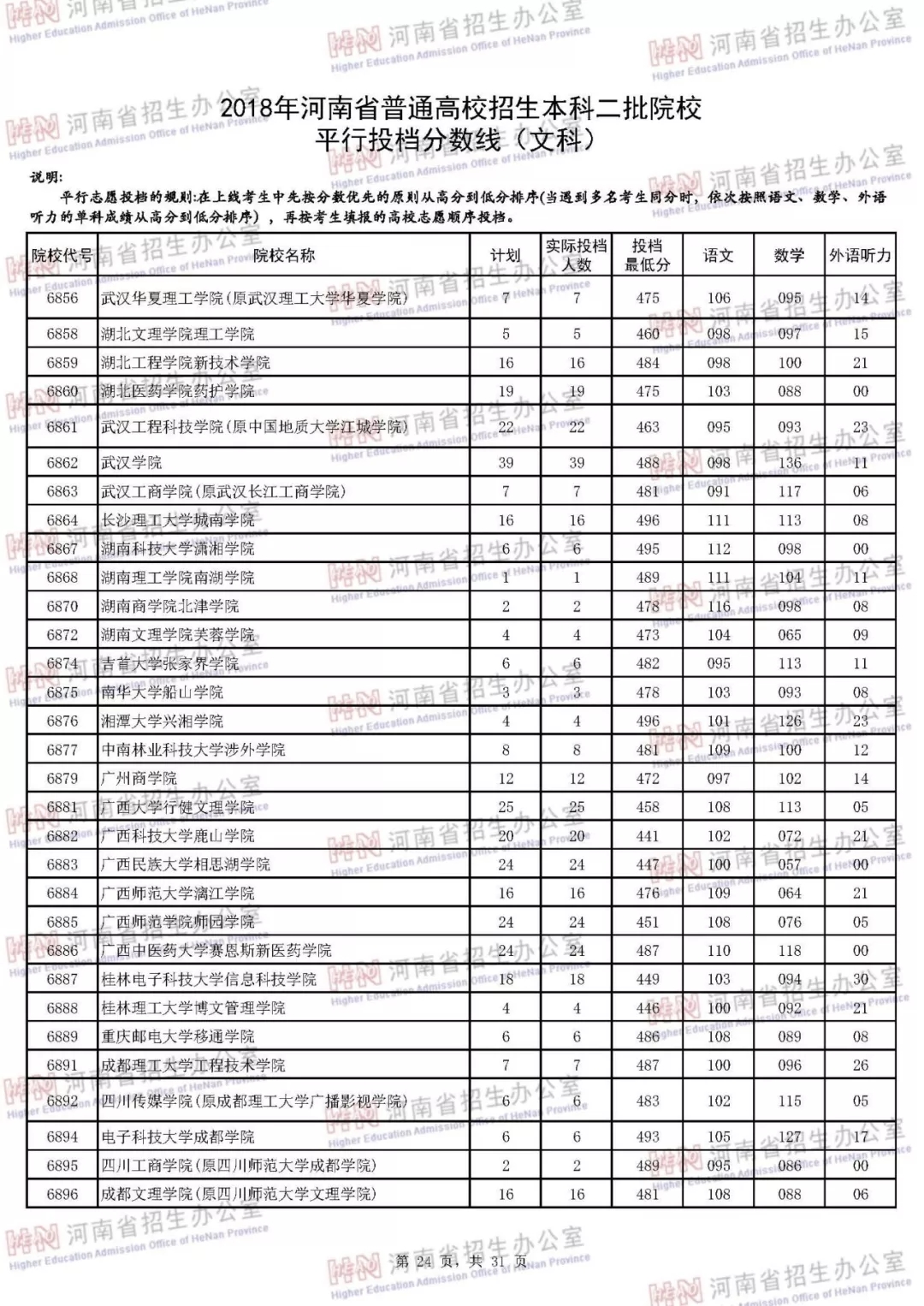 附:2018年河南省普通高校招生本科二批院校平行投档分数线