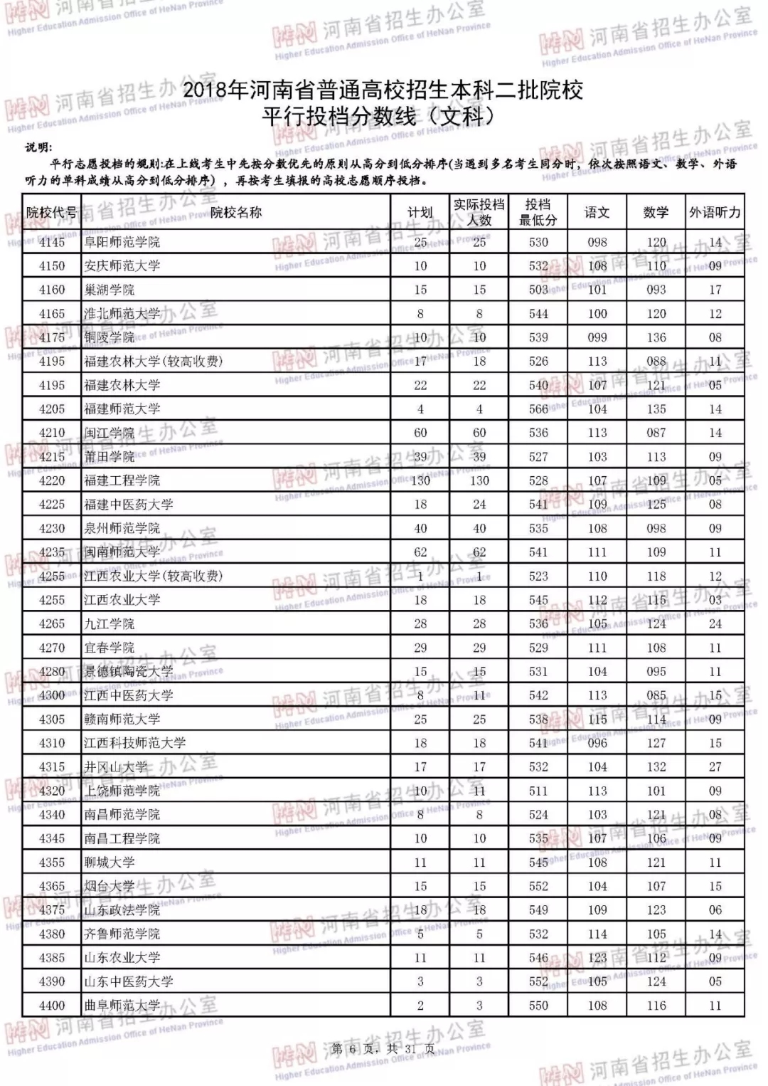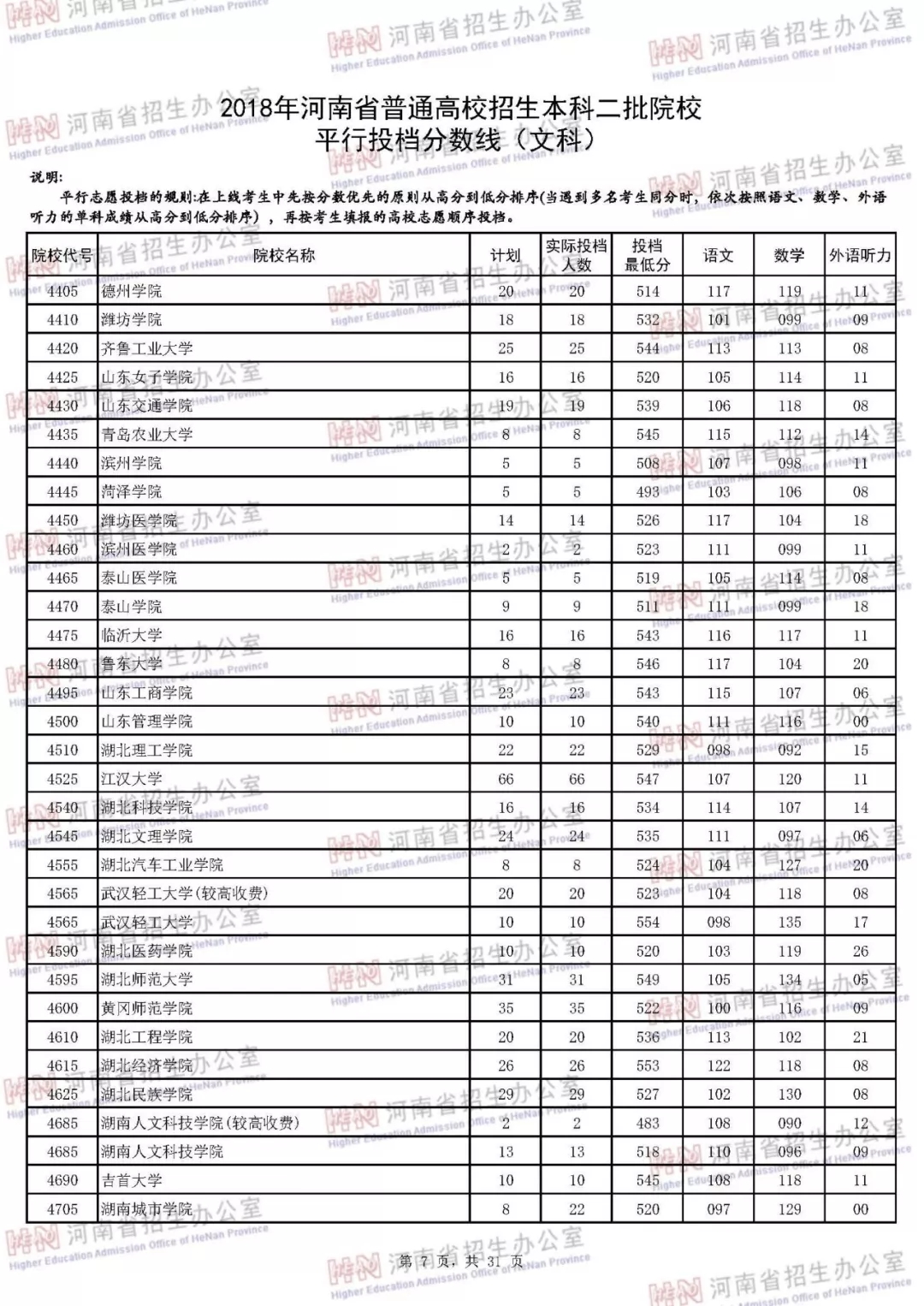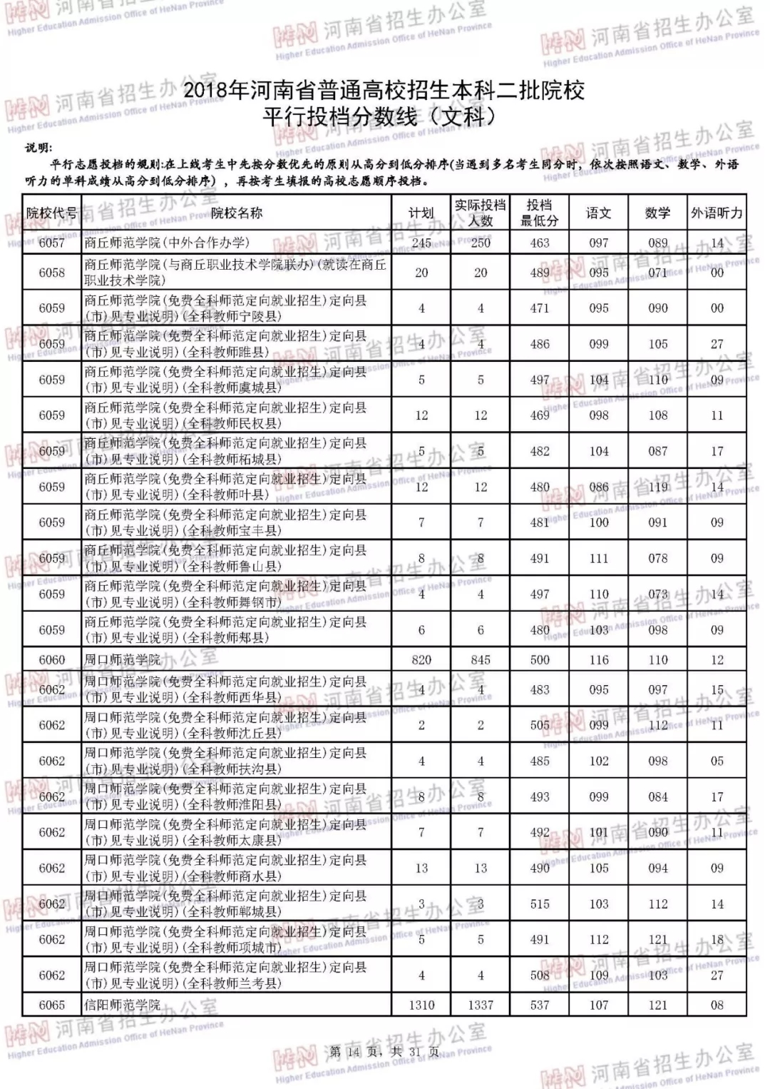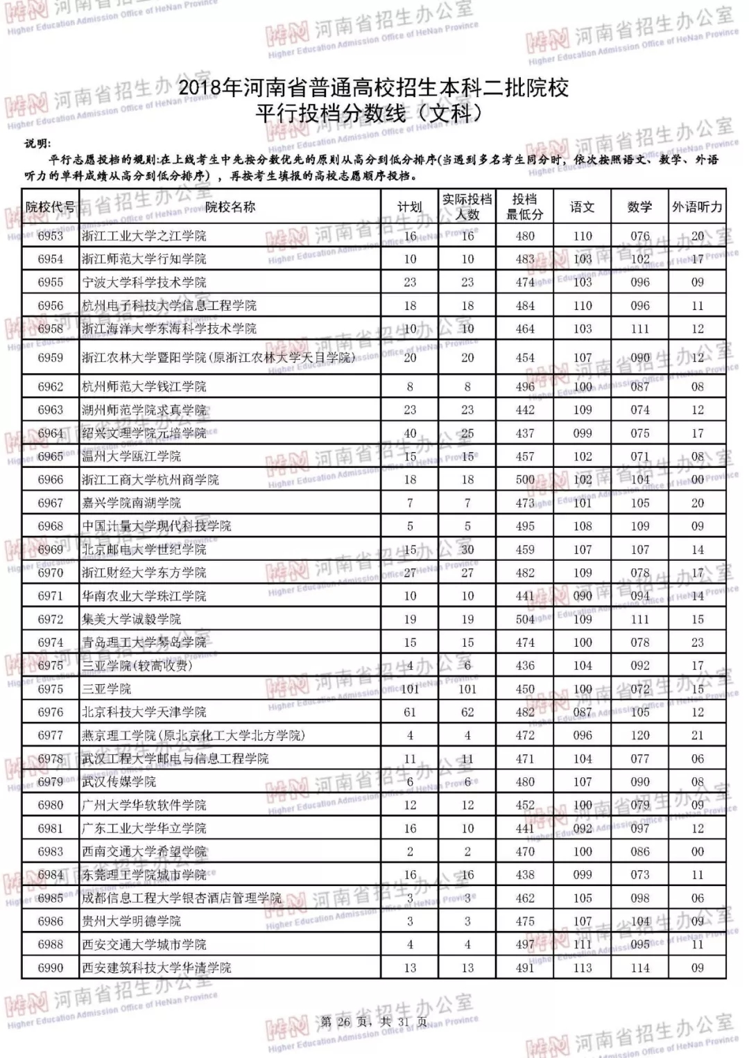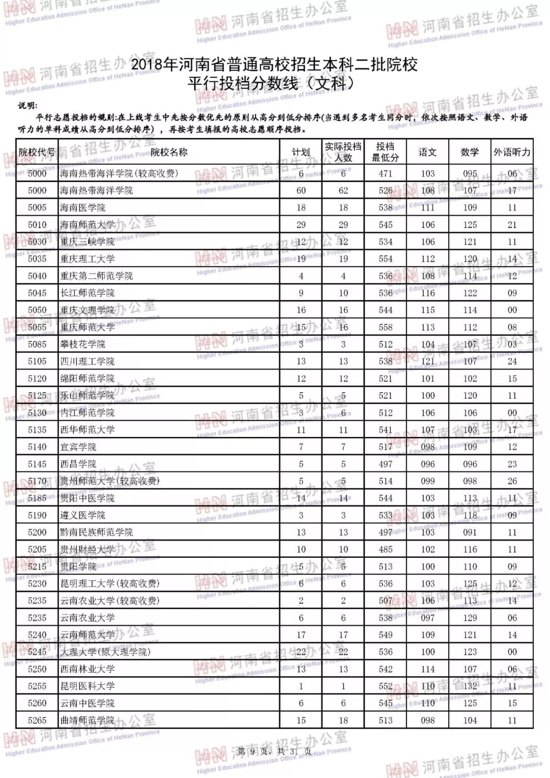 附:2018年河南省普通高校招生本科二批院校平行投档分数线