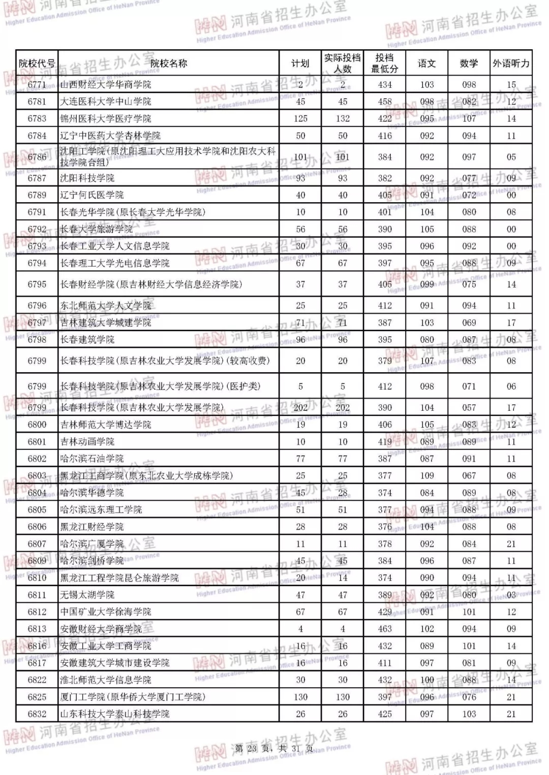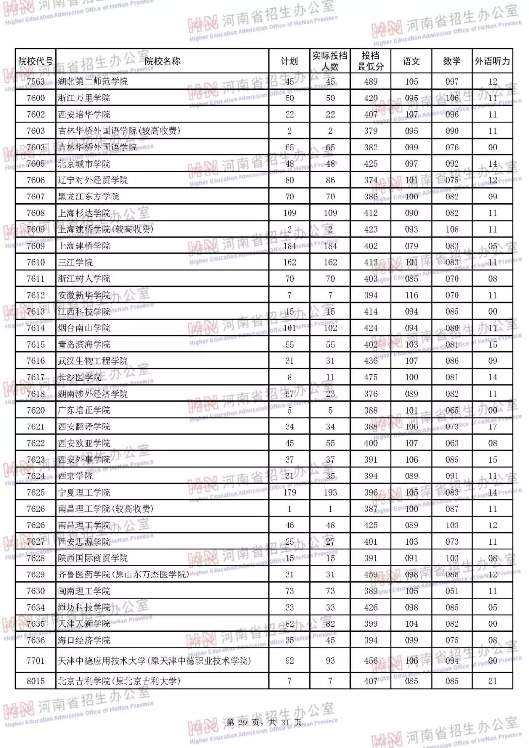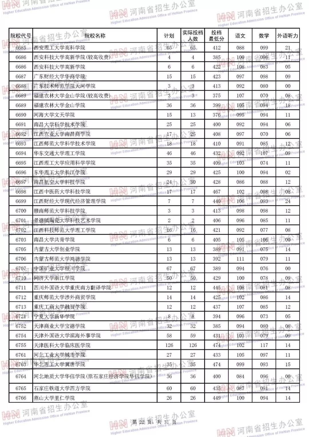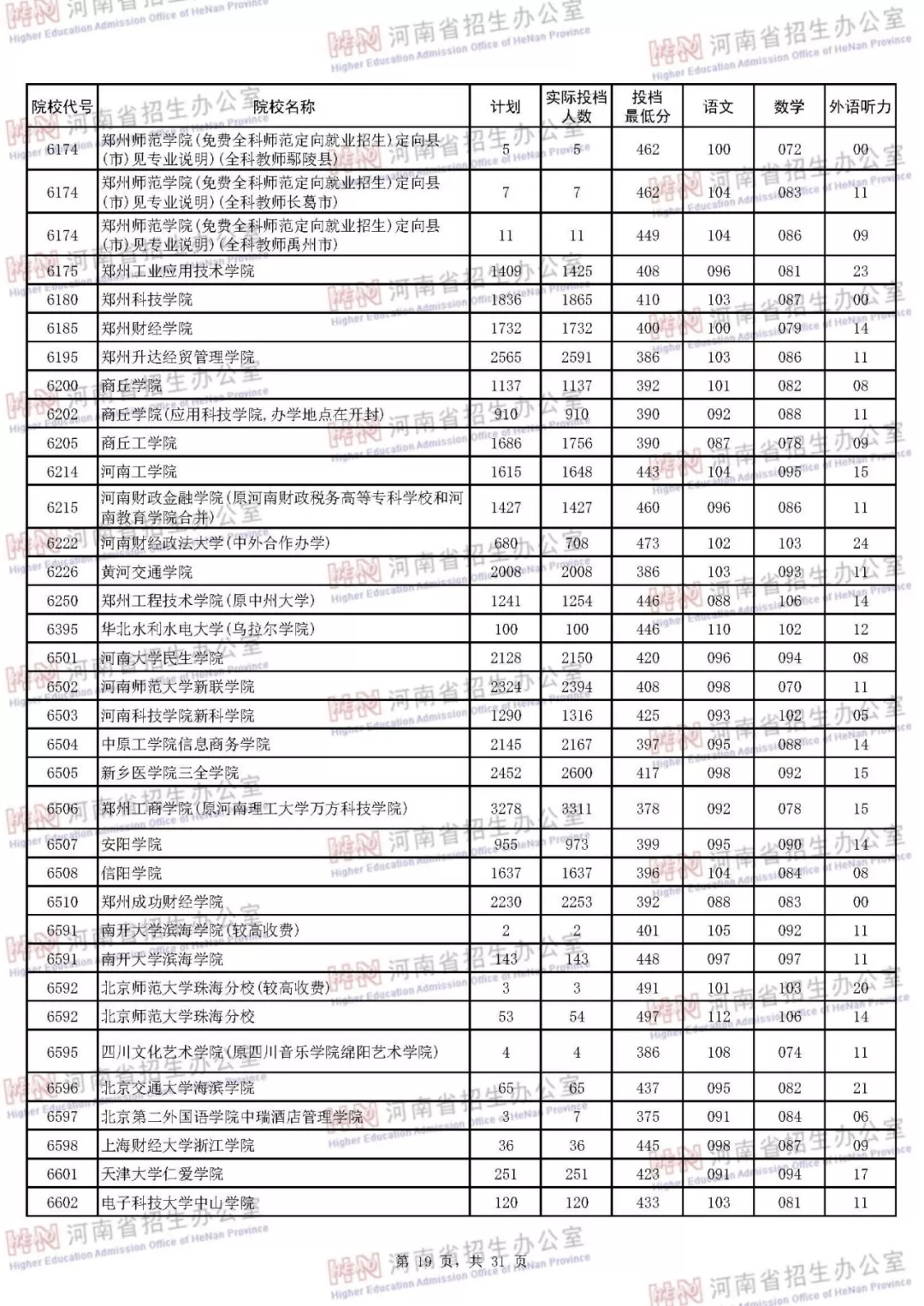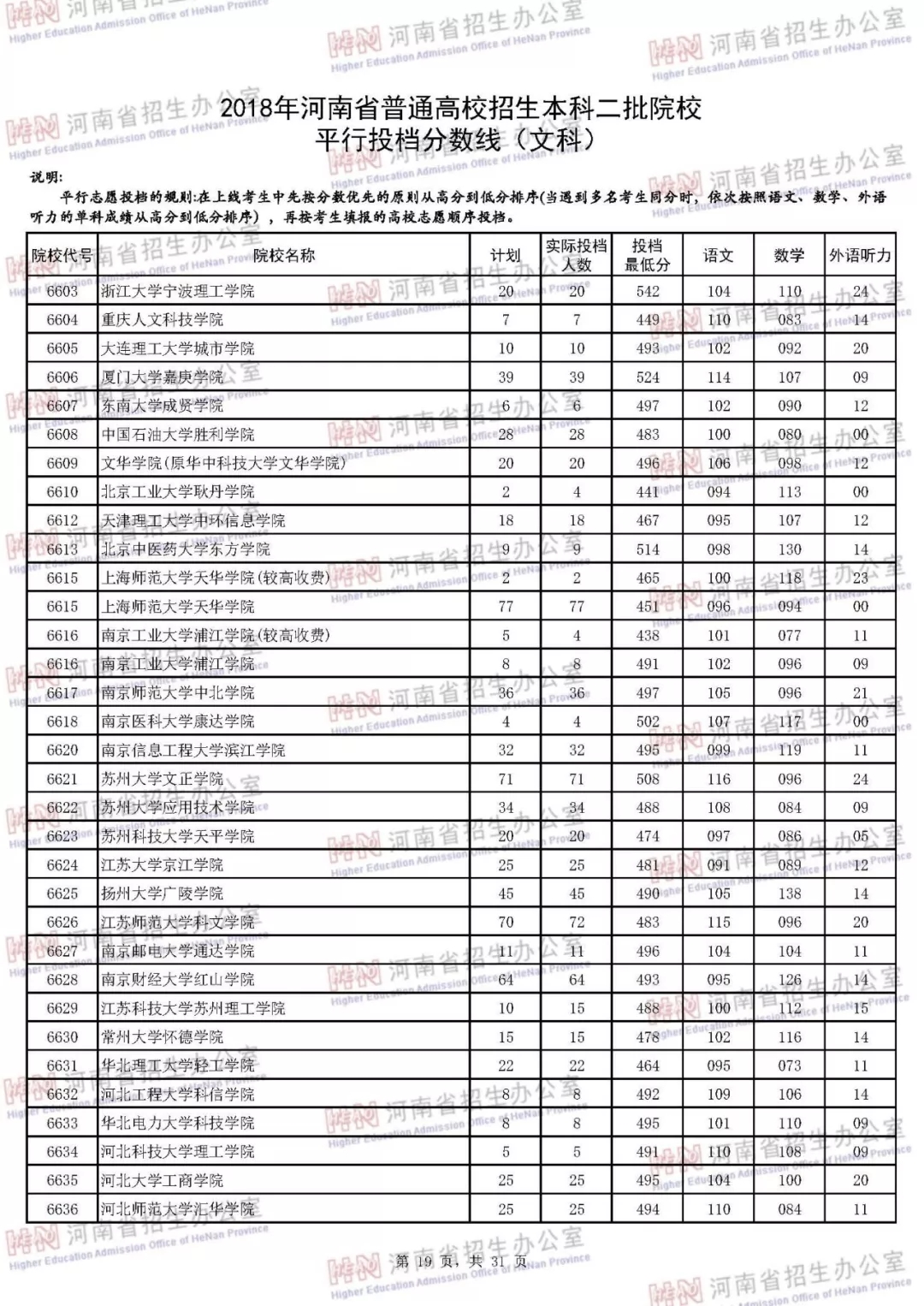 河南本科二批正式投档 7月30日征集志愿(附投档分数线)