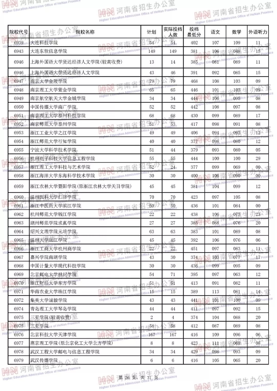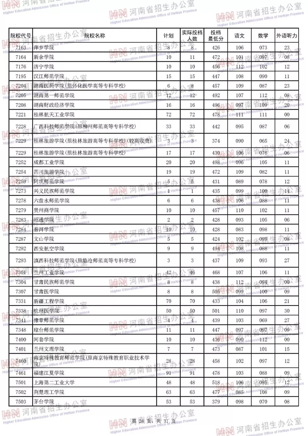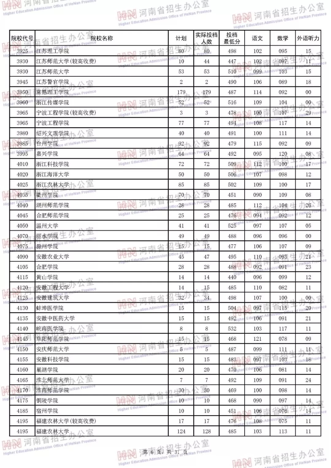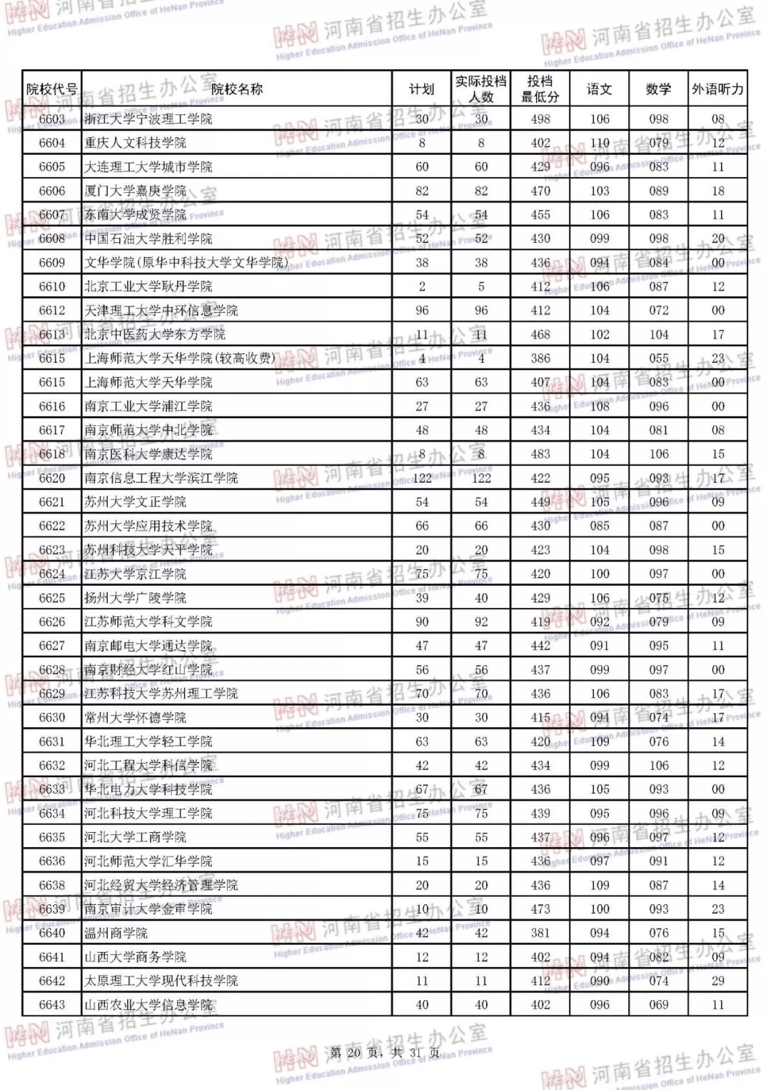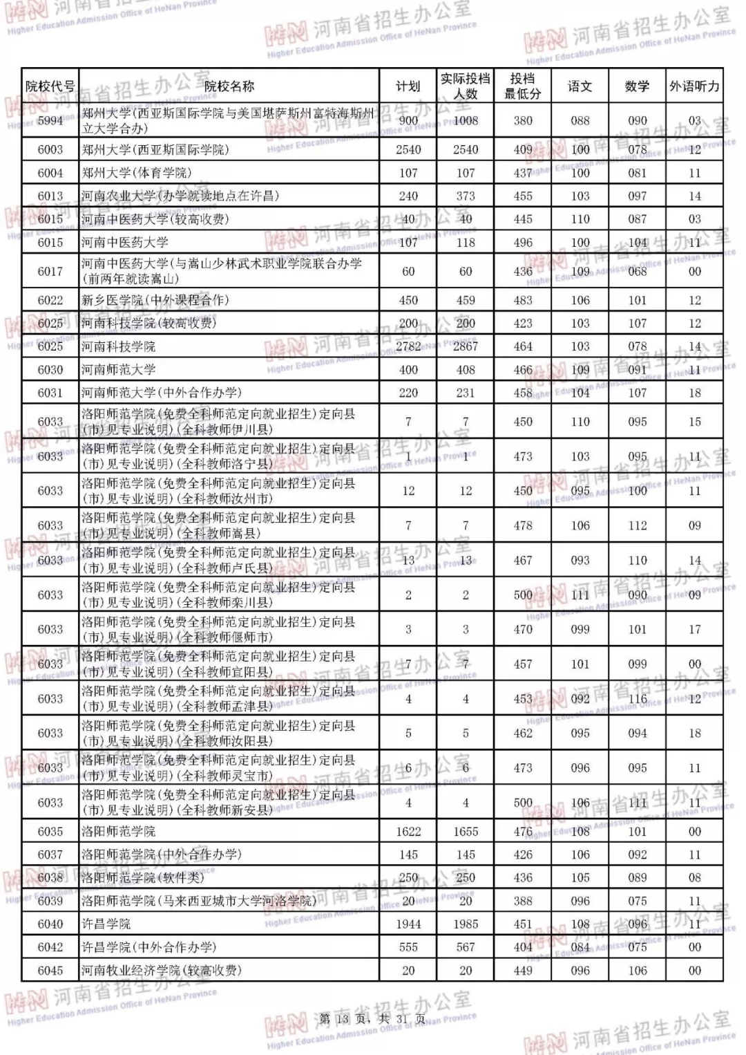 河南本科二批正式投档 7月30日征集志愿(附投档分数线)