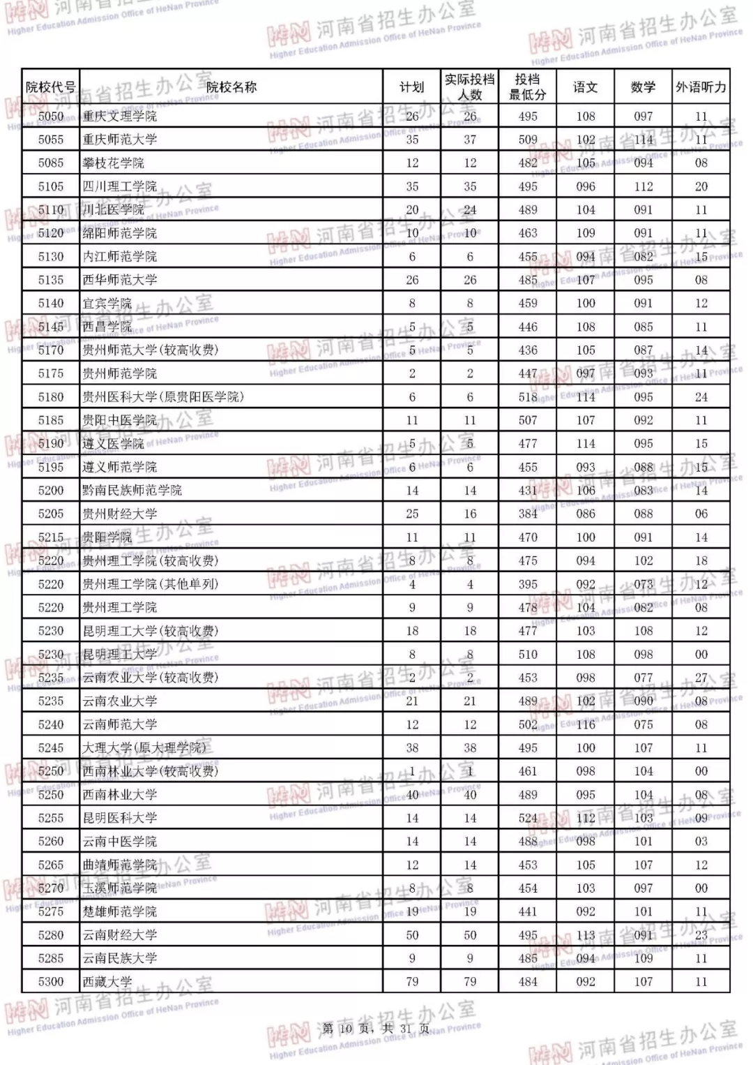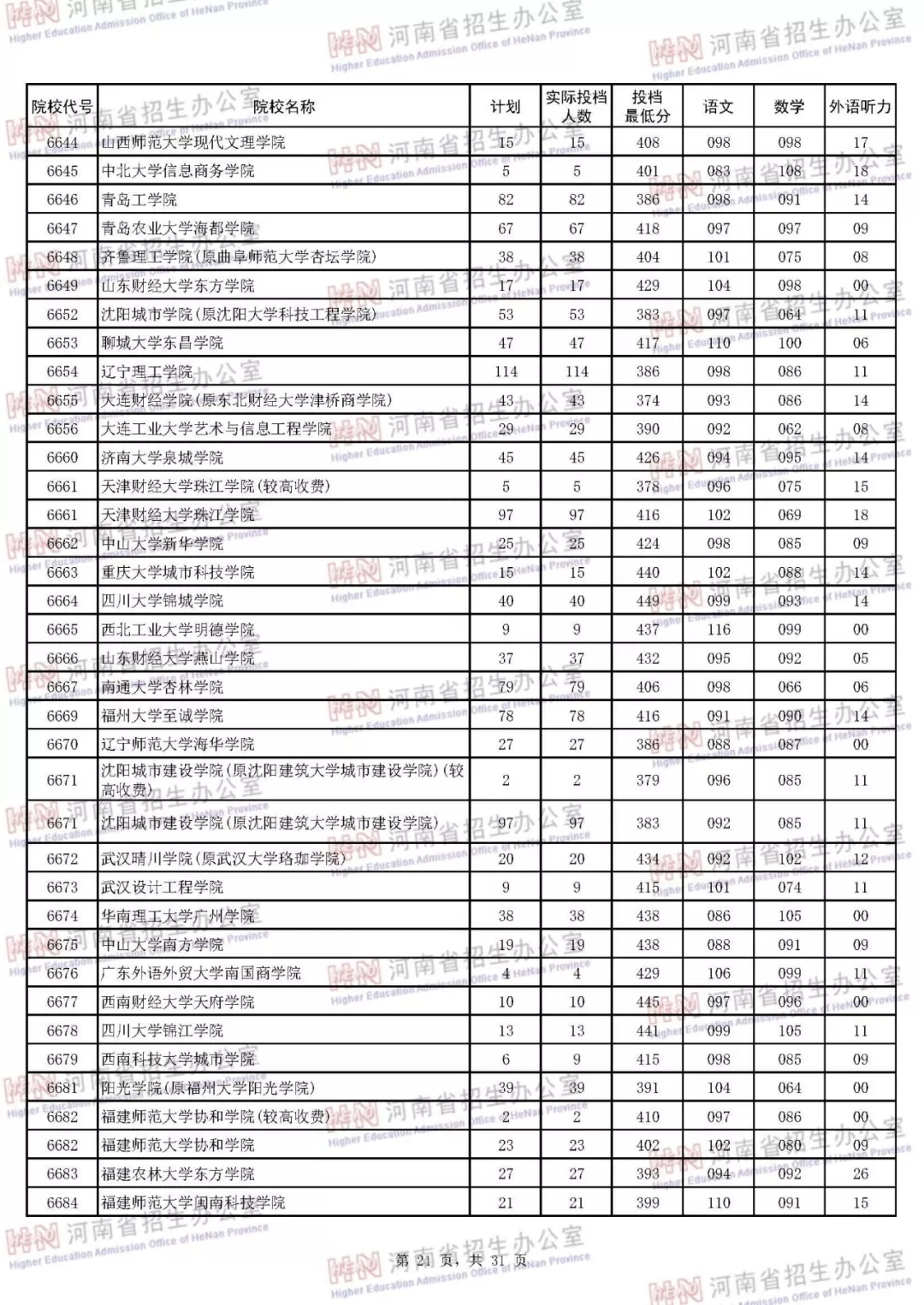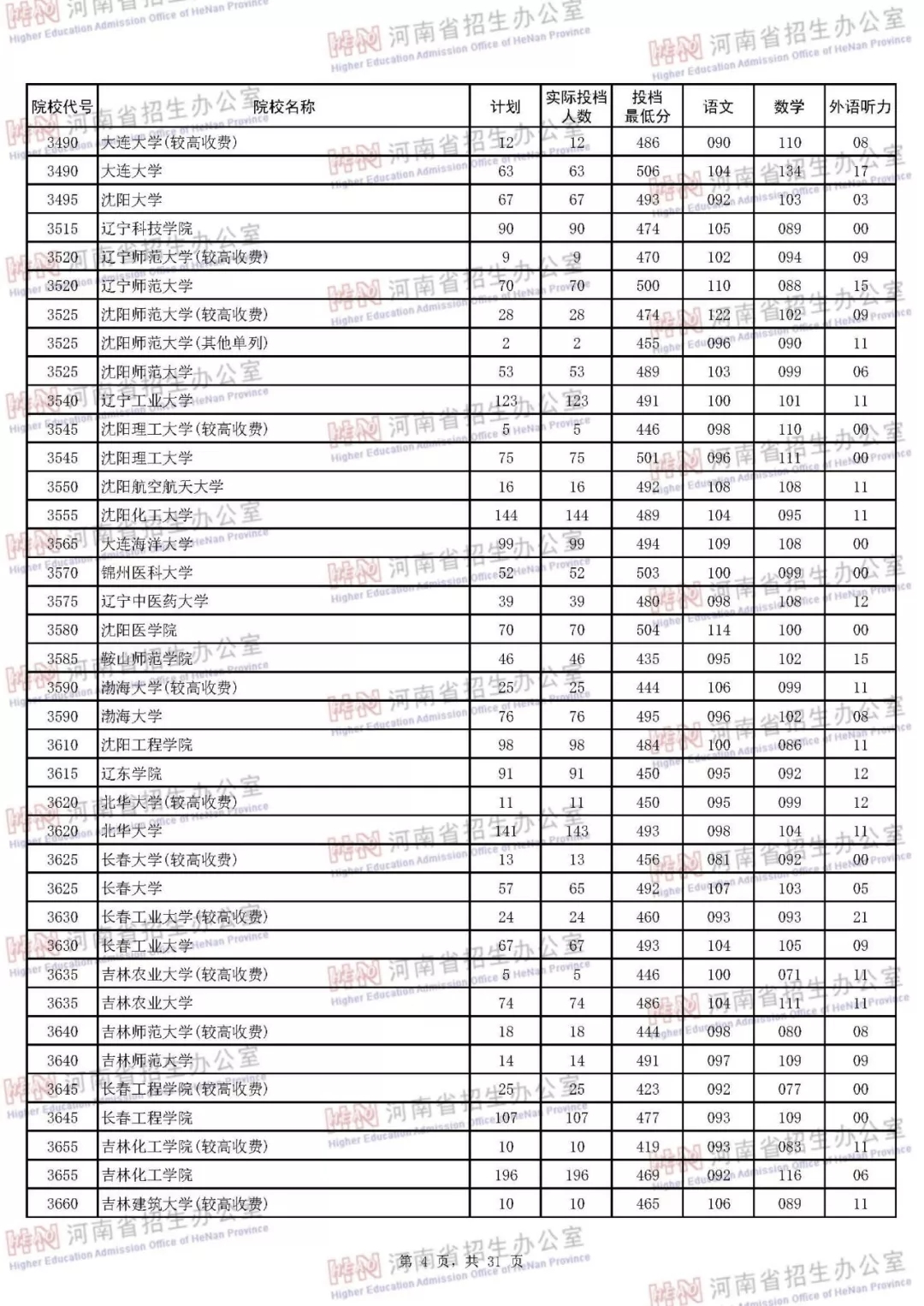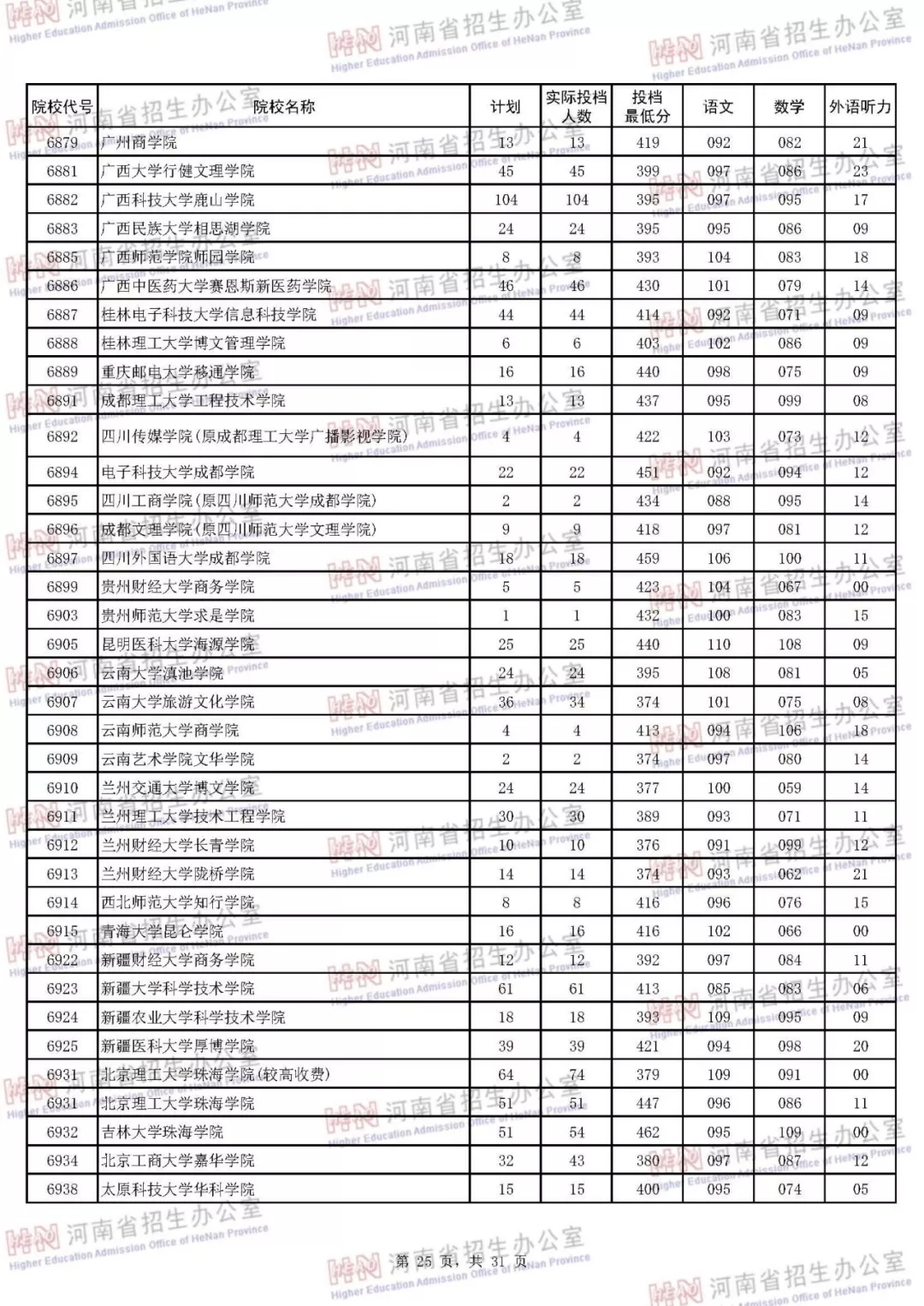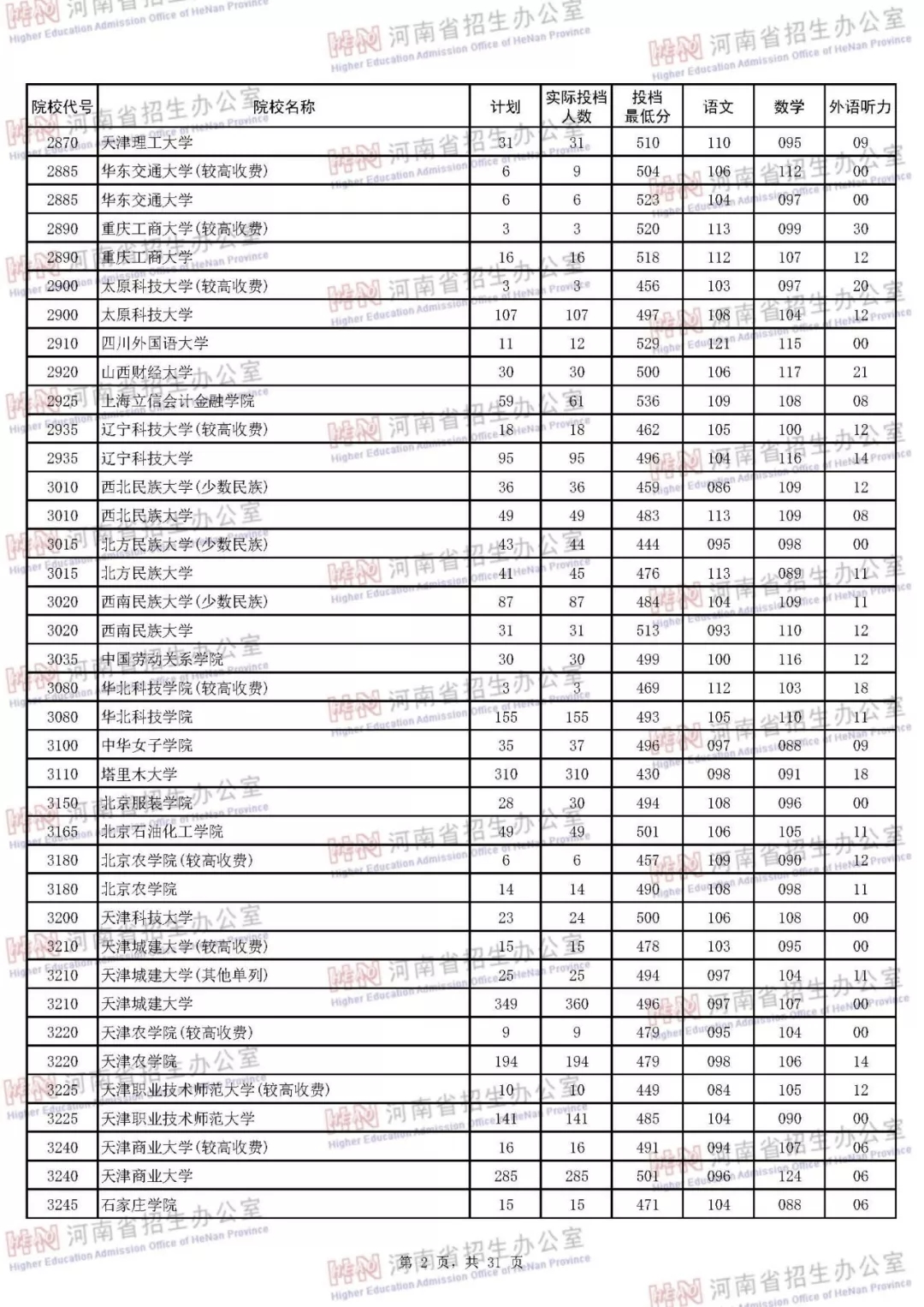 河南本科二批正式投档 7月30日征集志愿(附投档分数线)
