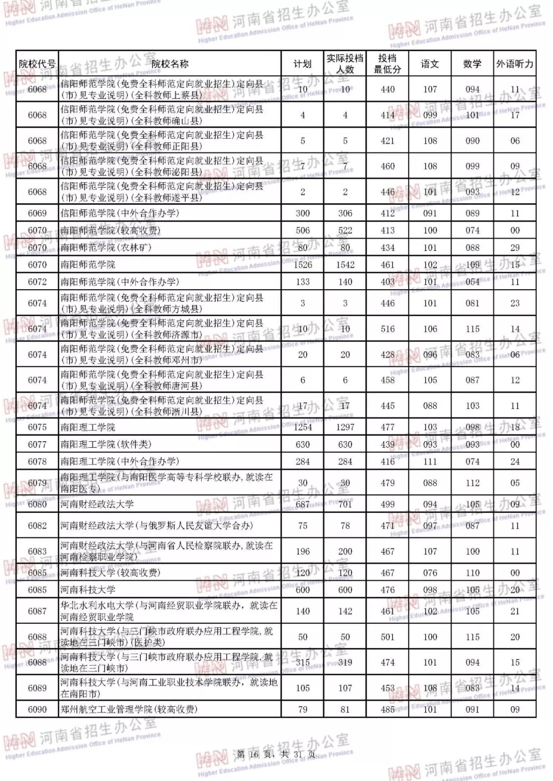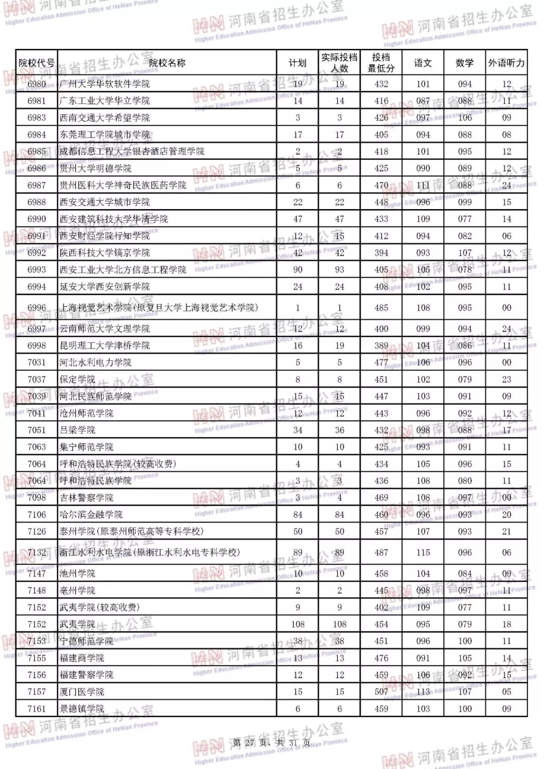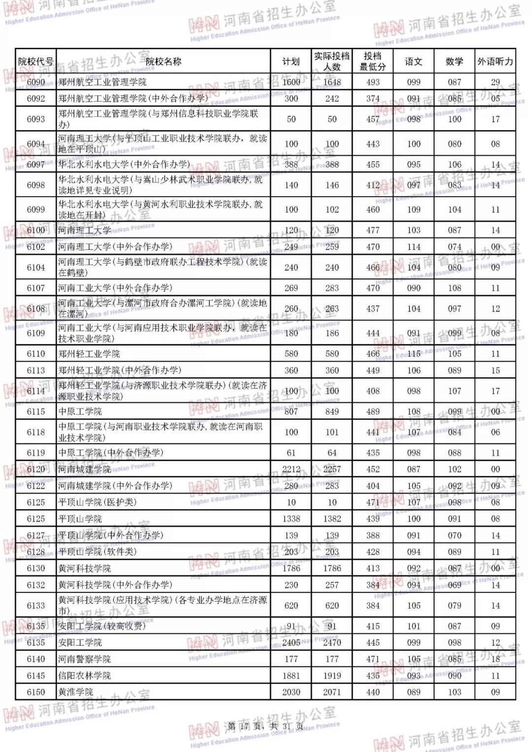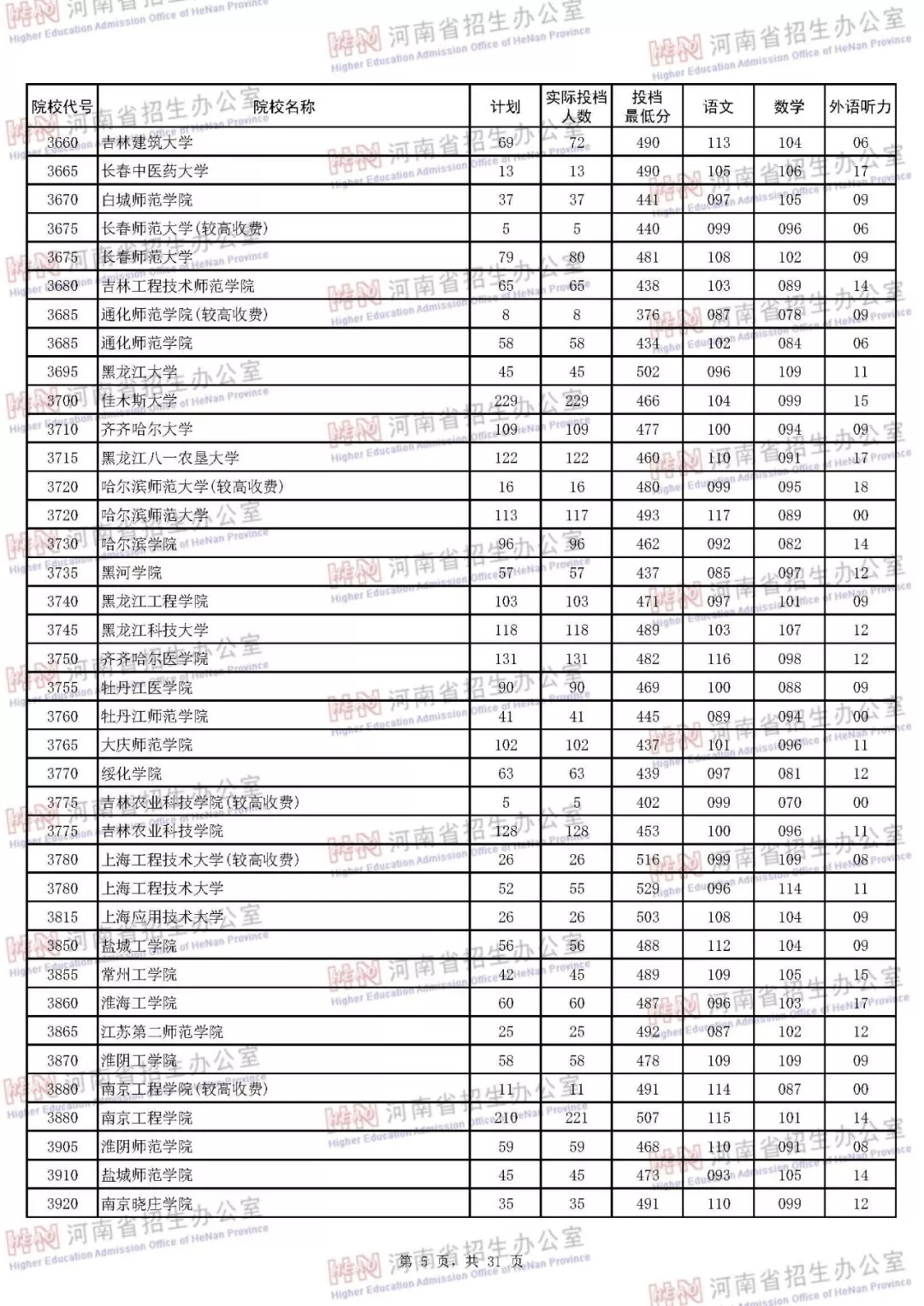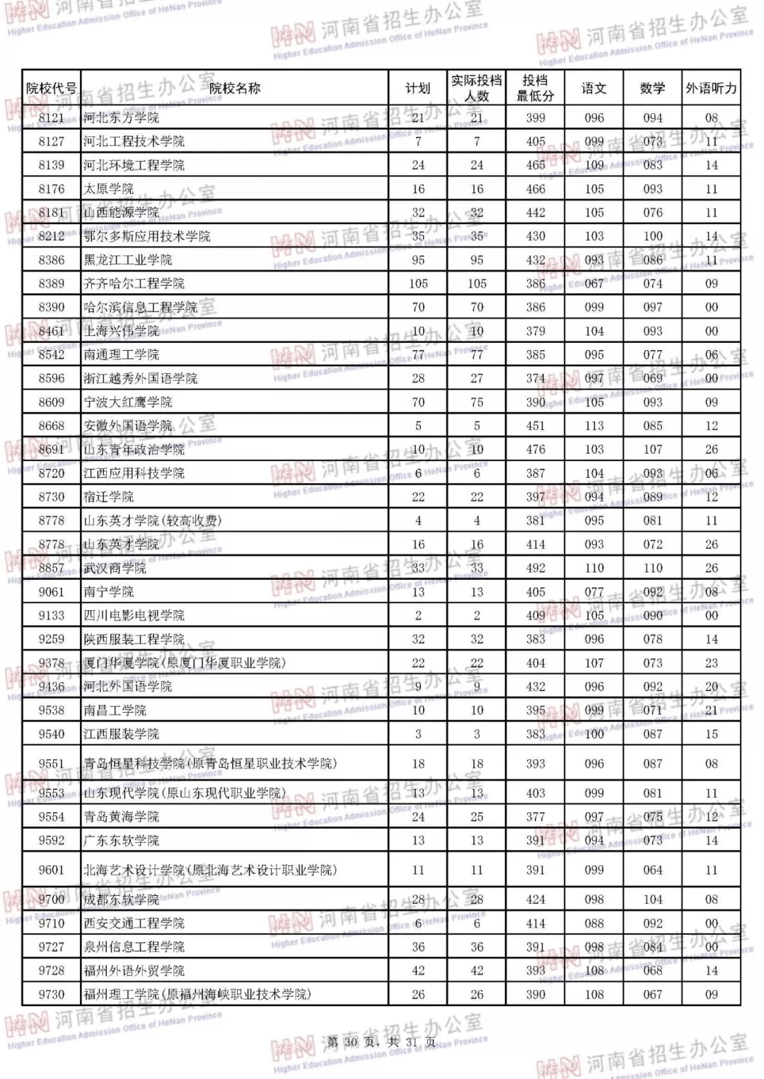 河南本科二批正式投档 7月30日征集志愿(附投档分数线)