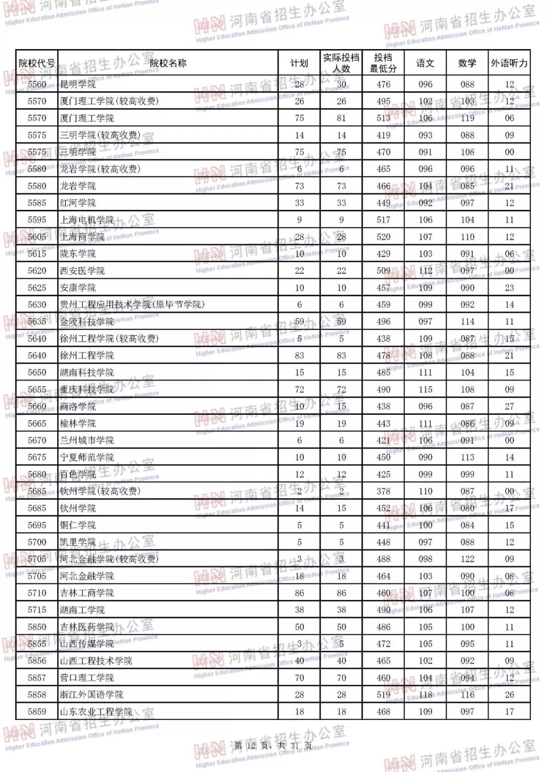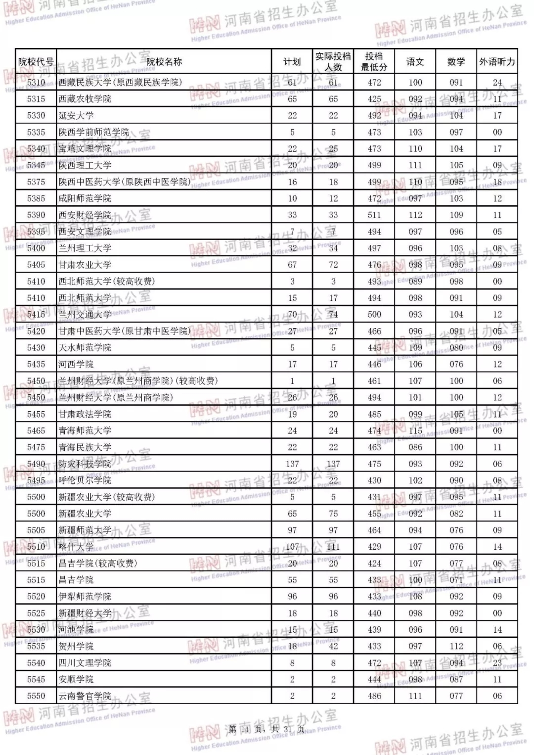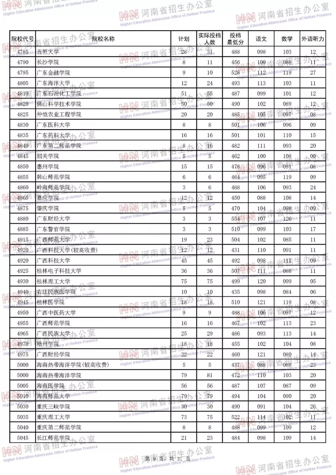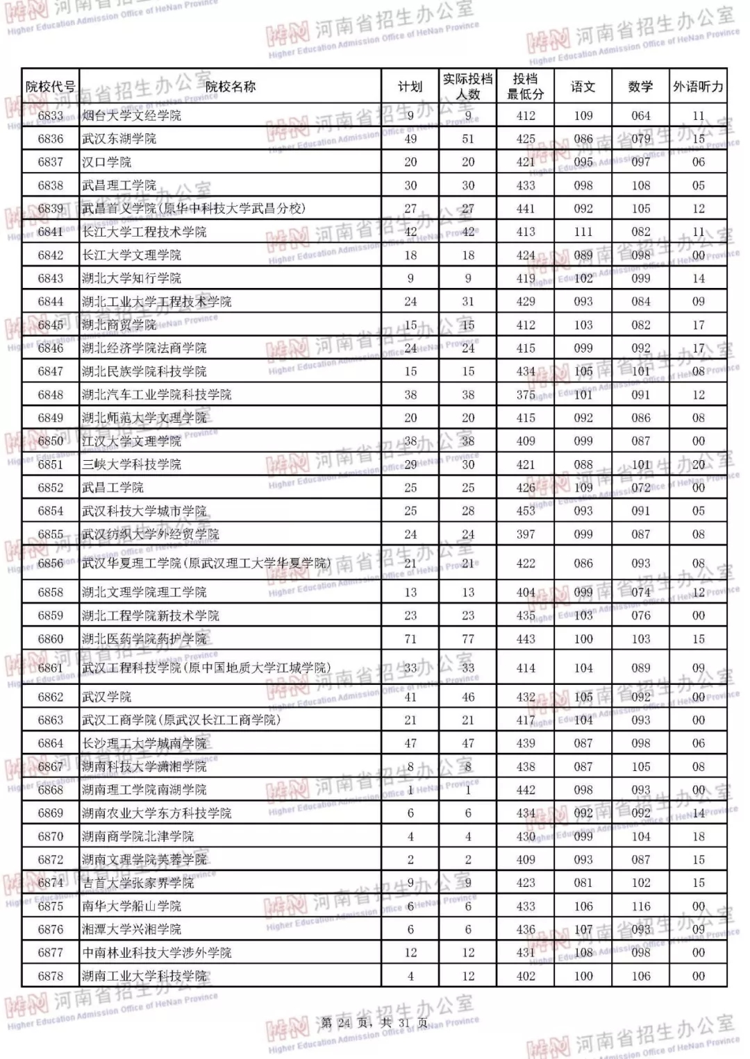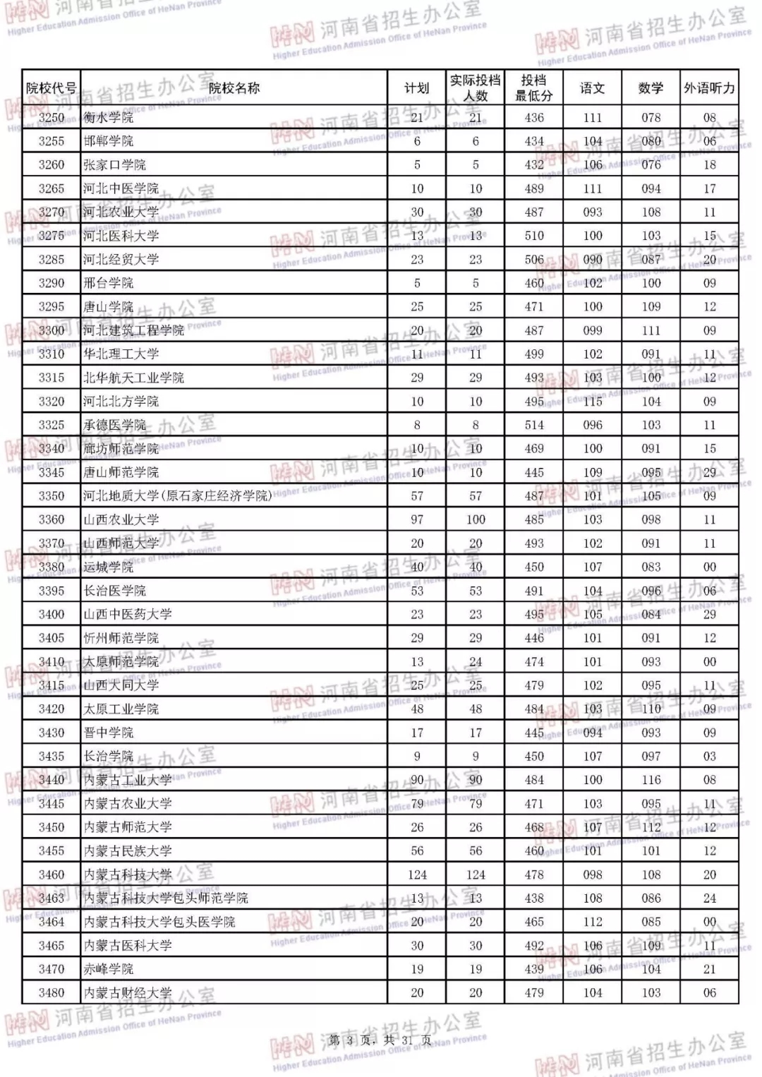 河南本科二批正式投档 7月30日征集志愿(附投档分数线)