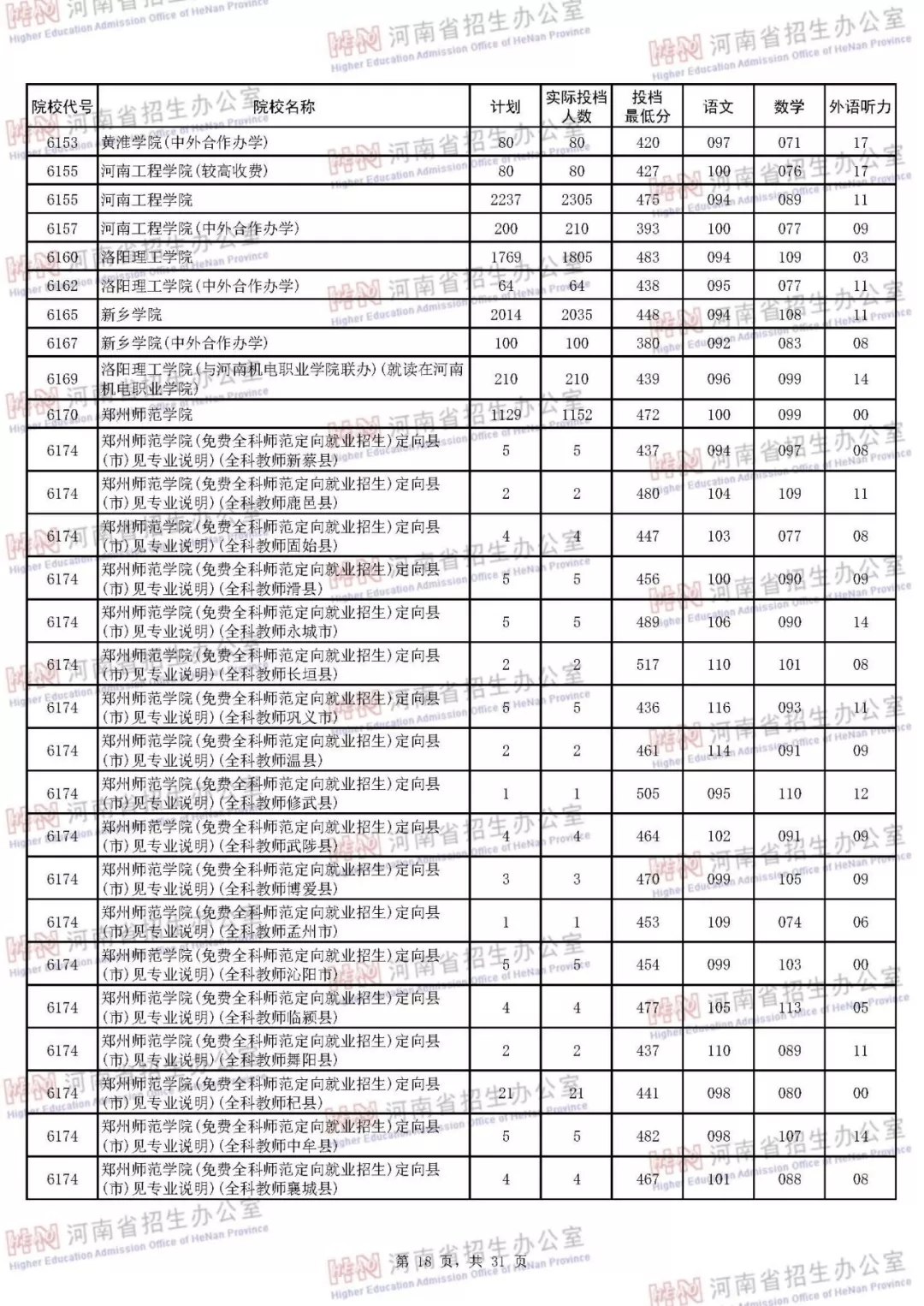 2018年河南省普通高校招生本科