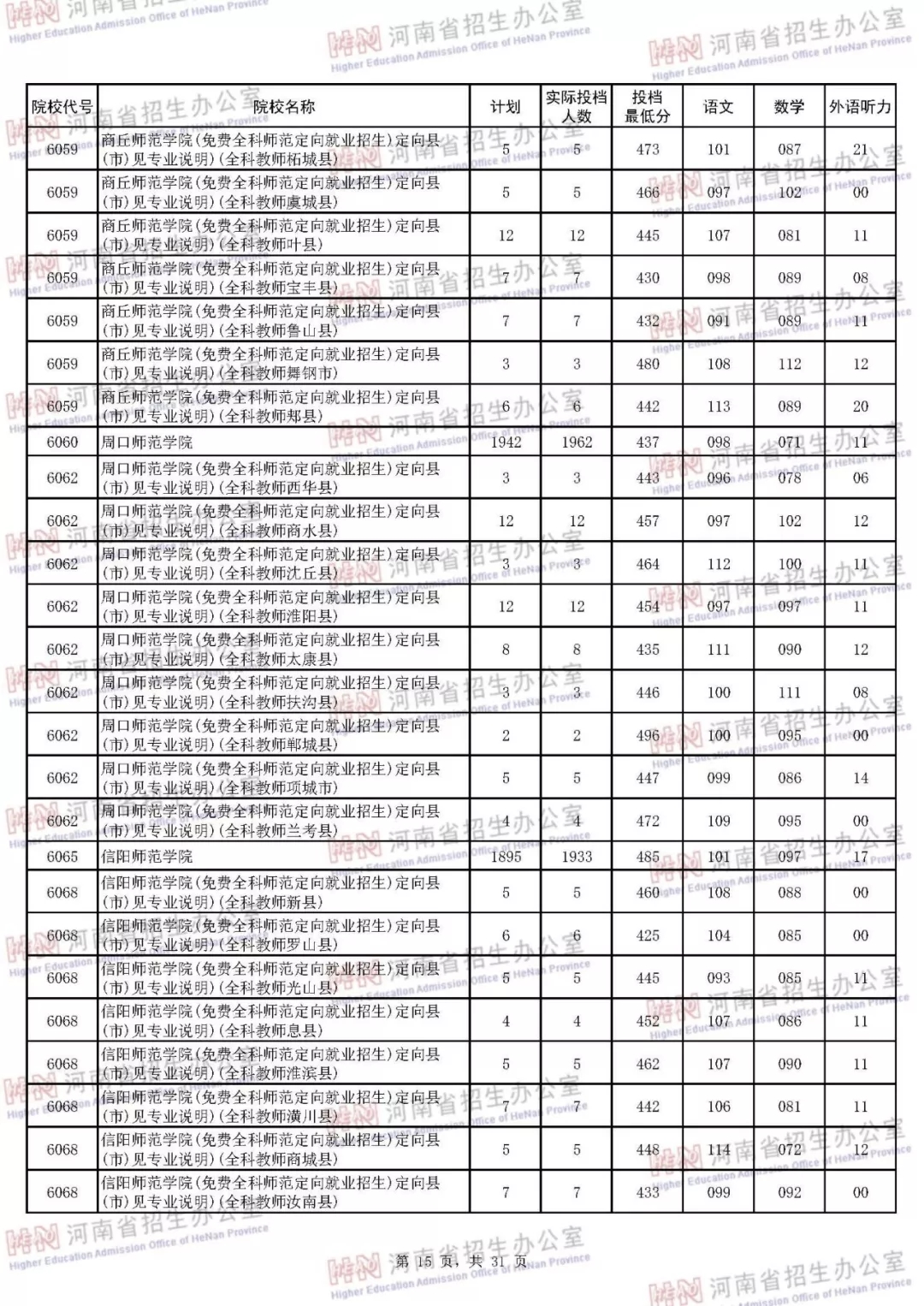 据了解,承担2018年小学教育(全科教师)专业本科层次定向招生任务的高校为:信阳师范学院、洛阳师范学院、周口师范学院、商丘师范学院、安阳师范学院、郑州师范学院等6所师范院校。根据免费师范生(全科教师)"县来县去"相关政策,省招办精准投档,目前共投档1000人。