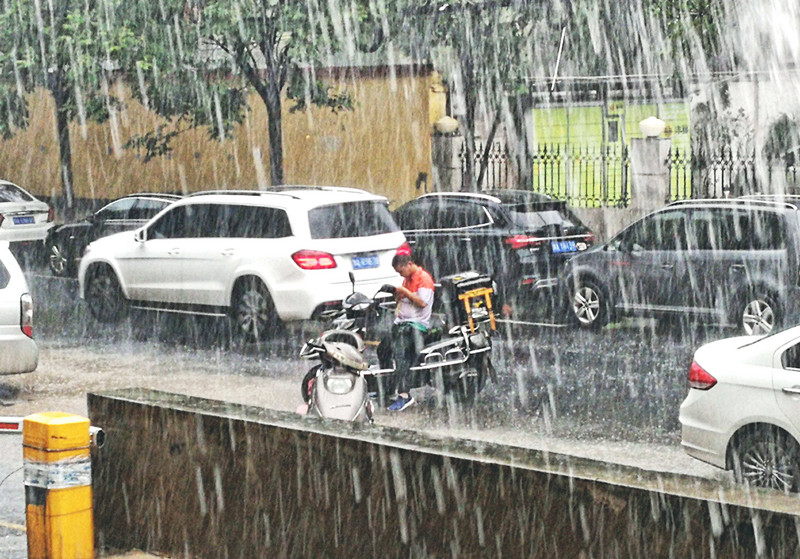 7月30日中午,用餐高峰期,一场大雨突袭郑州,让人猝不及防。路上能见度很低,行人稀少,车辆缓慢前行。当大家在屋里避雨,美美地享受午餐的时候,你可知道,很多外卖员正在外面冒雨工作,和时间赛跑,奔波在路上。