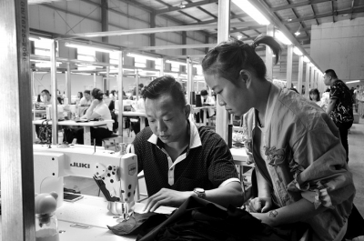 迪尚华盈新招录的纺织工人正在接受岗前技能培训