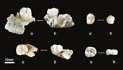 此外,发现的3个下颌臼齿均具有转向皱纹的形态特征,这一特征在现代东亚蒙古人群比例高,也普遍存在于周口店直立人,中国其他直立人、古老型智人和晚期智人化石中。