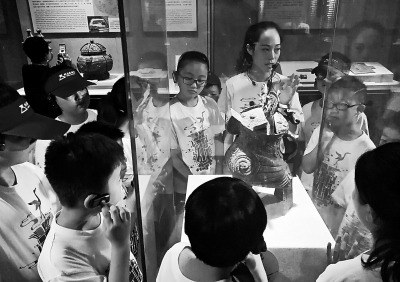 8月7日,记者在河南博物院发现,仅一个上午就有五批少儿游学班陆续前来参观。其中,既有寓教于乐“走心”的,也不乏只游不学的团队。