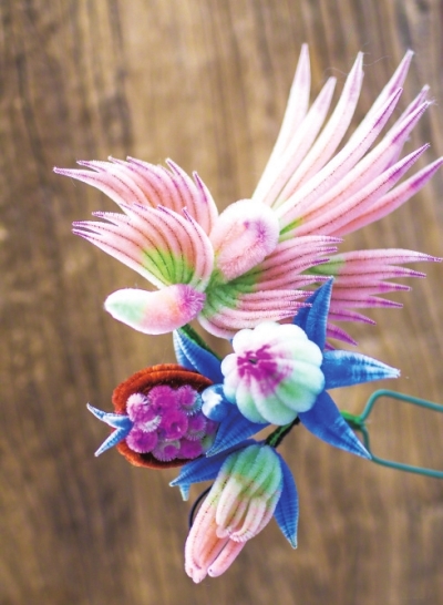 《延禧攻略》里秦岚扮演的富察皇后平日里“以通草绒花为饰,不御珠翠”,她头上所佩戴的绒花,被网友们戏称为“多肉”。这种素雅而又别致的头饰,尽管剧中是皇后俭德的标志,但实际上制作工序异常繁杂,需经染色、软化黄铜丝、勾条、打尖、传花等近十道工序。据悉,剧中的绒花头饰参照了故宫的绒花藏品,由南京的非遗传人赵树宪制作完成。