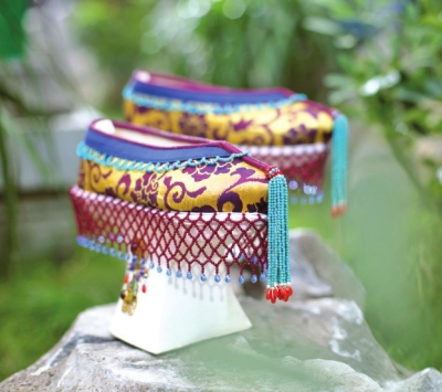 满族妇女总给人身材修长的感觉,除了发式要比汉族妇女高出五六寸外,穿的“花盆底”旗鞋,也比普通女鞋高两三寸。长袍下摆多垂至地面,掩住旗鞋,更显出修长的身姿。