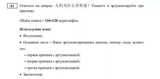 让人头疼的还有写作,毕竟前面都是选择题,不会还可以蒙一蒙,之前不是有句话说“英语考试不会就选B”?但这个写作可真是蒙不出来。俄罗斯的汉语写作包括两篇小作文,虽然每篇要求字数只有100-120字,但是却给了70分钟的时间,可想而知,俄罗斯认为这有多难啊。不过,令人比较难以理解的是,虽然只有120字,但俄罗斯要求第二篇小作文按照论文的格式来写,包括引言、正文和结尾三部分,其中正文还得包括三小部分,这得多高度概括才能做得到啊!