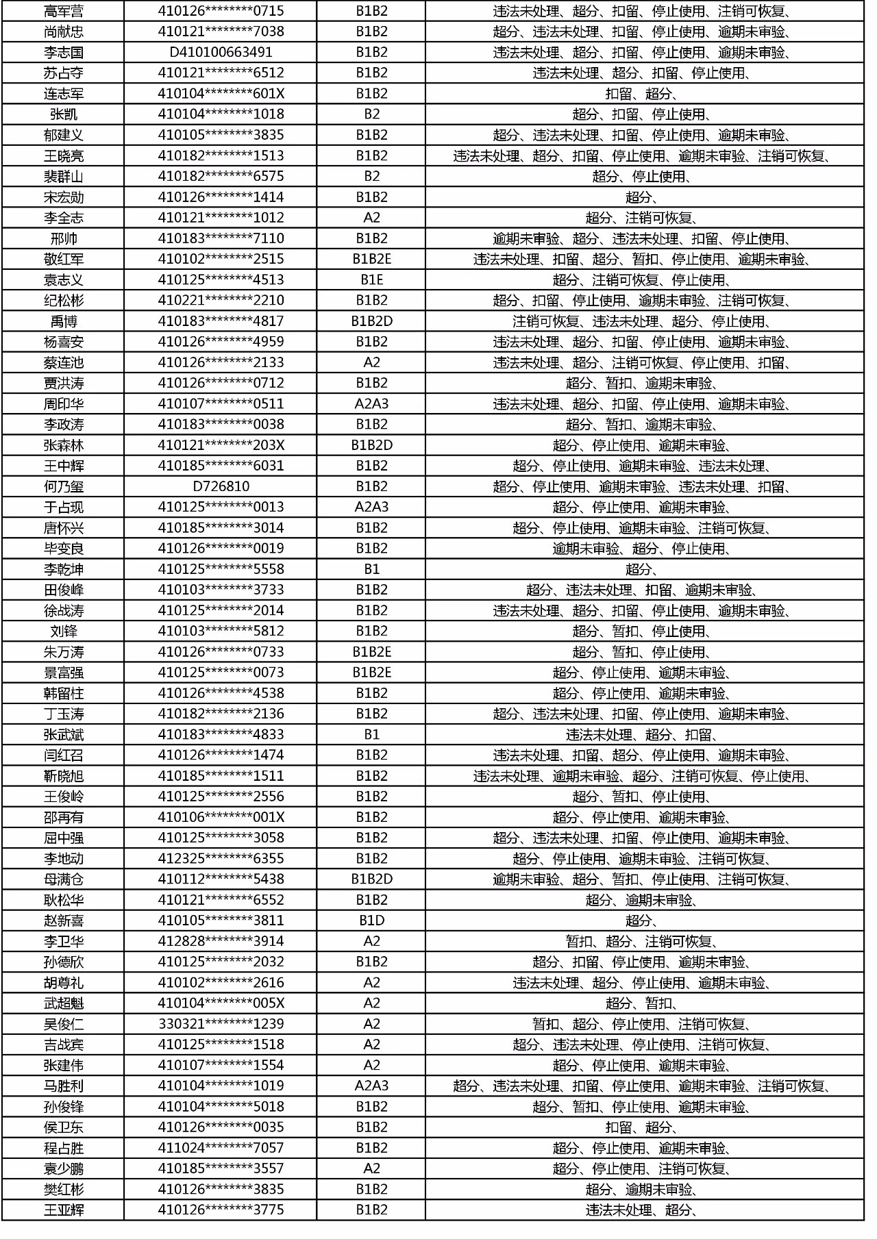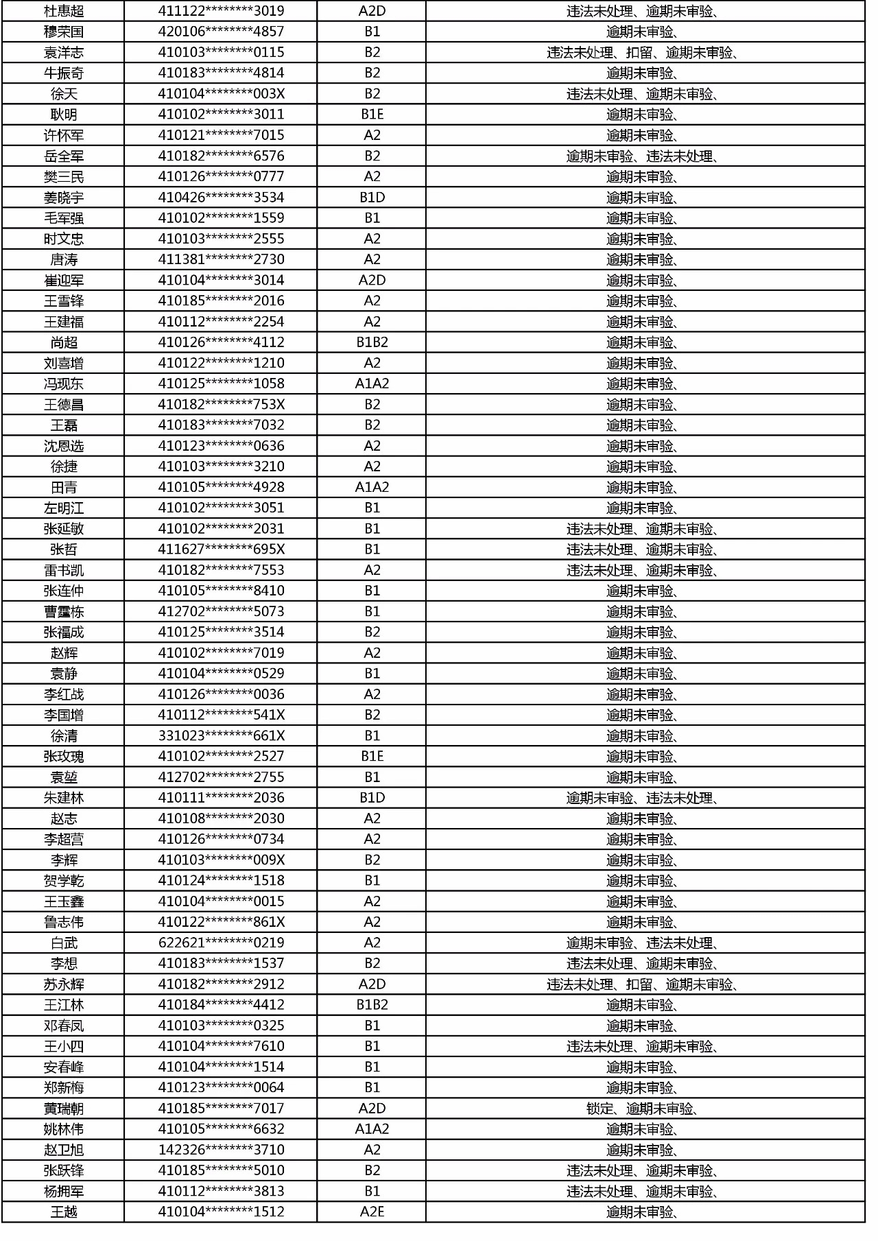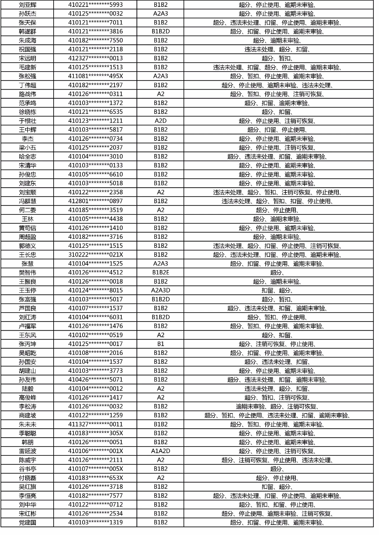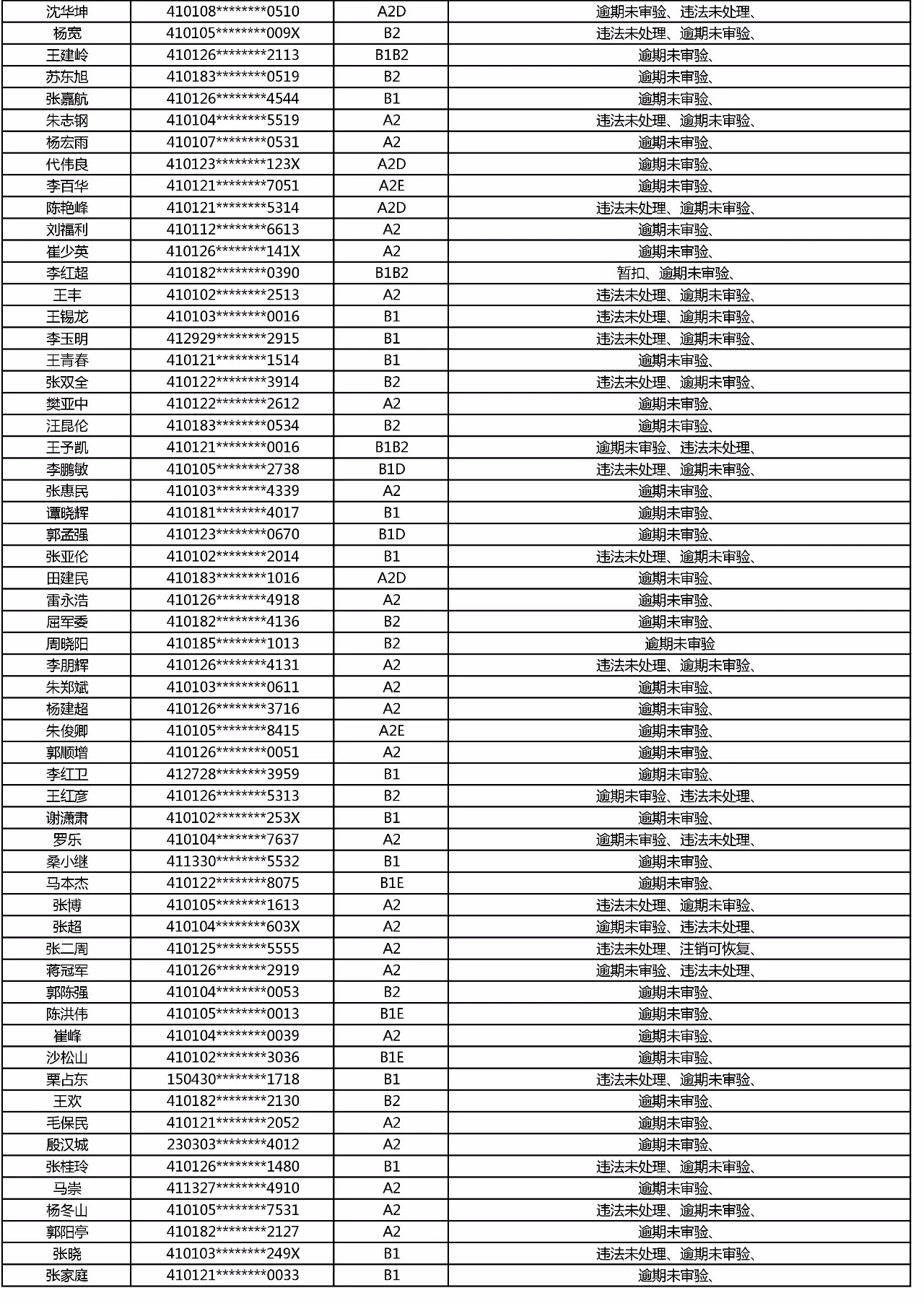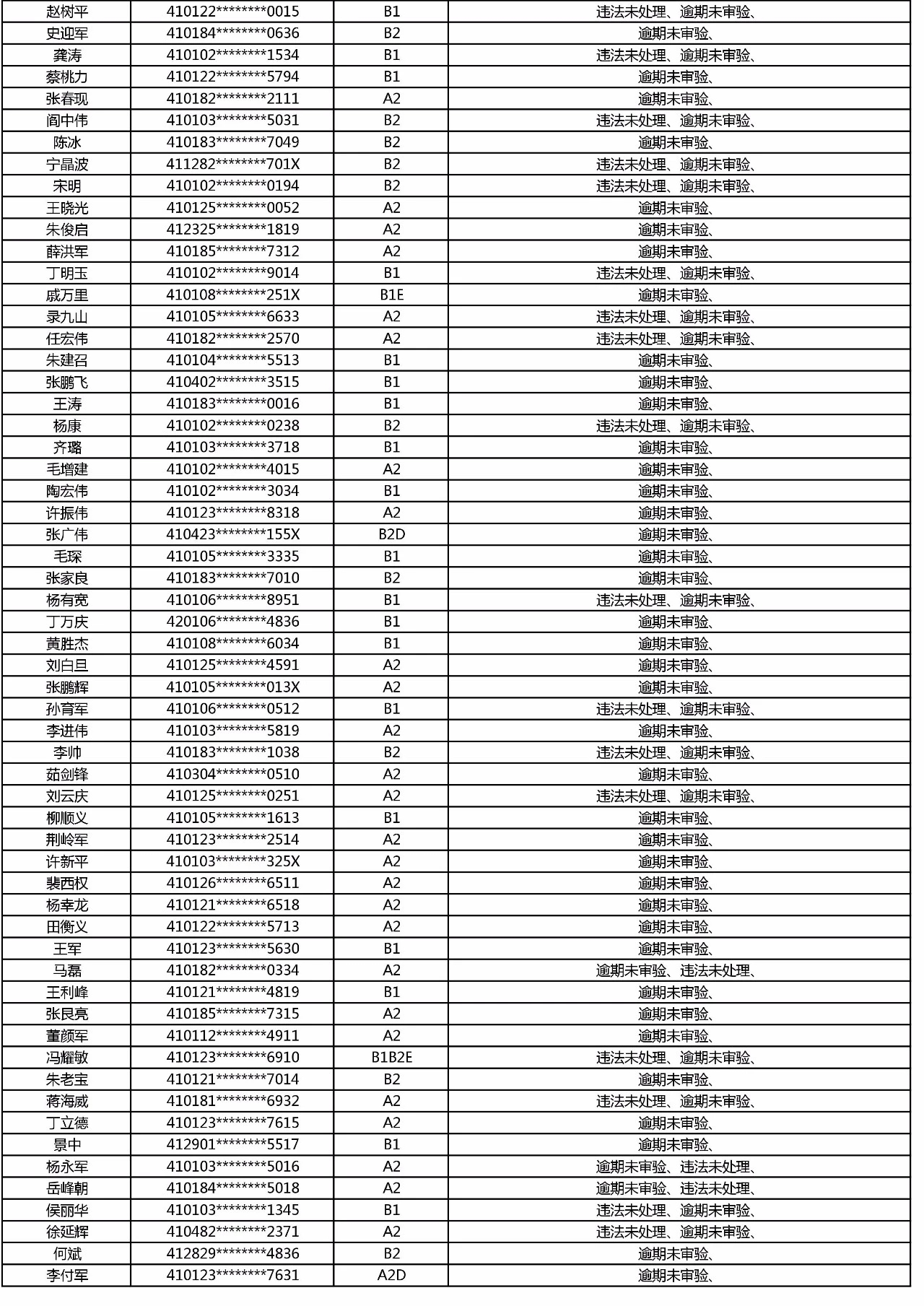 郑州市未换证已注销驾驶人名单(2018年8月31日公布数据):