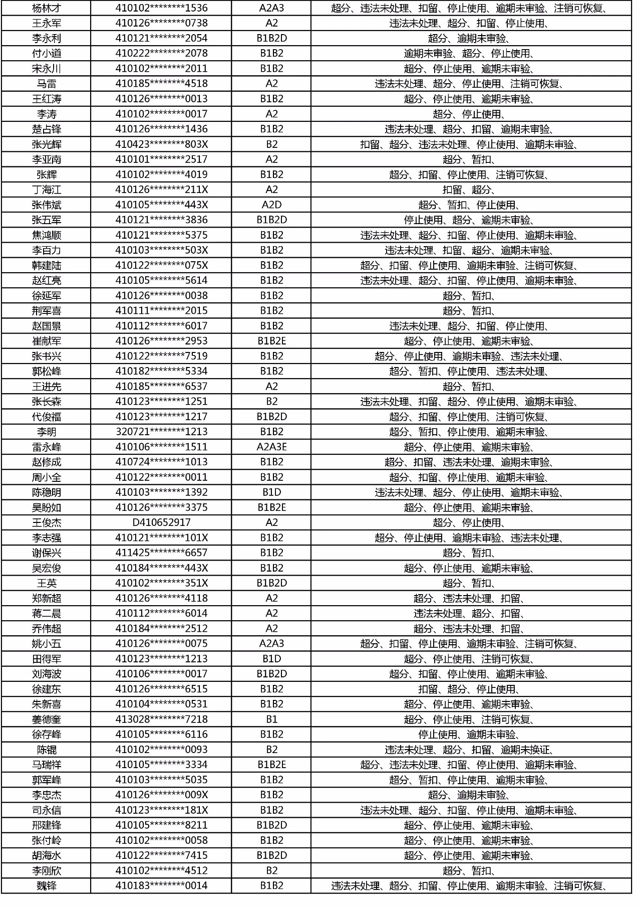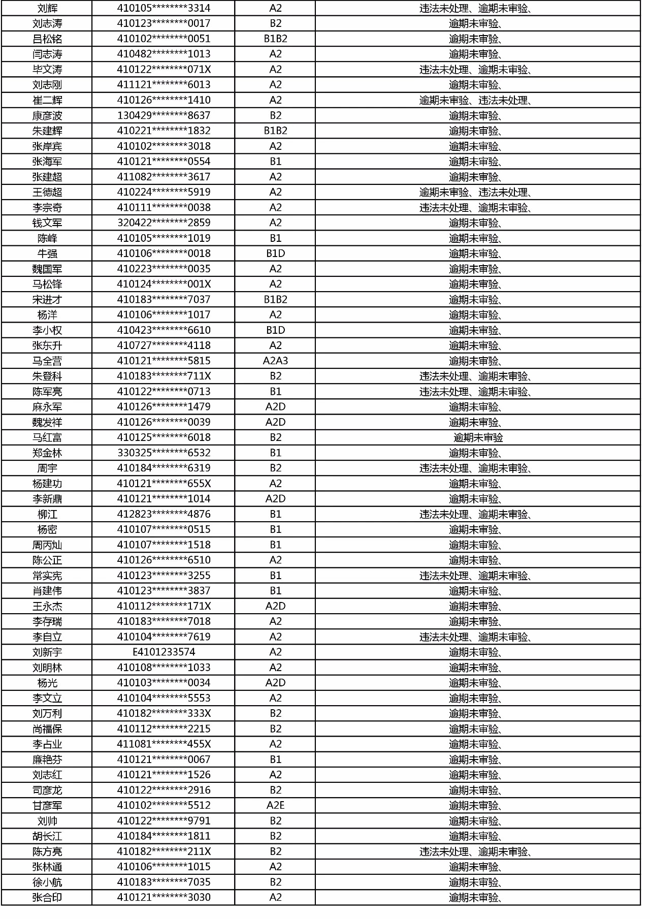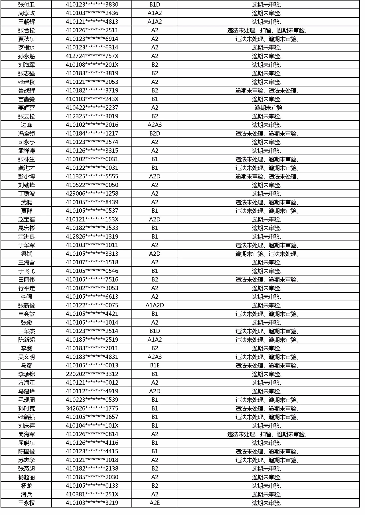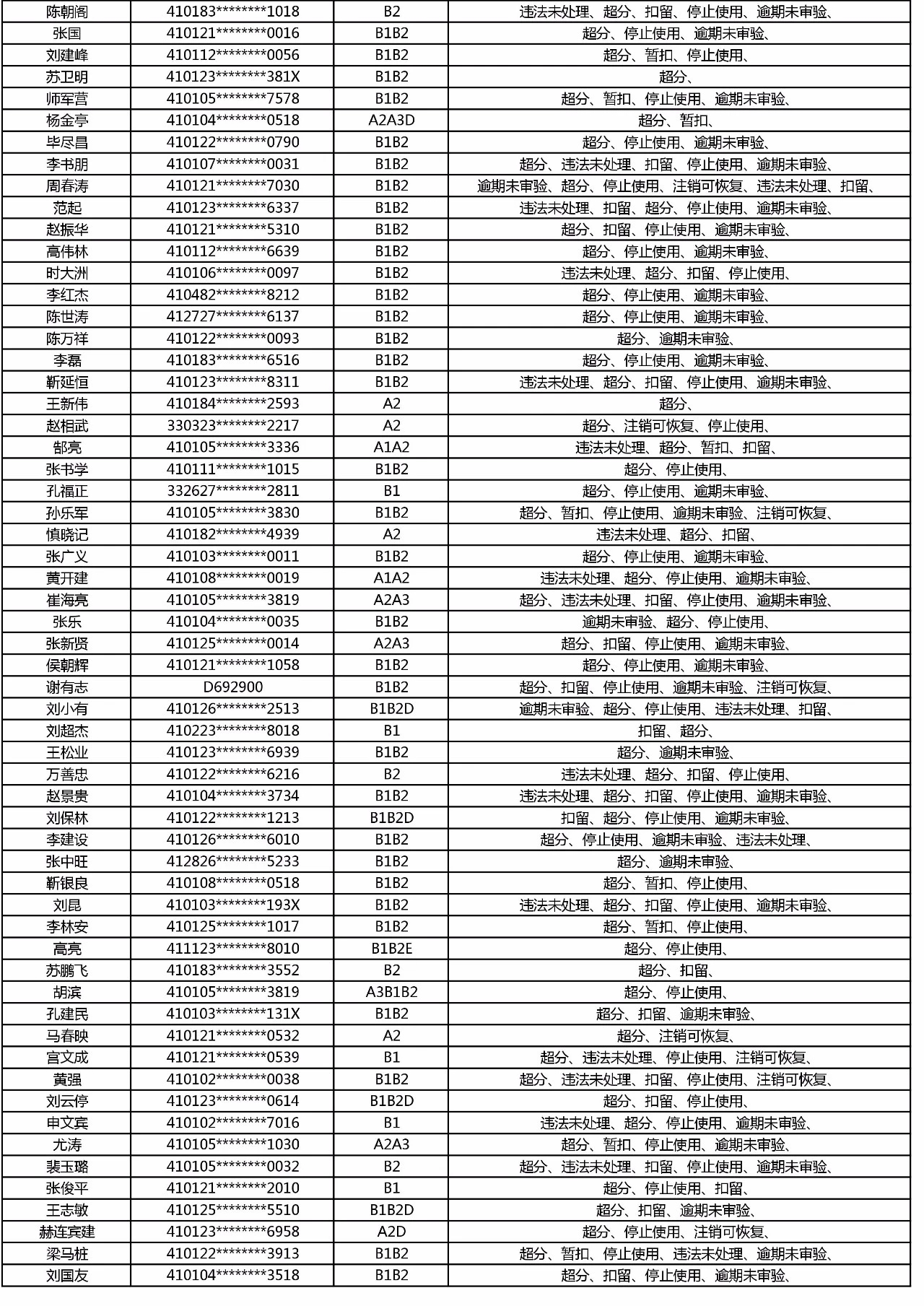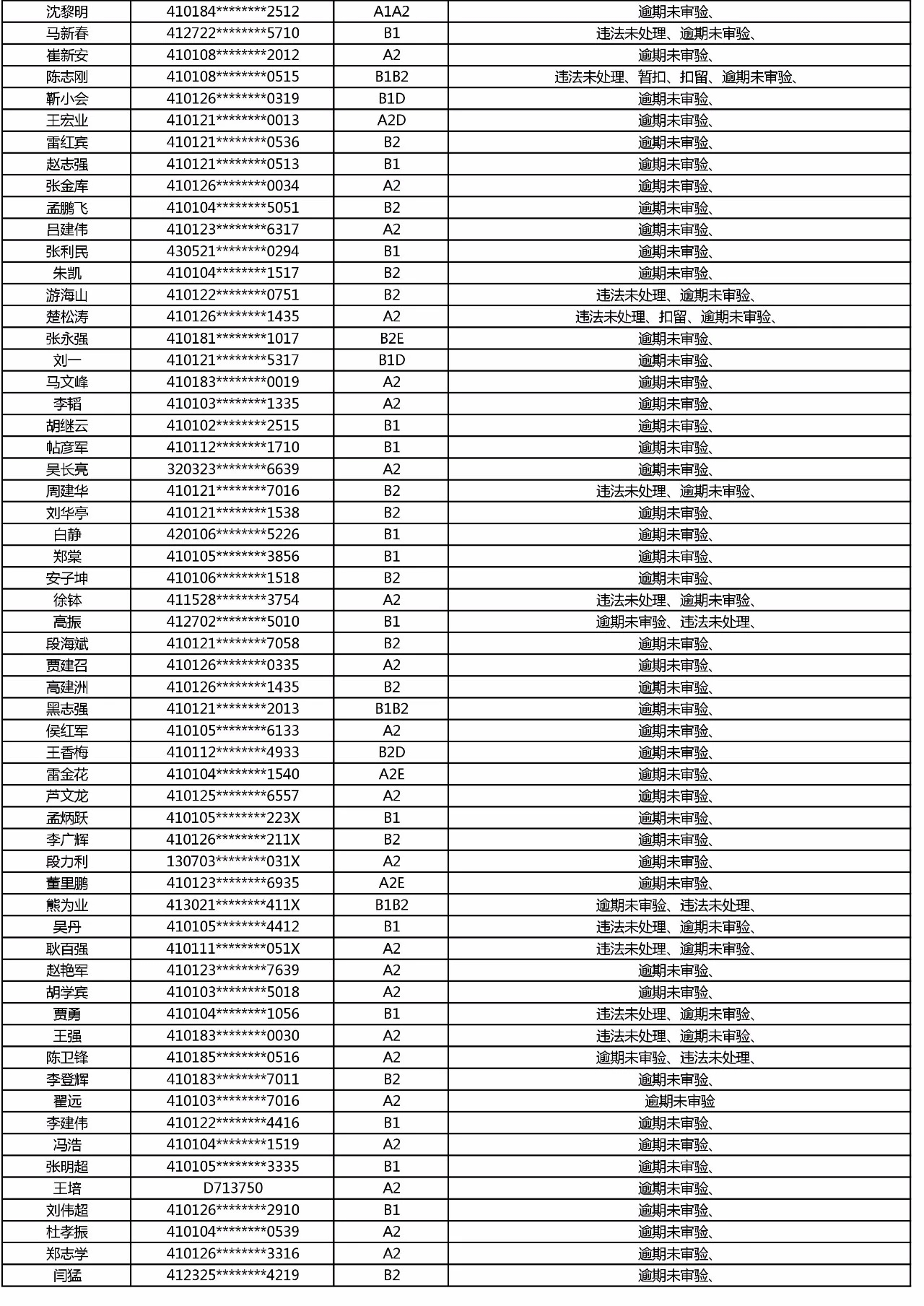 郑州市未换证已注销驾驶人名单(2018年8月31日公布数据):