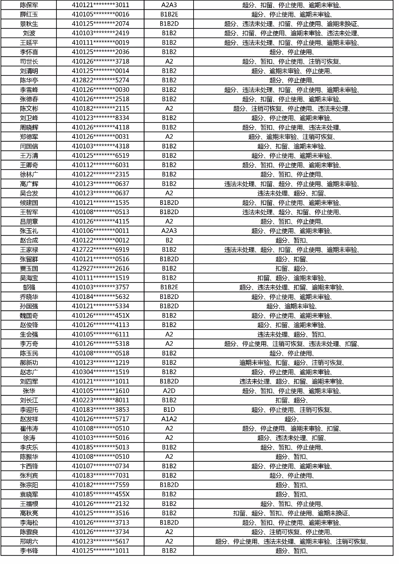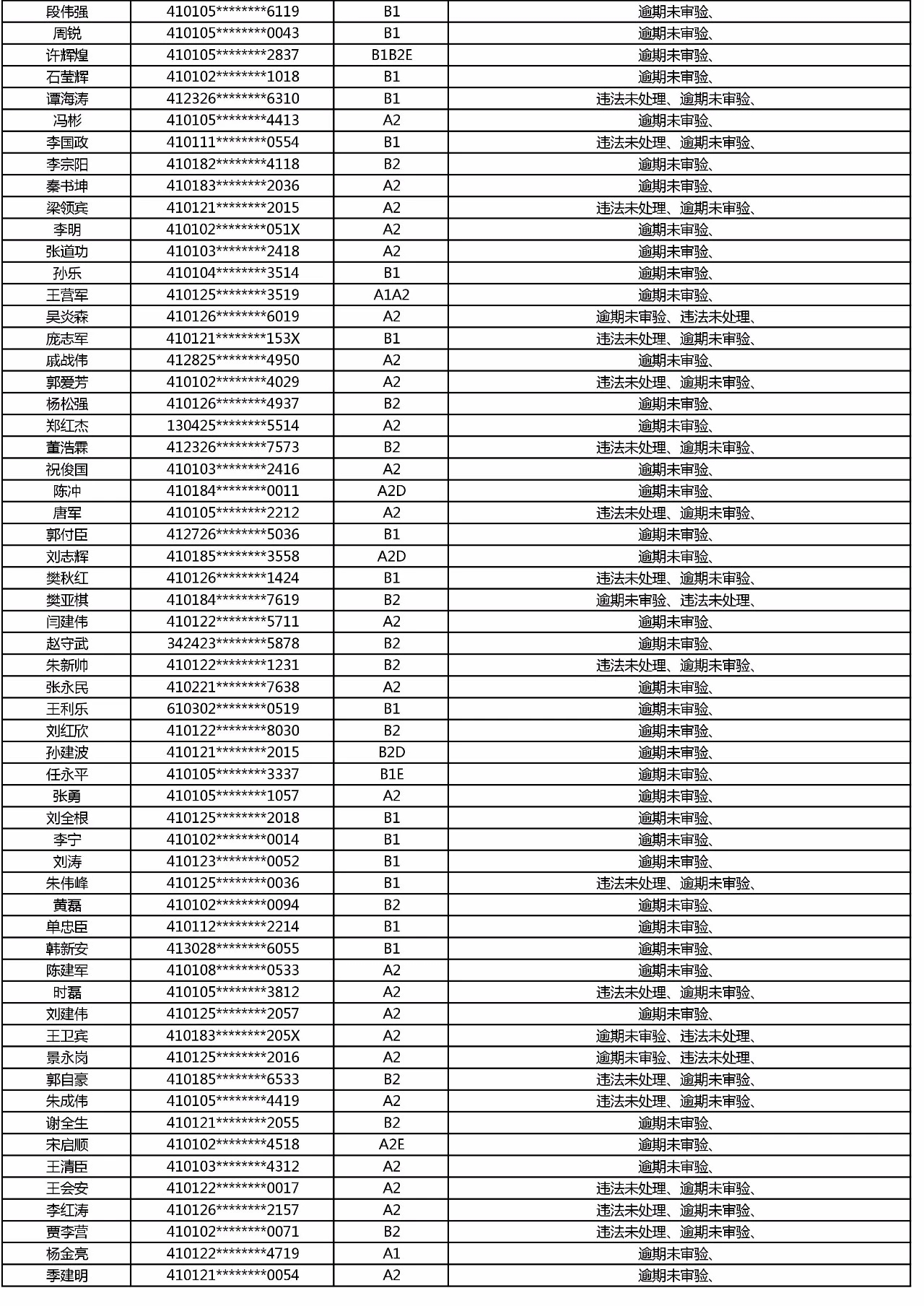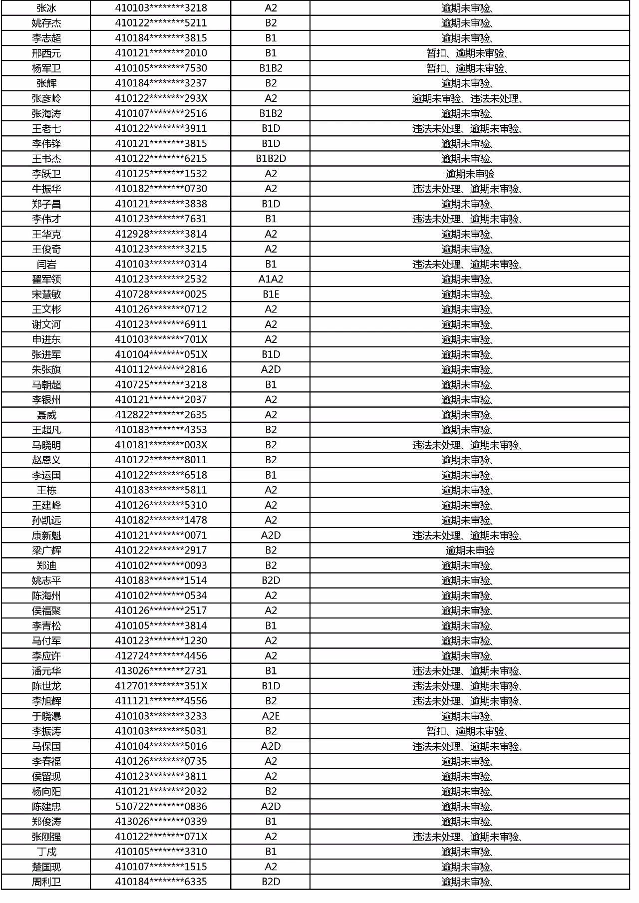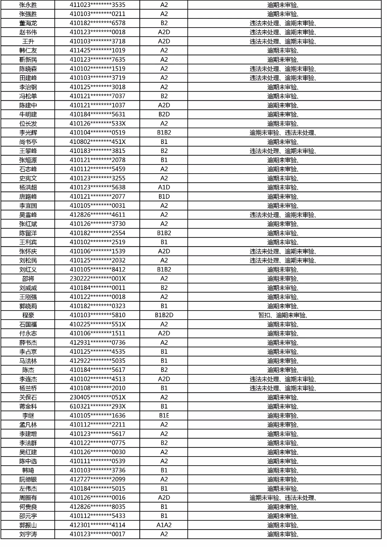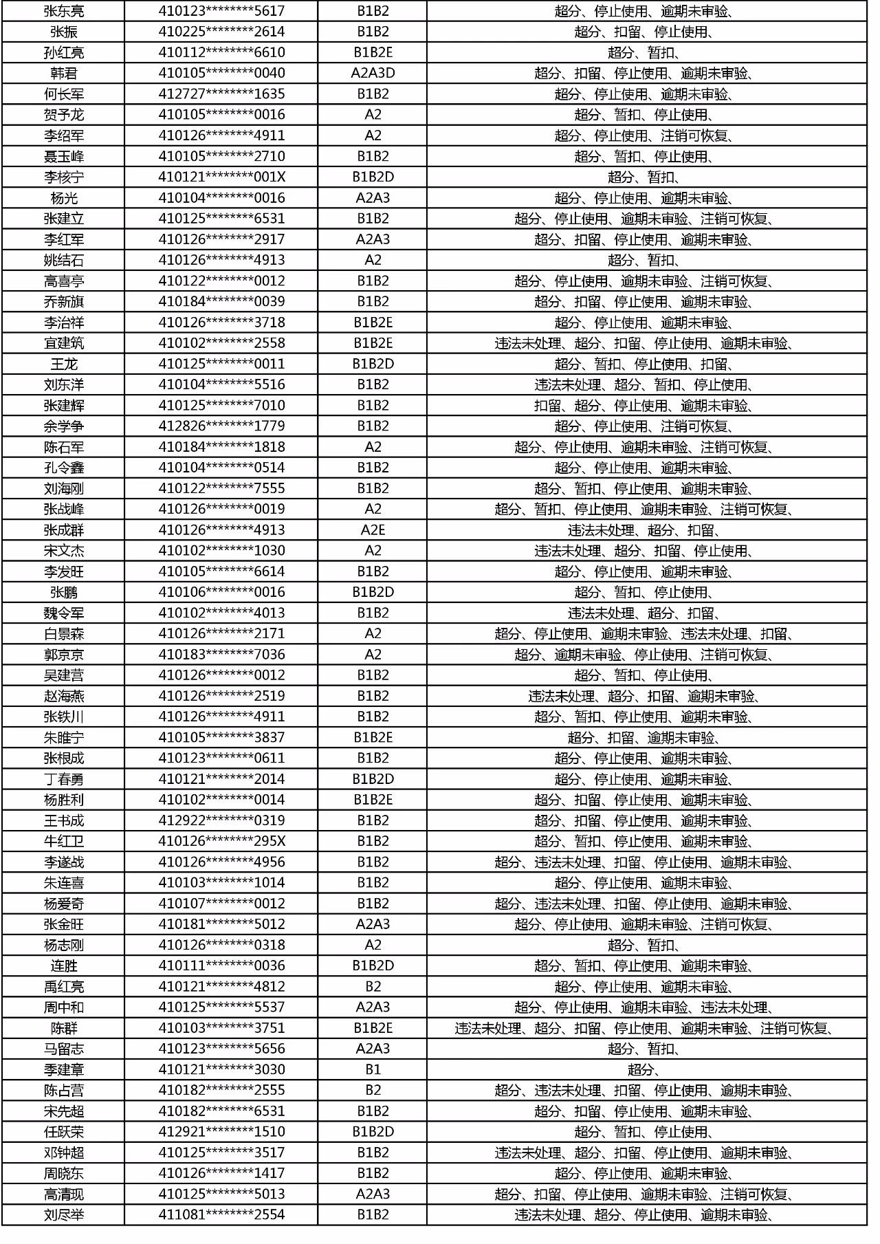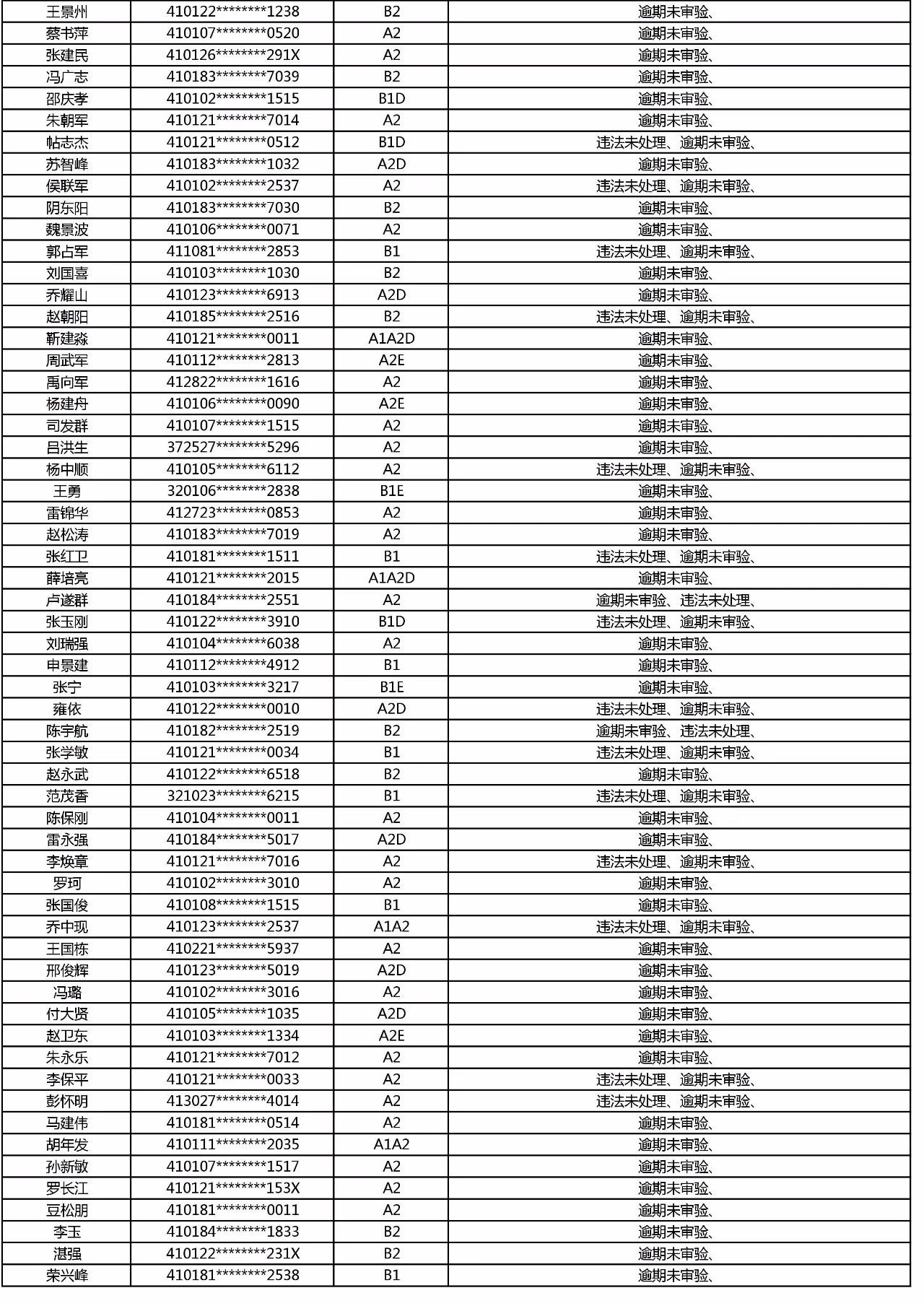 郑州市未换证已注销驾驶人名单(2018年8月31日公布数据):