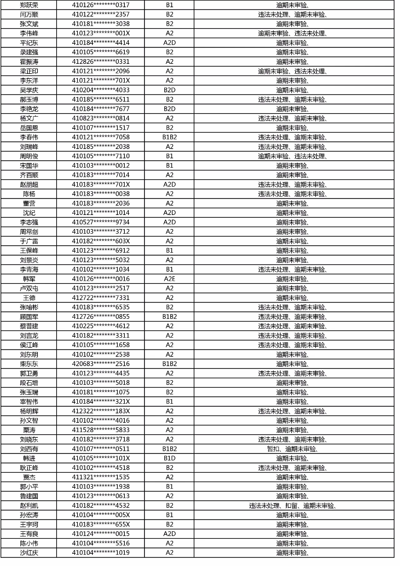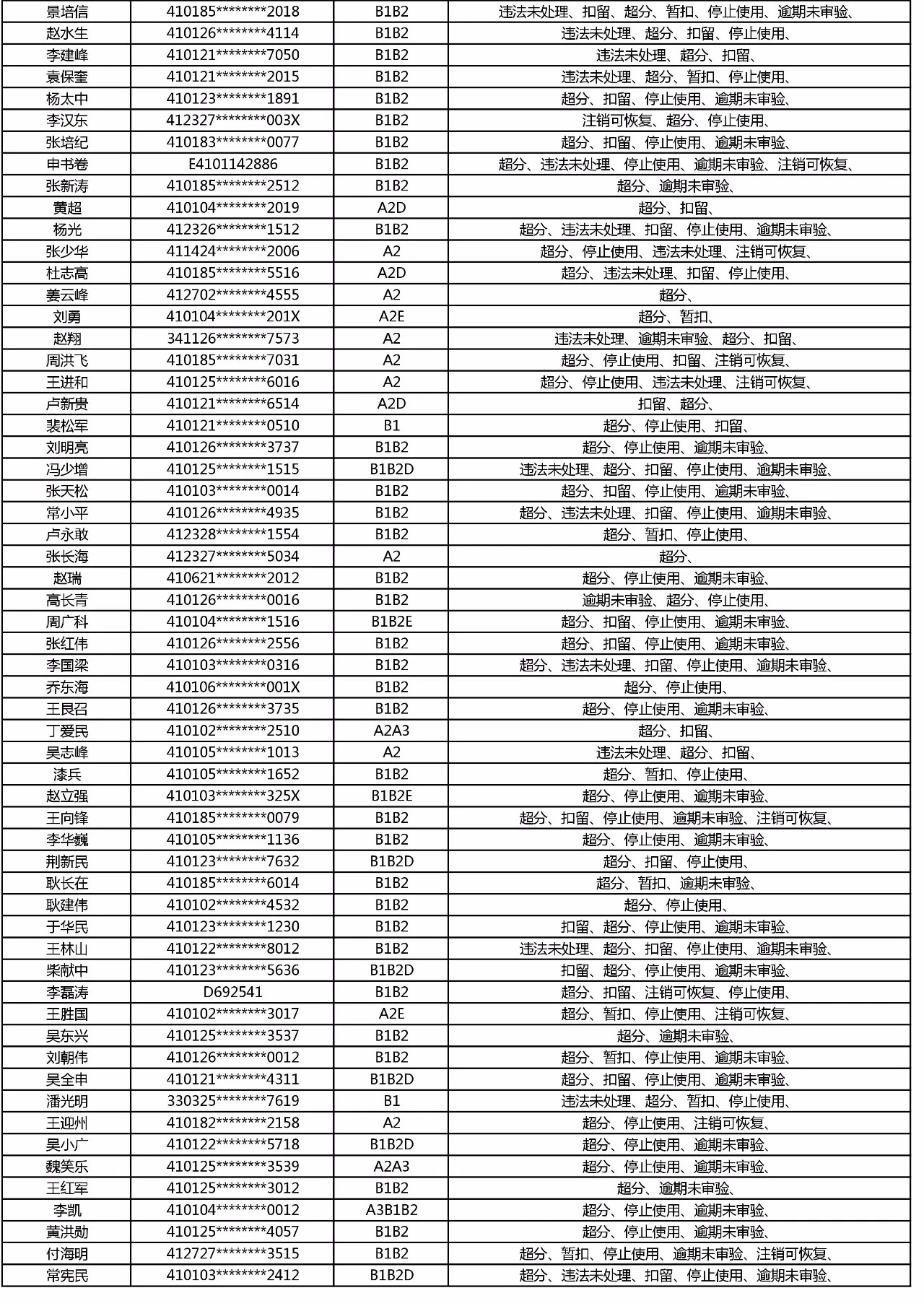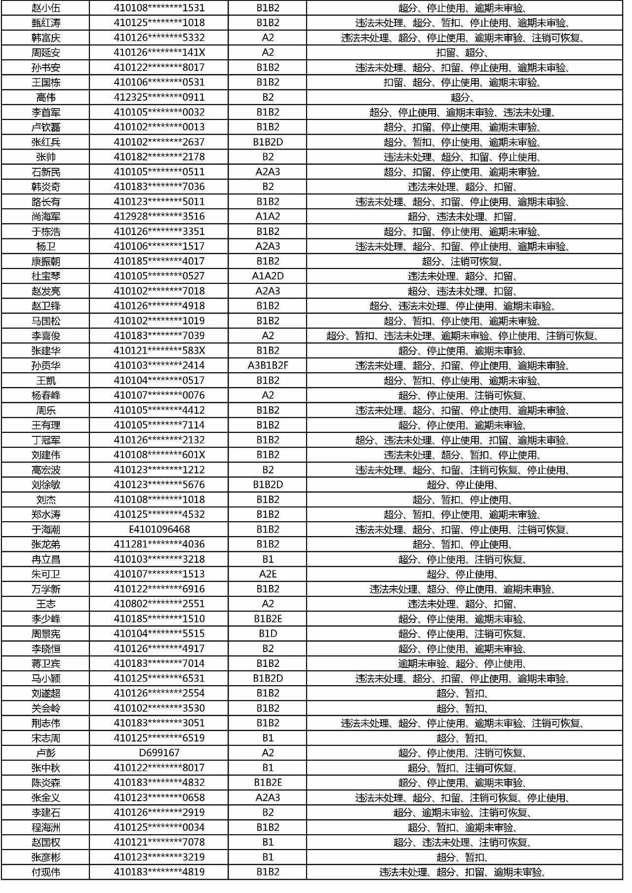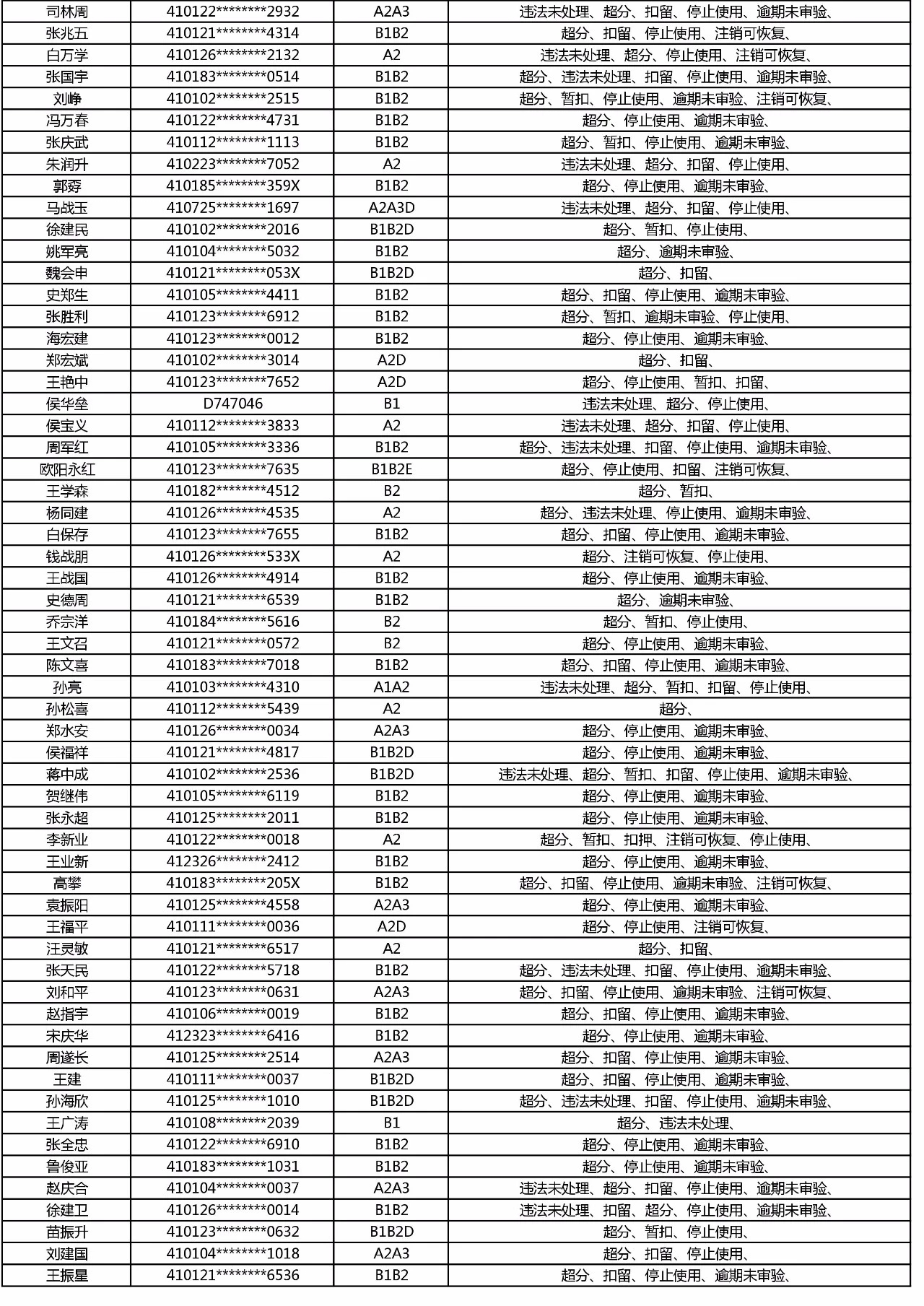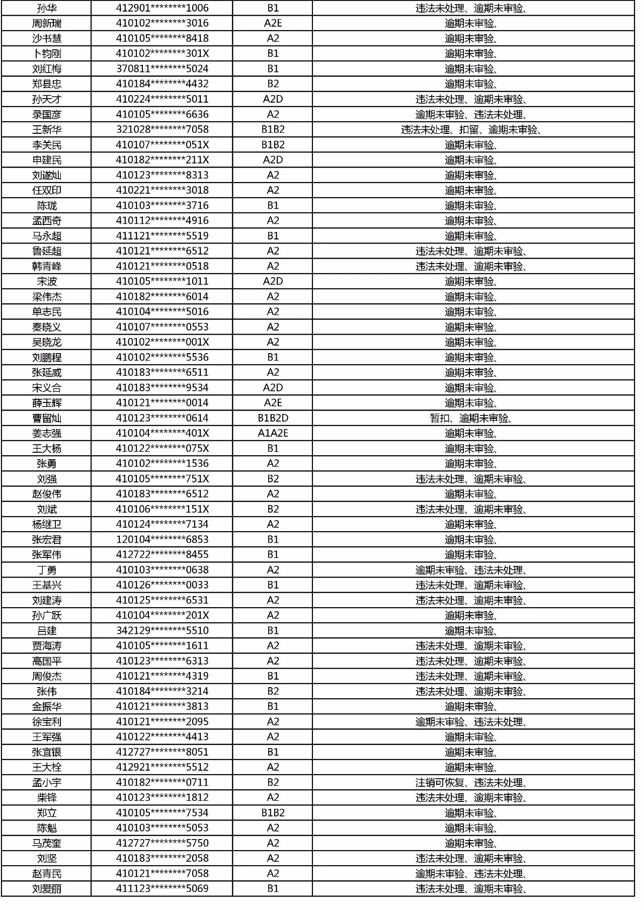 郑州市未换证已注销驾驶人名单(2018年8月31日公布数据):