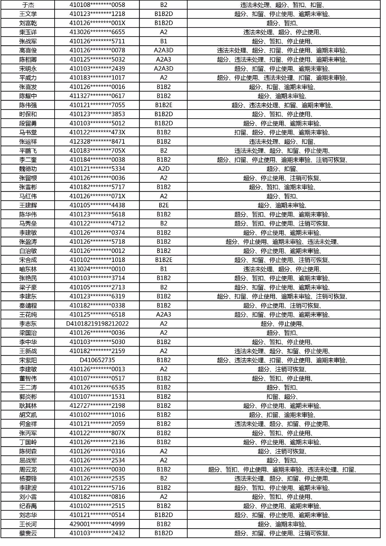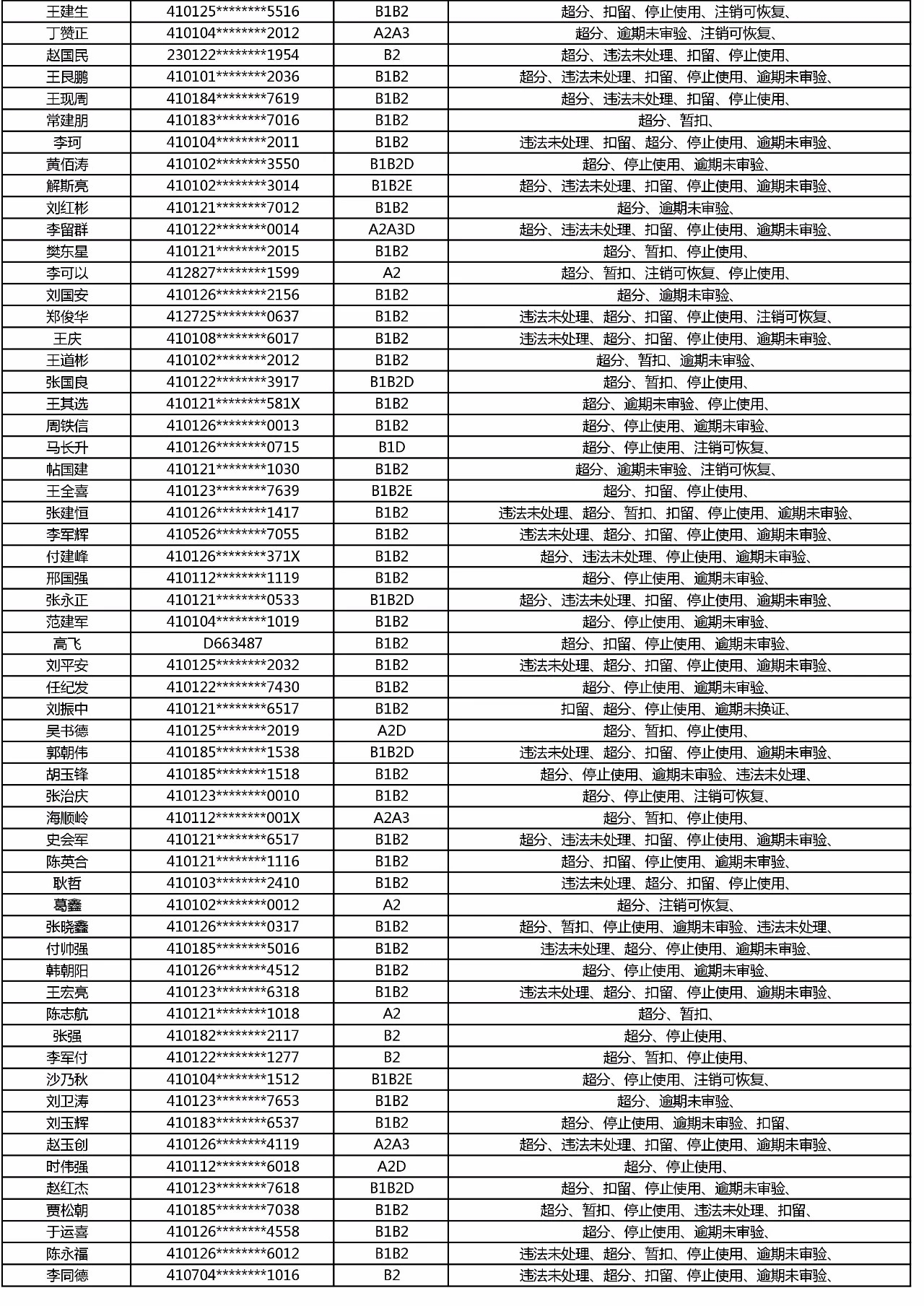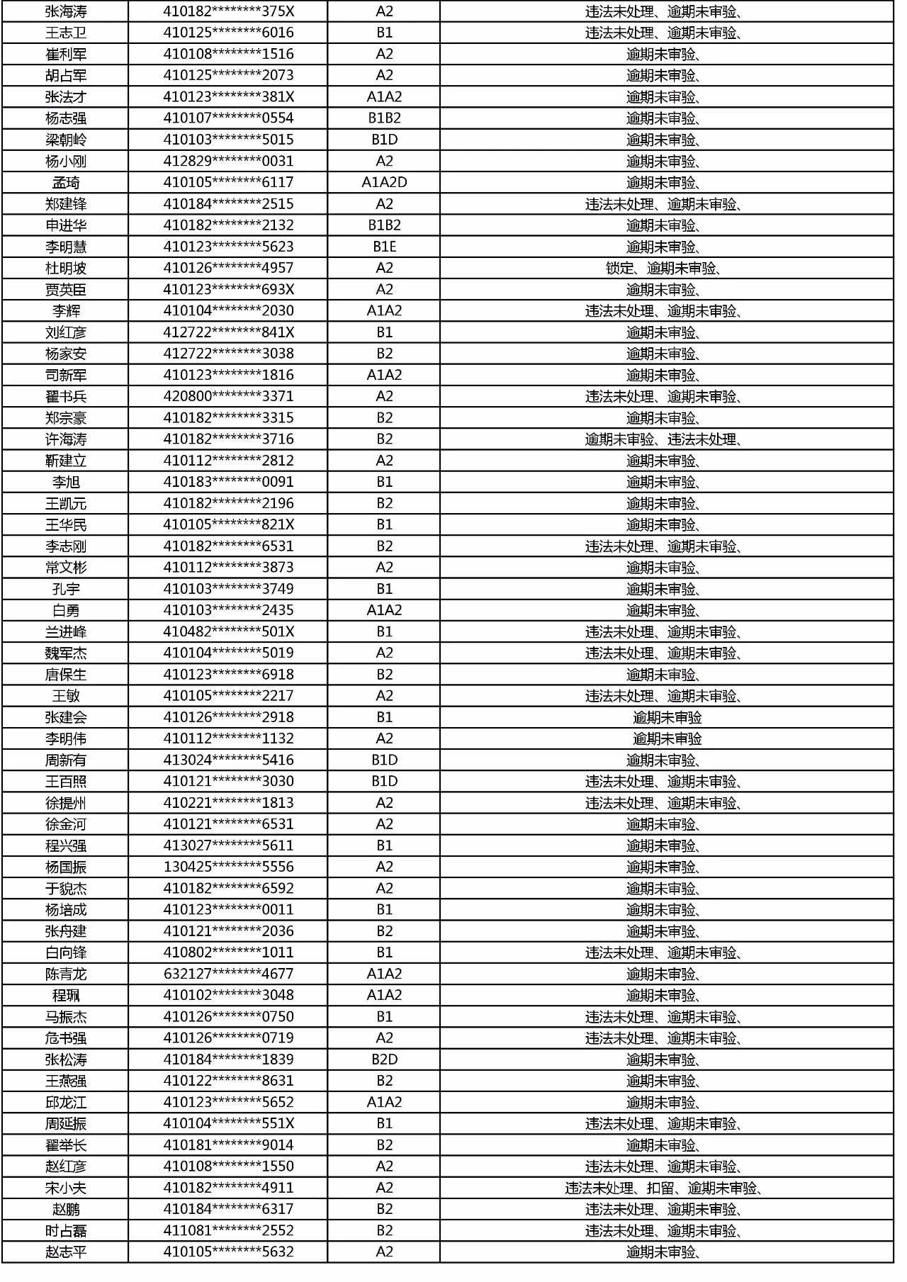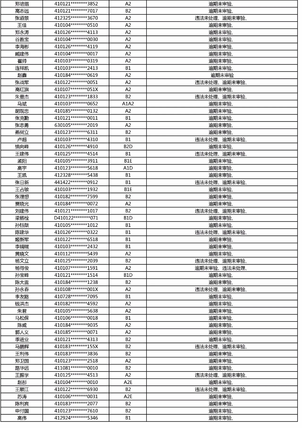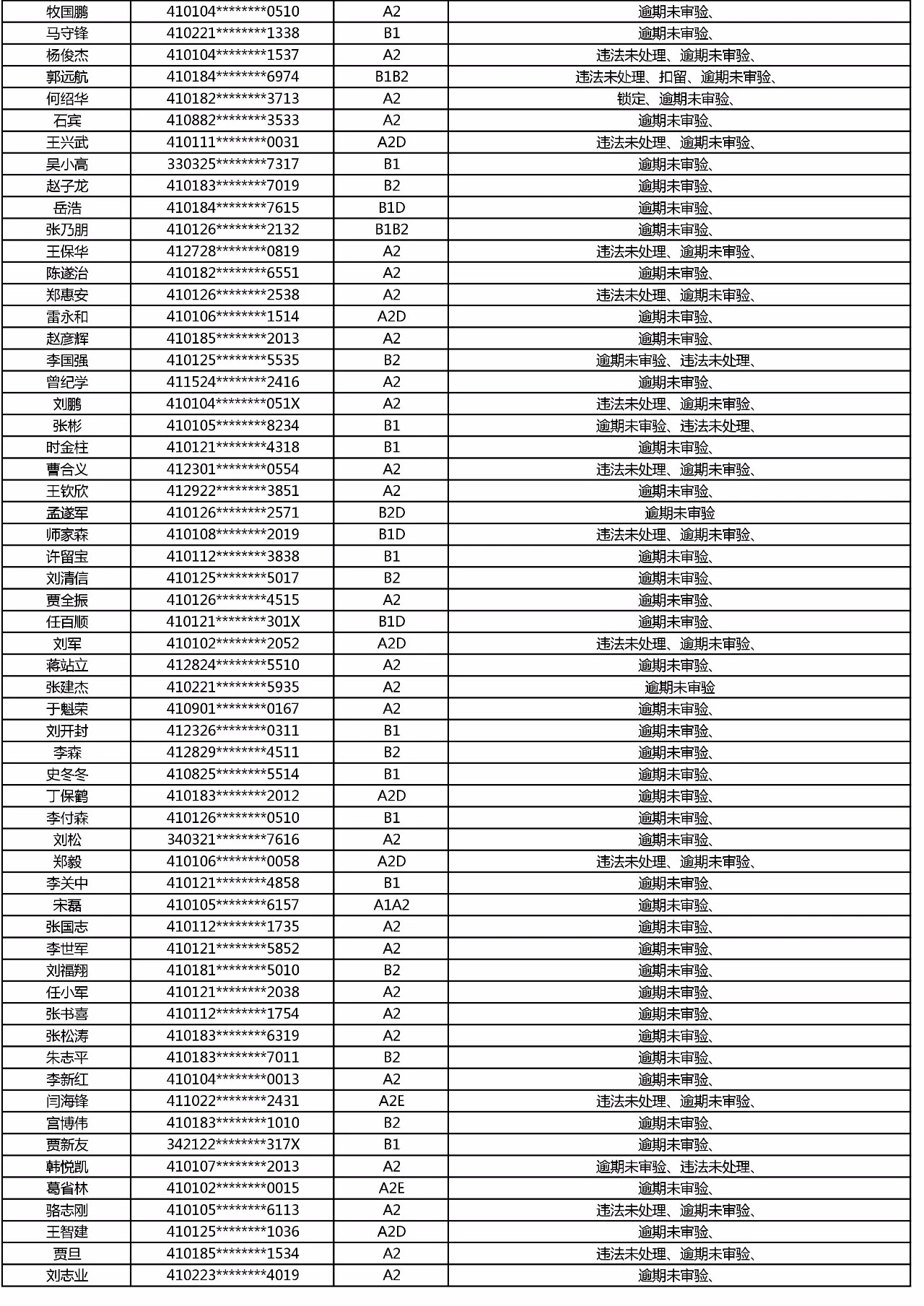郑州市未换证已注销驾驶人名单(2018年8月31日公布数据):