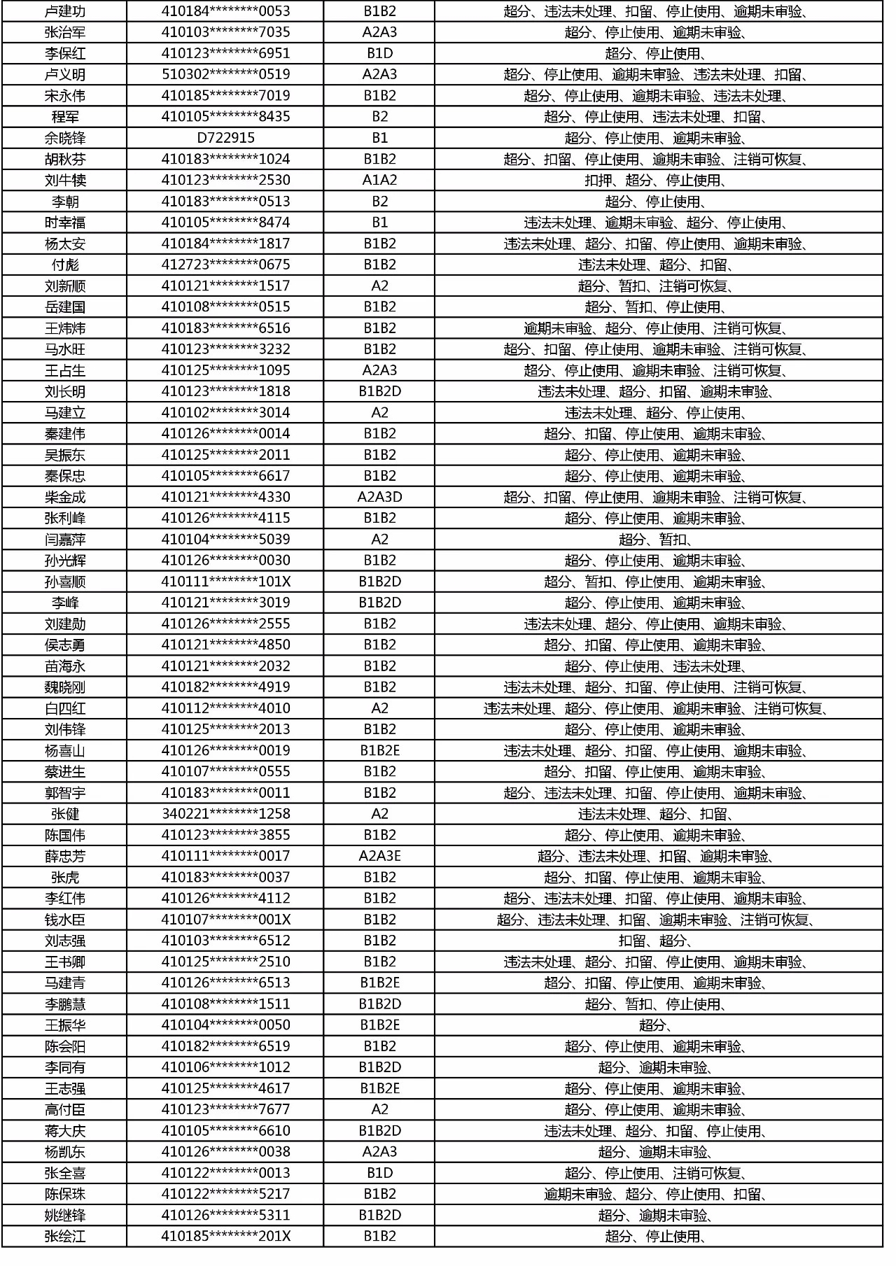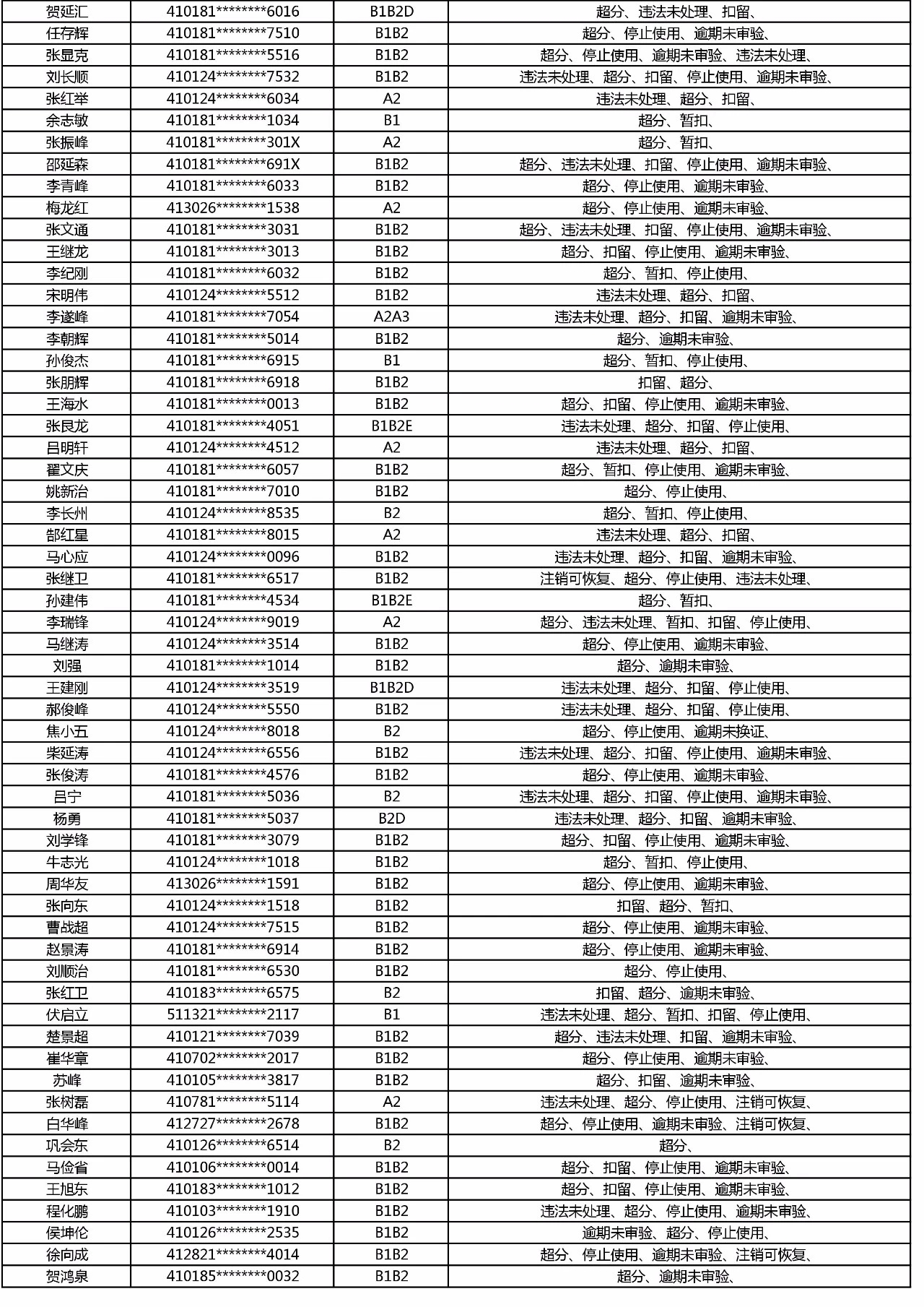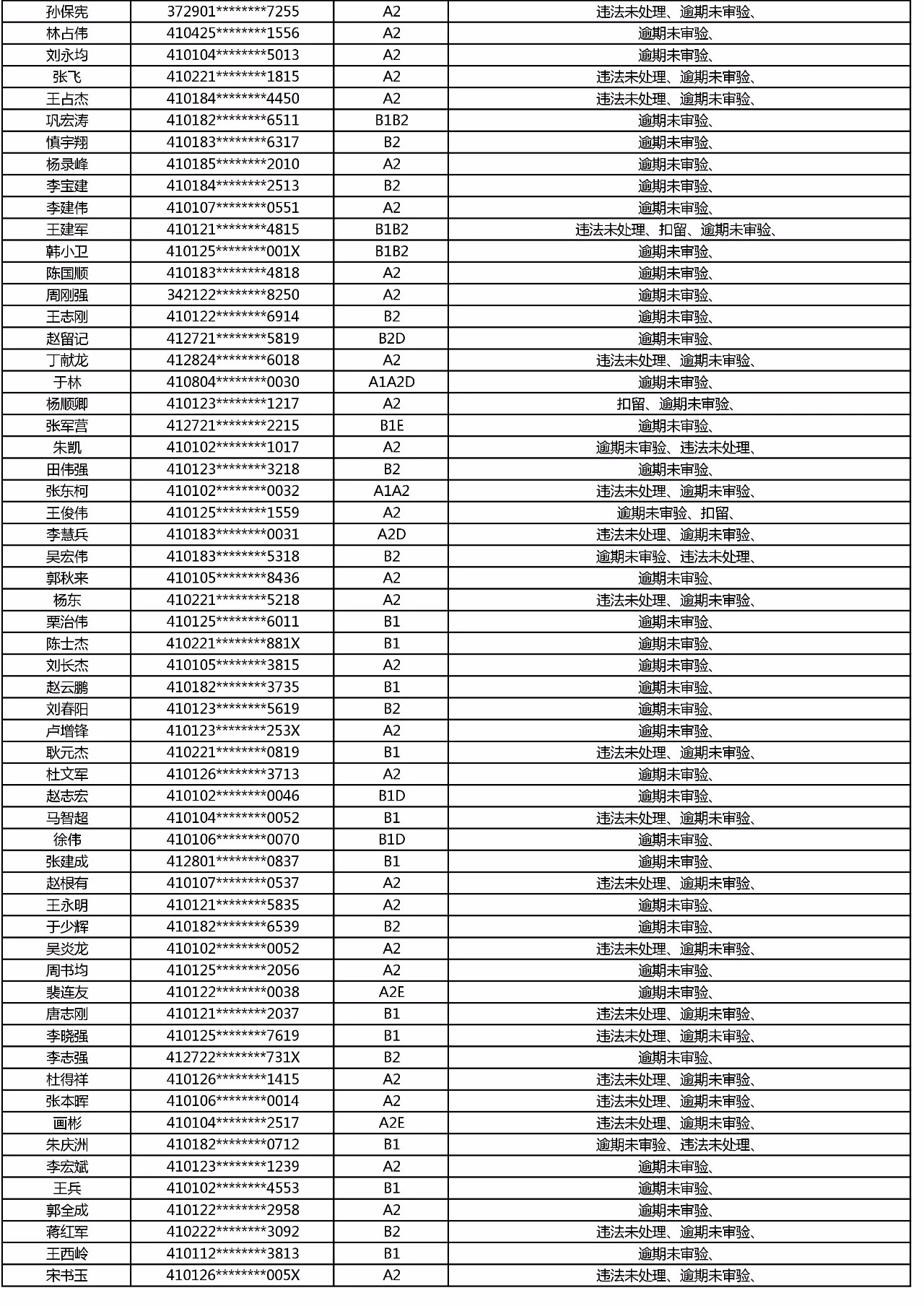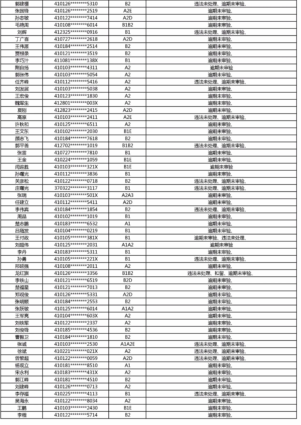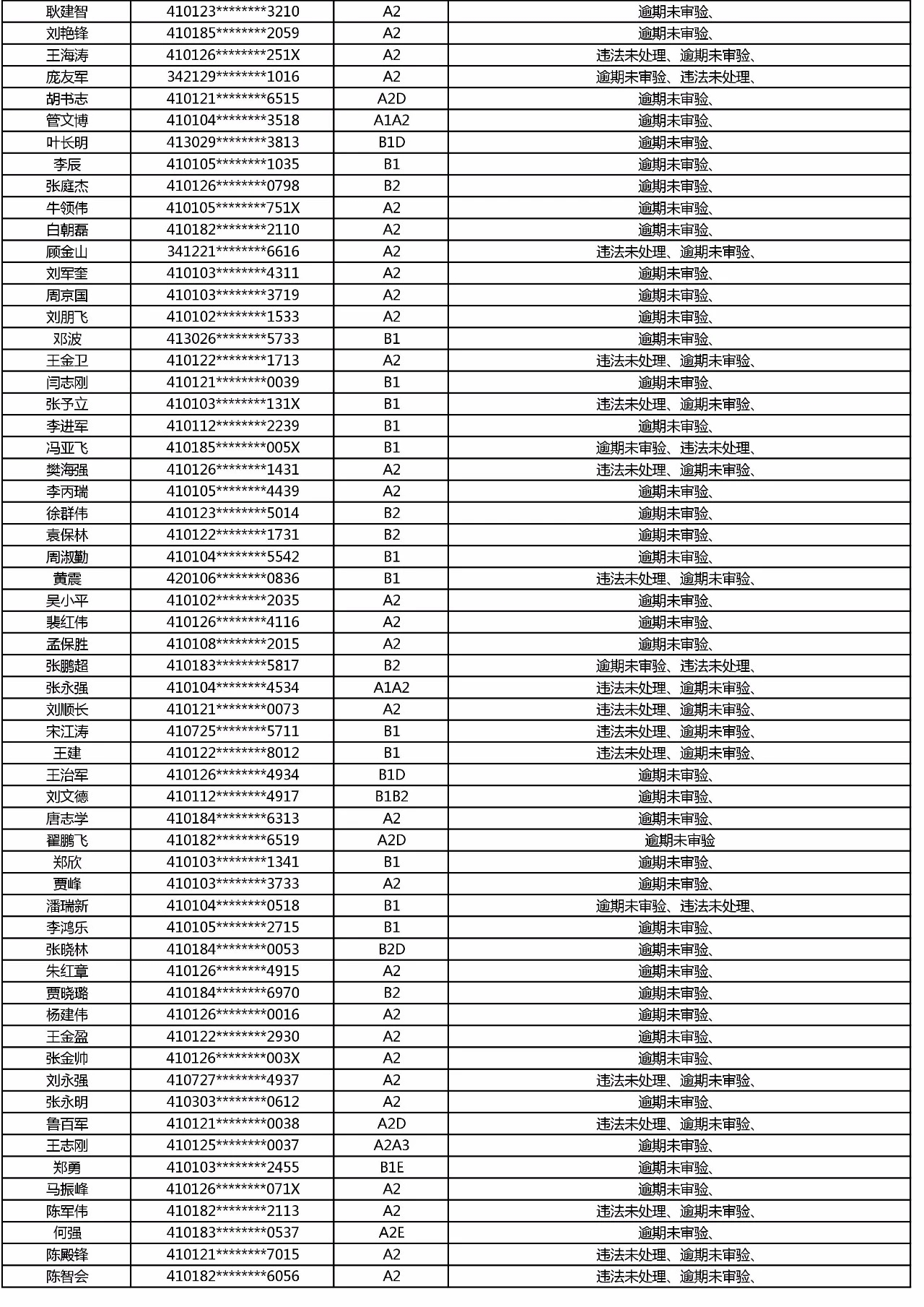 郑州市未换证已注销驾驶人名单(2018年8月31日公布数据):