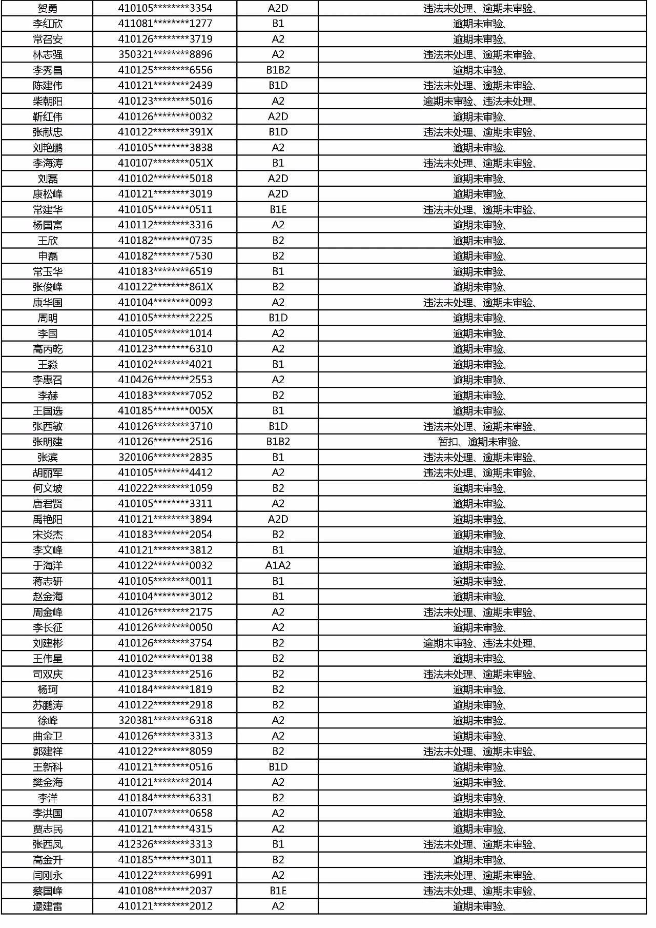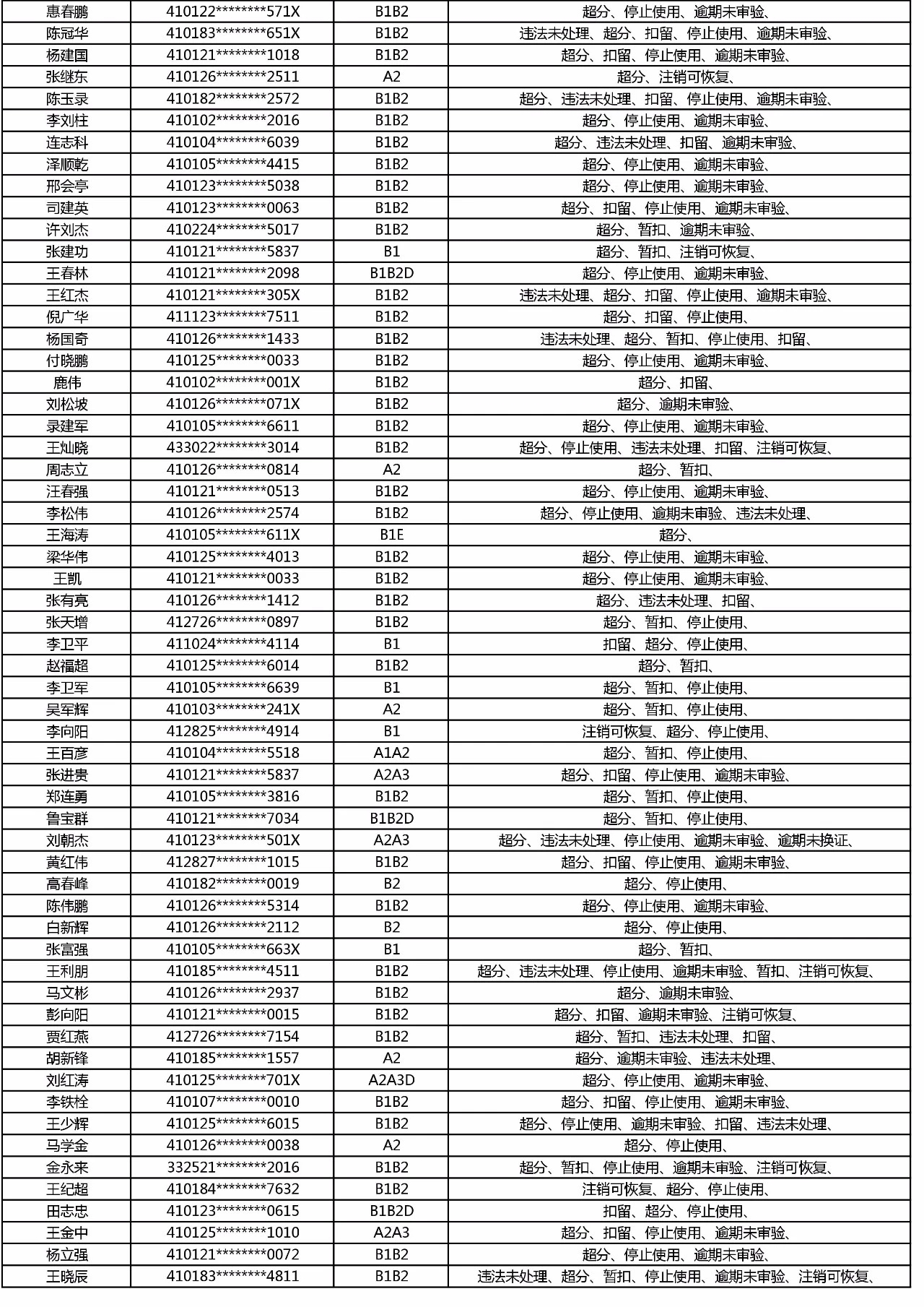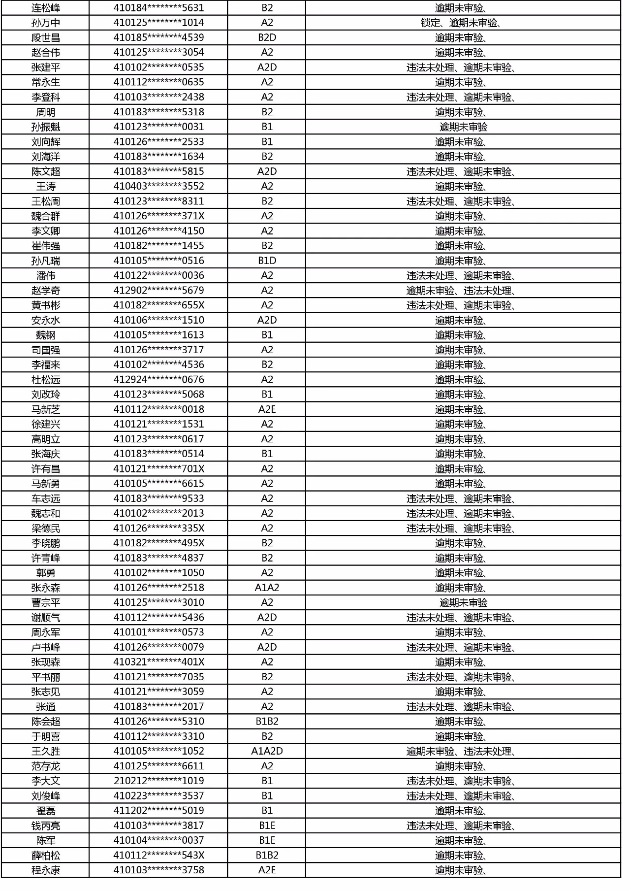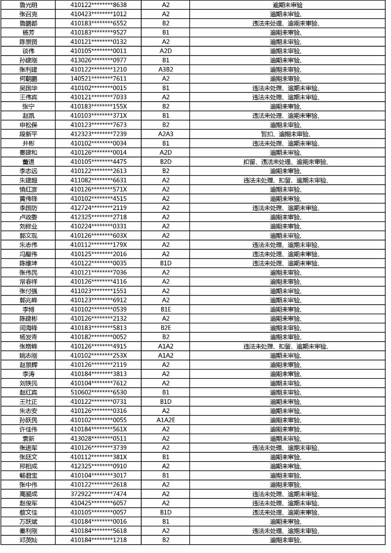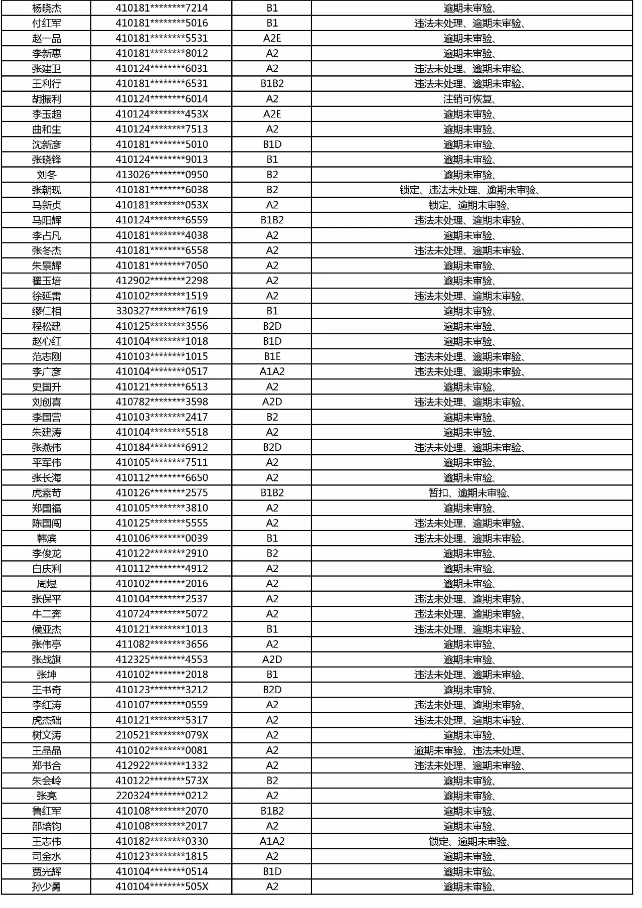 郑州市未换证已注销驾驶人名单(2018年8月31日公布数据):
