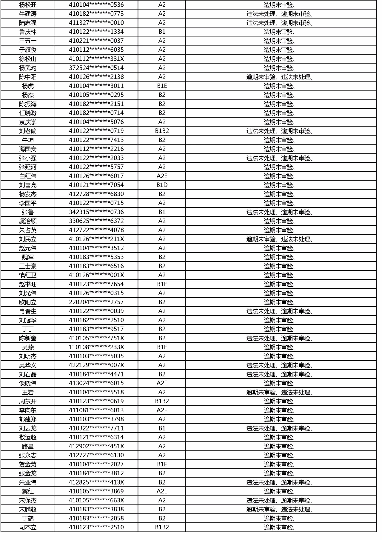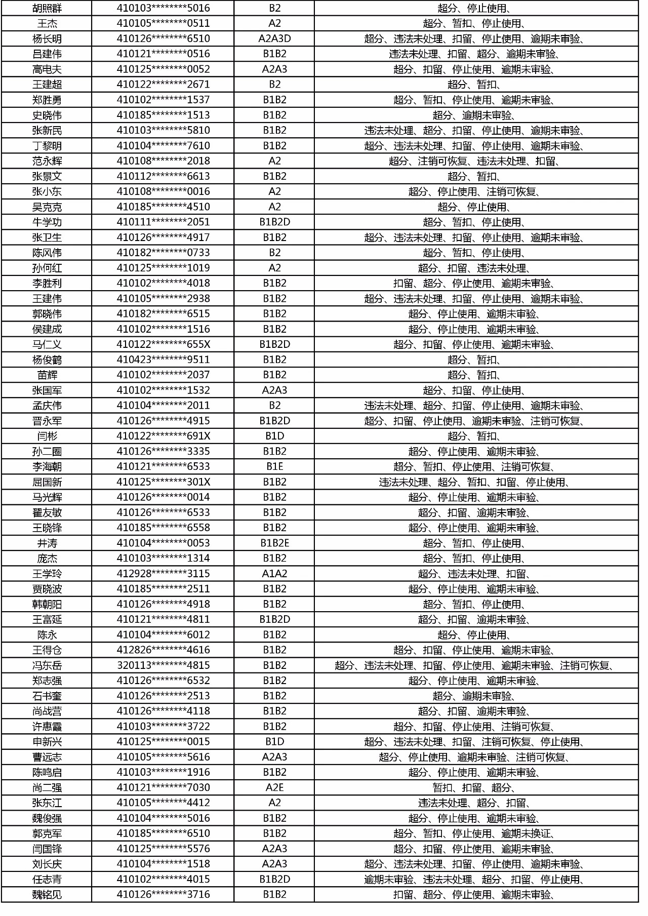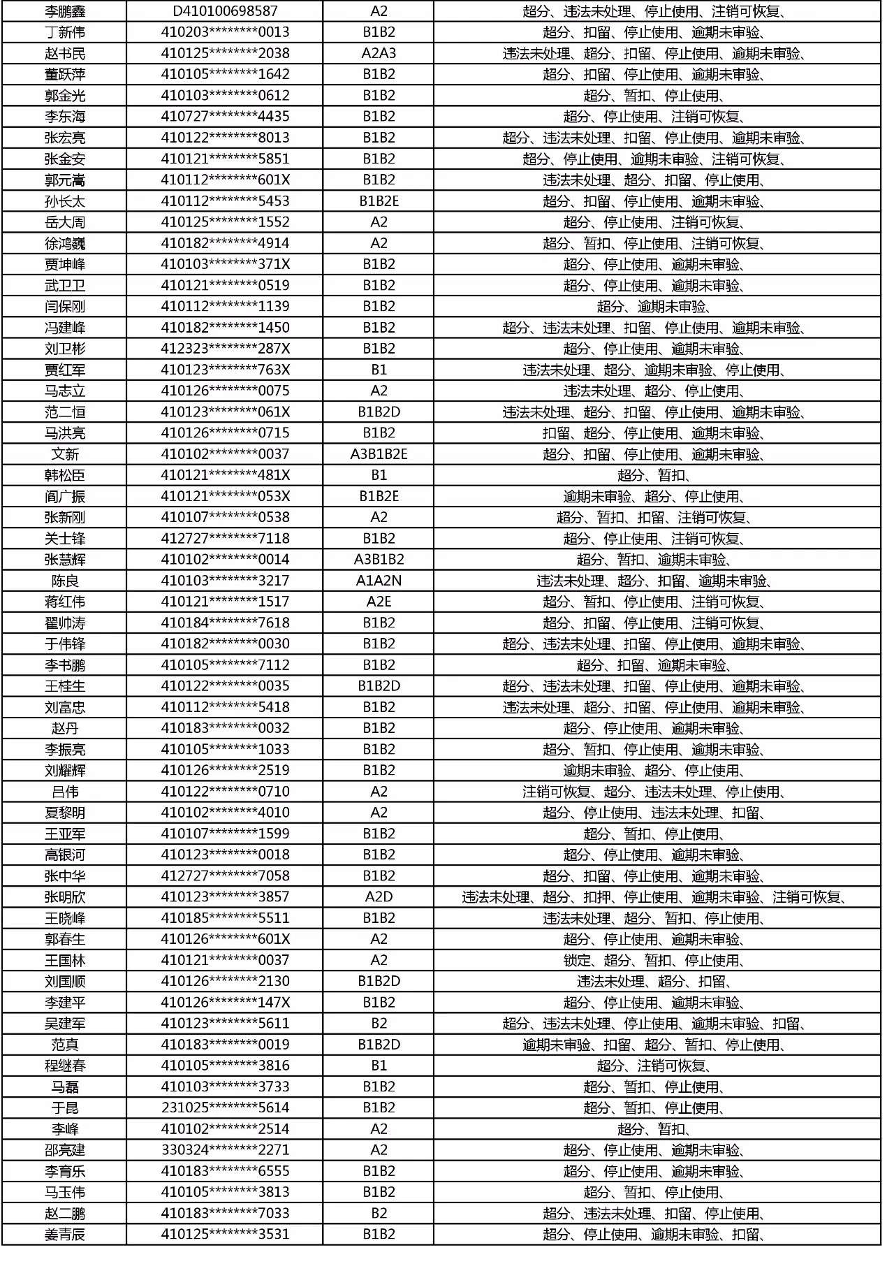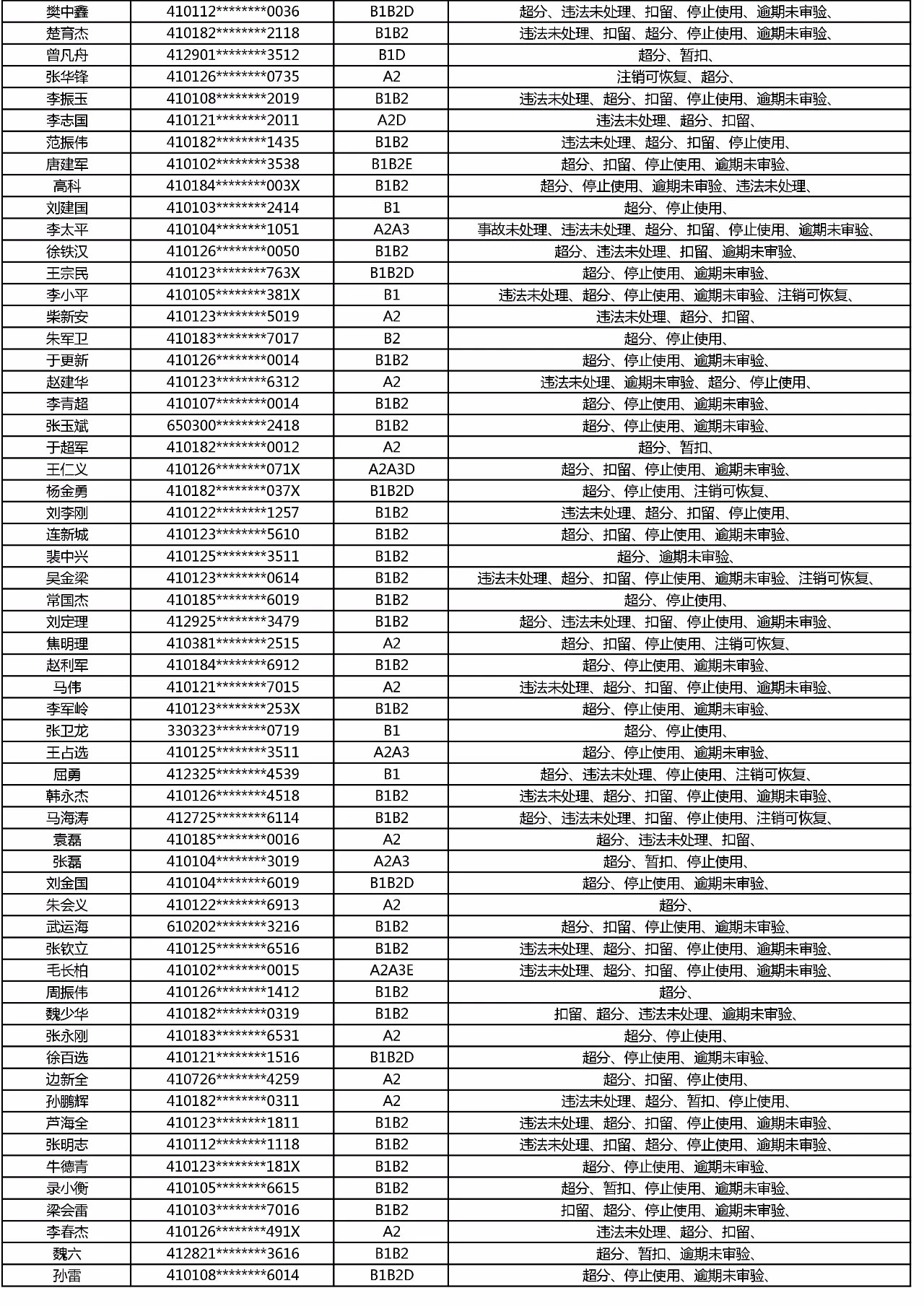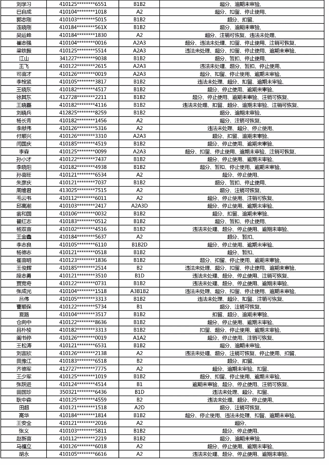 郑州市未换证已注销驾驶人名单(2018年8月31日公布数据):