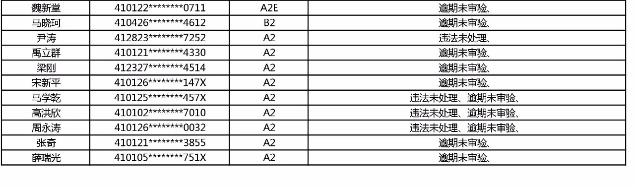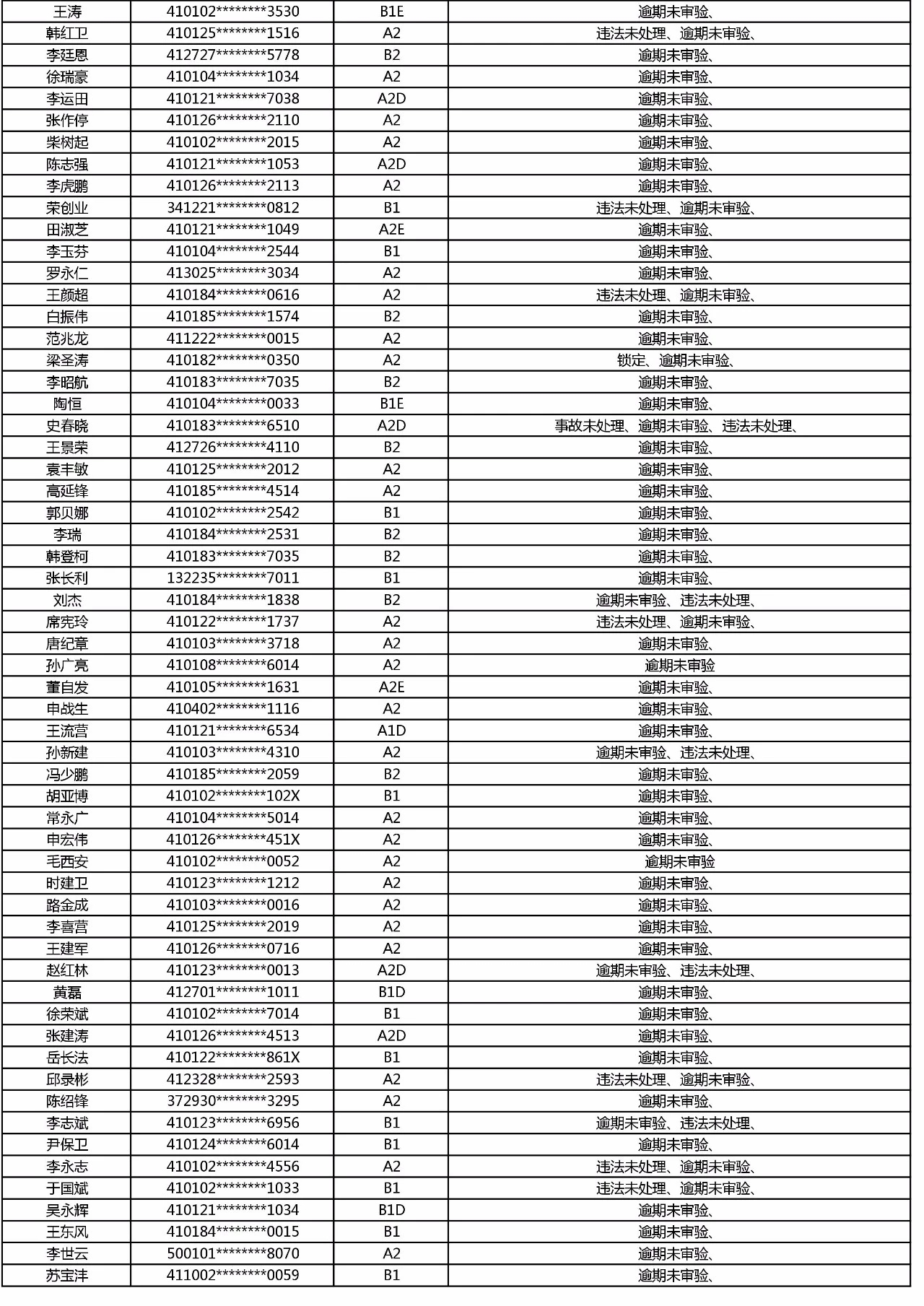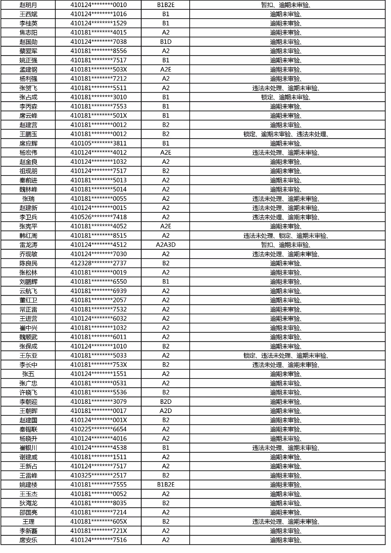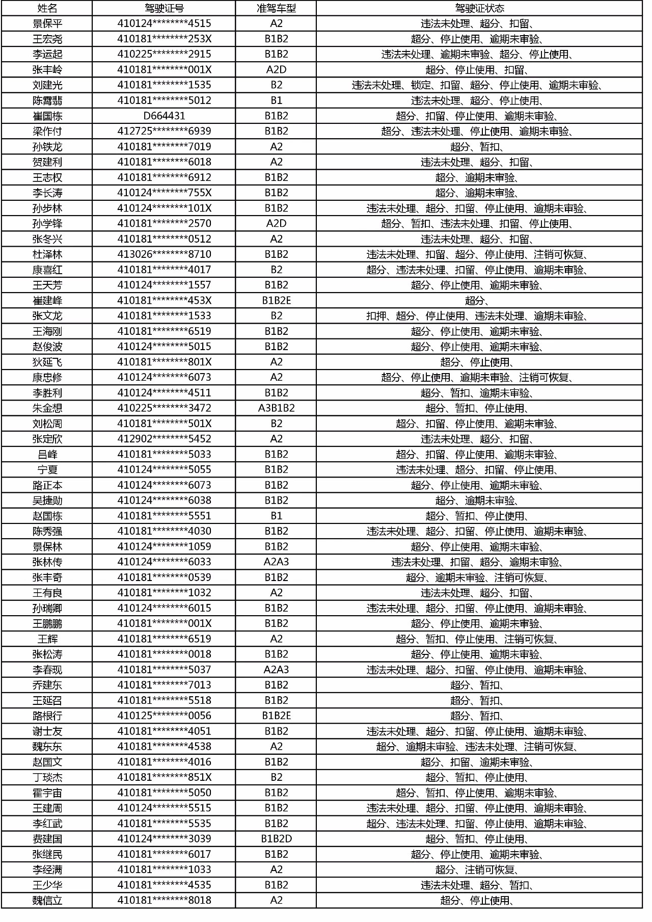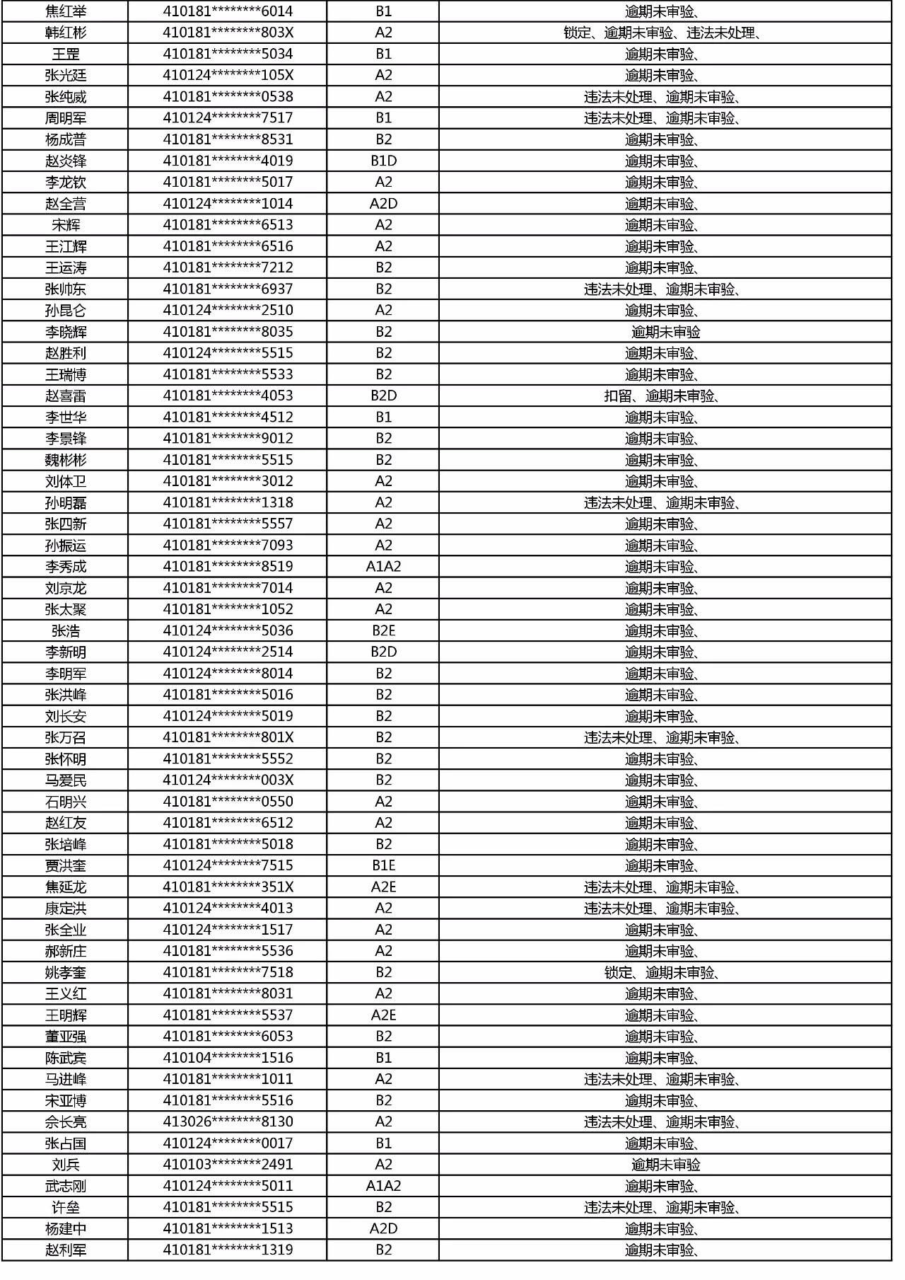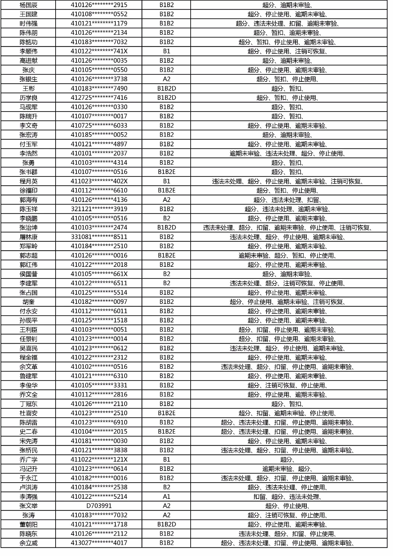 郑州市未换证已注销驾驶人名单(2018年8月31日公布数据):