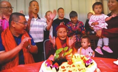 近百名后辈为118岁的朱郑氏老人祝寿。四川日报记者吴传明摄
