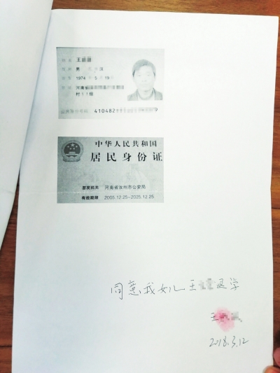 胡泉灏老师告诉记者,当时小荣打电话要求退学时,自己曾千方百计劝告小荣一定要慎重,“我要求她办理退学手续时必须父母到场,小荣却用种种理由推脱,没有办法,我又要求家长必须在身份证复印件上注明‘同意学校办理退学’的字样,在这种情况下,她找人冒充父母,将这些手续送到了学校”。