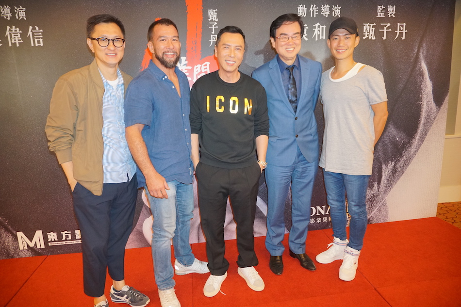 甄子丹则坦言自己拍第一部时压力是很大的,到如今第四部已经十分轻松:“从《导火线》《杀破狼》到《叶问4》,我和导演已经很有默契,所以这部我只是到现场认真演好就行,不用想太多,也相信这部会更好,因为有黄百鸣老板,有最支持香港电影的于冬老板,一定会有更好的成绩。”席上甄子丹更将咏春、洪金宝的洪拳和泰森的拳击等《叶问》系列经典武术动作结合,想出了“叶问式猜拳”,掀起了现场又一波高潮。