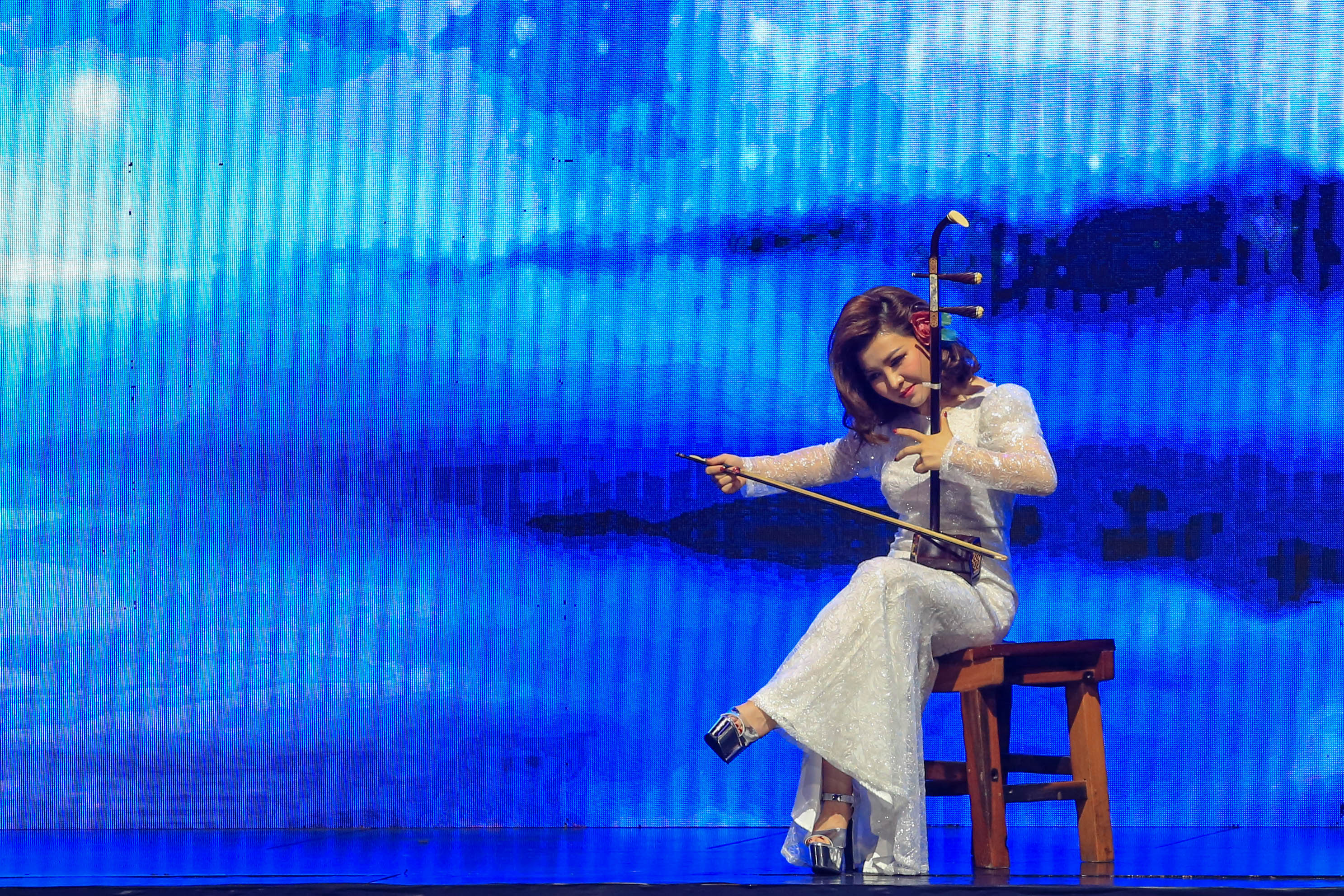 晚会上秦梦瑶用一个又一个的精彩节目征服了现场观众。
