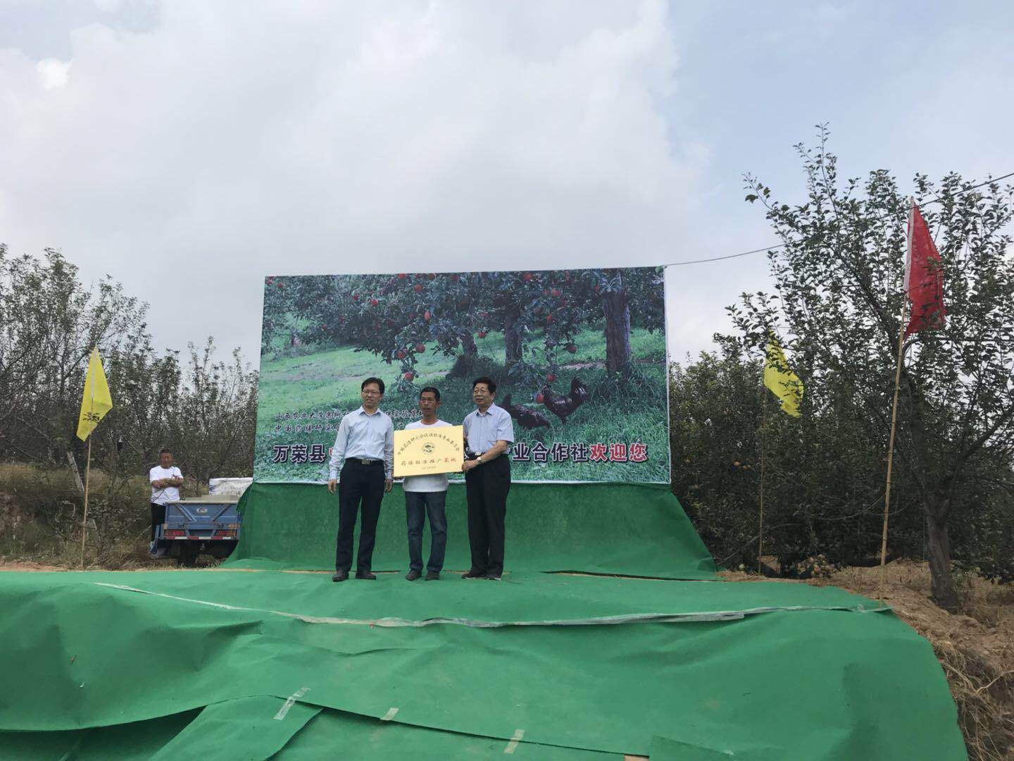 大河网讯 9月14日,“壮美黄河——全国网络媒体山西行”的记者们来到了山西省运城市万荣县丁樊村的万亩苹果园,参加了一场特殊的发布会——田园聚林下养殖乌鸡立体生产循环农业新闻发布会。