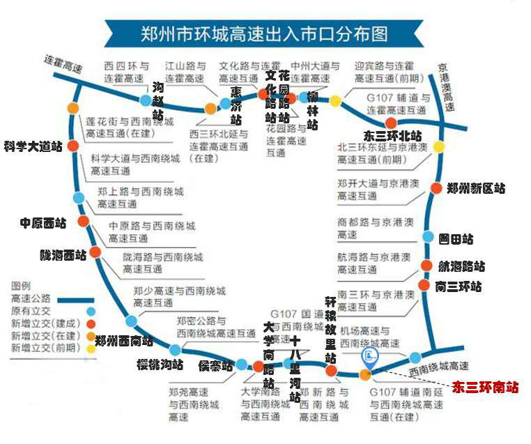 西边的郑少高速和西南绕城高速:郑少西南站车流量会非常大,易拥堵排队,可提前绕行陇海西路站、中原西路站、豫龙站和科学大道站。