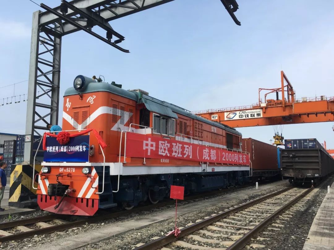2017年12月28日下午4:30分,随着第1000列成都国际班列从成都国际6月28日,中欧班列(成都)鸣笛启程,缓缓驶出成都国际铁路港,标志着中欧班列(成都)累计开行达 2000 列,成都成为国内首个实现中欧班列累计开行达2000列的城市。