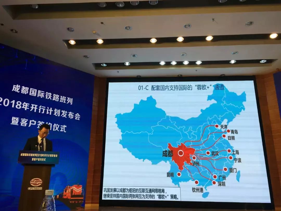 这是继2017年11月底,意大利米兰至成都的中欧班列(成都)开行后,首趟从成都发往意大利的国际货运班列线路。该趟班列自8月起启动测试,9月逐步推动常态化开行,每月计划往返开行4列。