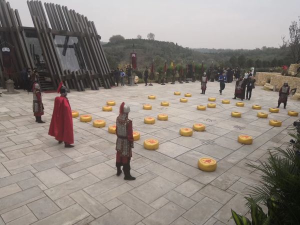 上午9点,荥阳鸿沟,秋意渐浓。各方嘉宾竹简签名后,步入活动现场。在紧张激烈,精彩优美的“兵临城下”节目表演结束后,第二届楚河汉界世界棋王赛大幕徐徐拉开。开幕式在鸿沟之畔、邙山之巅举行,“城寨”一样的对弈亭质朴、浑厚而又充满神秘气质,如鹰翼般跨越鸿沟之上。
