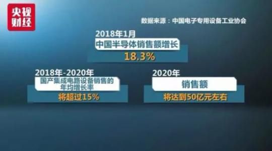 中国电子专用设备工业协会数据显示,2018年1月中国半导体销售额增长18.3%,并有持续增长趋势。2018年-2020年国产集成电路设备销售的年均增长率将超过15%。到2020年销售额将达到50亿元左右。