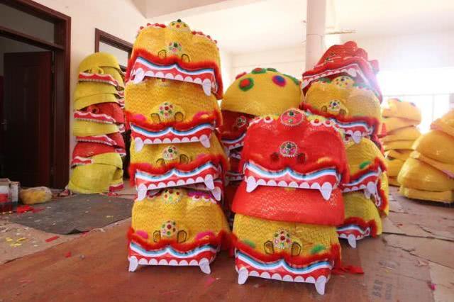 靠着做舞狮,他家里盖起了三层楼房,除一层自住外,二层三层都被当成了生产和储存舞狮的地方,院子里也摆满了包装完毕、即将发货的舞狮。