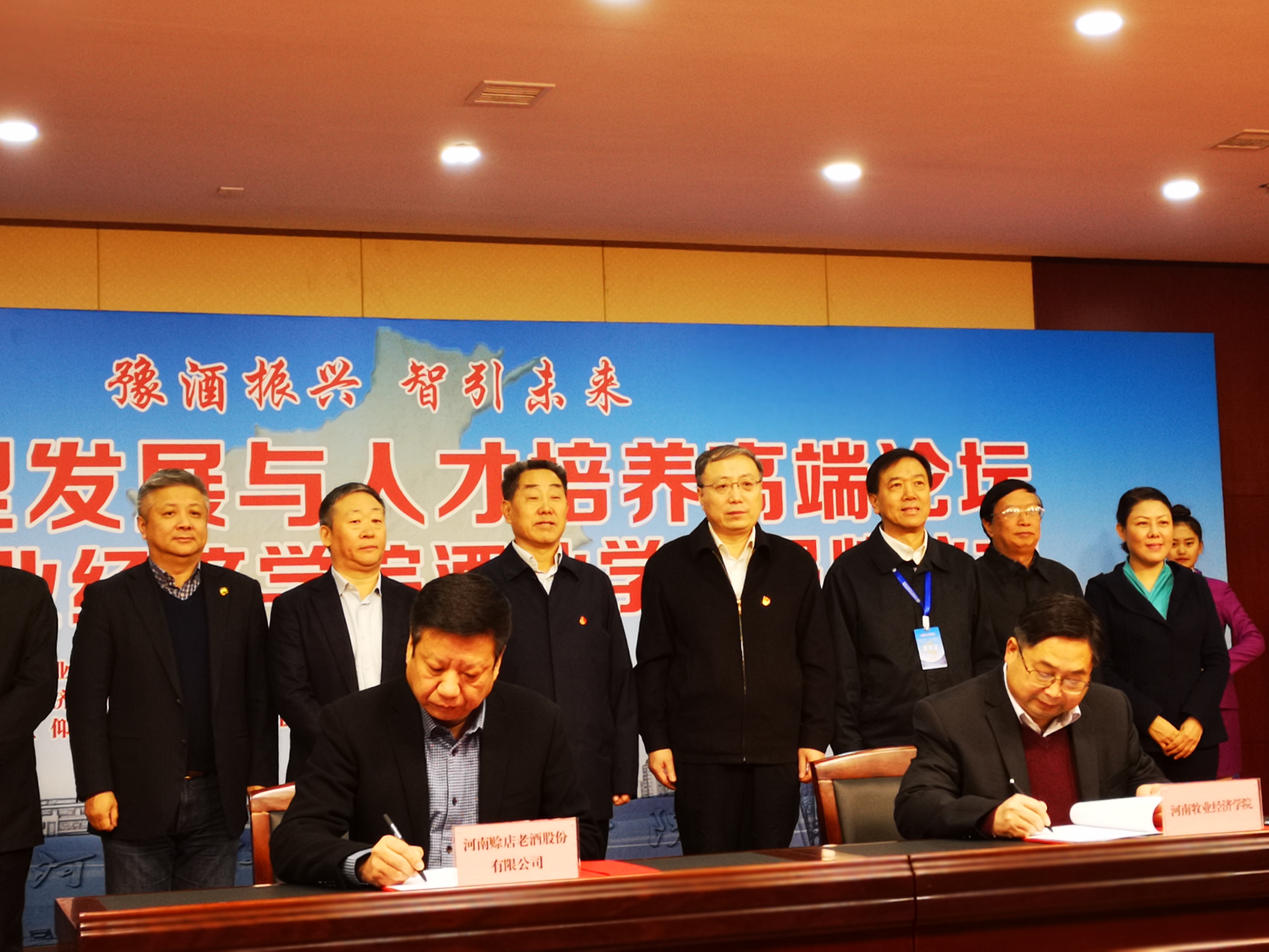 在揭牌仪式上,河南牧业经济学院与赊店老酒进行了校企合作签约。
