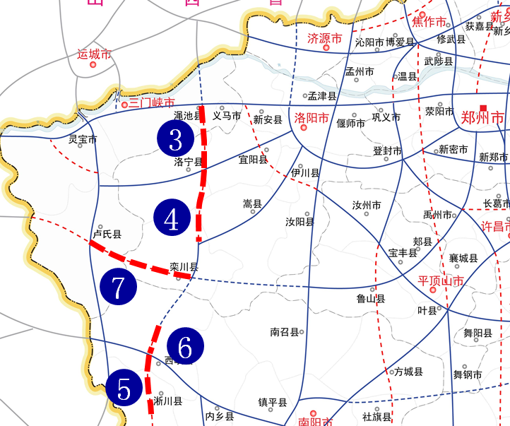 5、渑淅高速洛宁至栾川段,经洛阳市洛宁县、嵩县和栾川县,全长60公里,总投资97亿元。