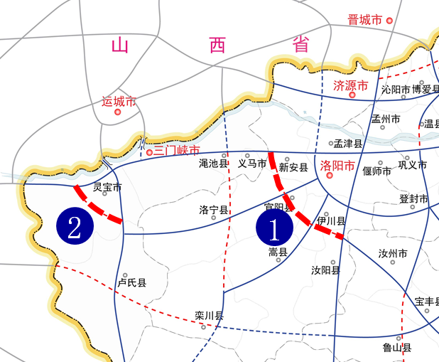 1、连霍二广高速联络线,经洛阳市新安县、宜阳县、伊川县,全长82公里,总投资96亿元。