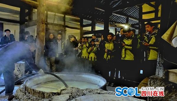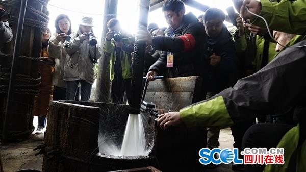 四川在线消息(记者邓童童杨琴秦勇摄影华小峰)在世界第一口超千米深井畔直播古法制盐过程,驾驶无人机换一个角度参观“东方龙宫”。12月9日下午,“川跃四十年 再瞰新天府”媒体团打卡自贡旅游网红地。